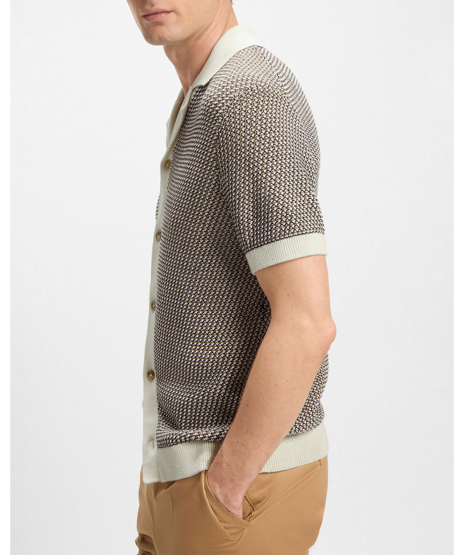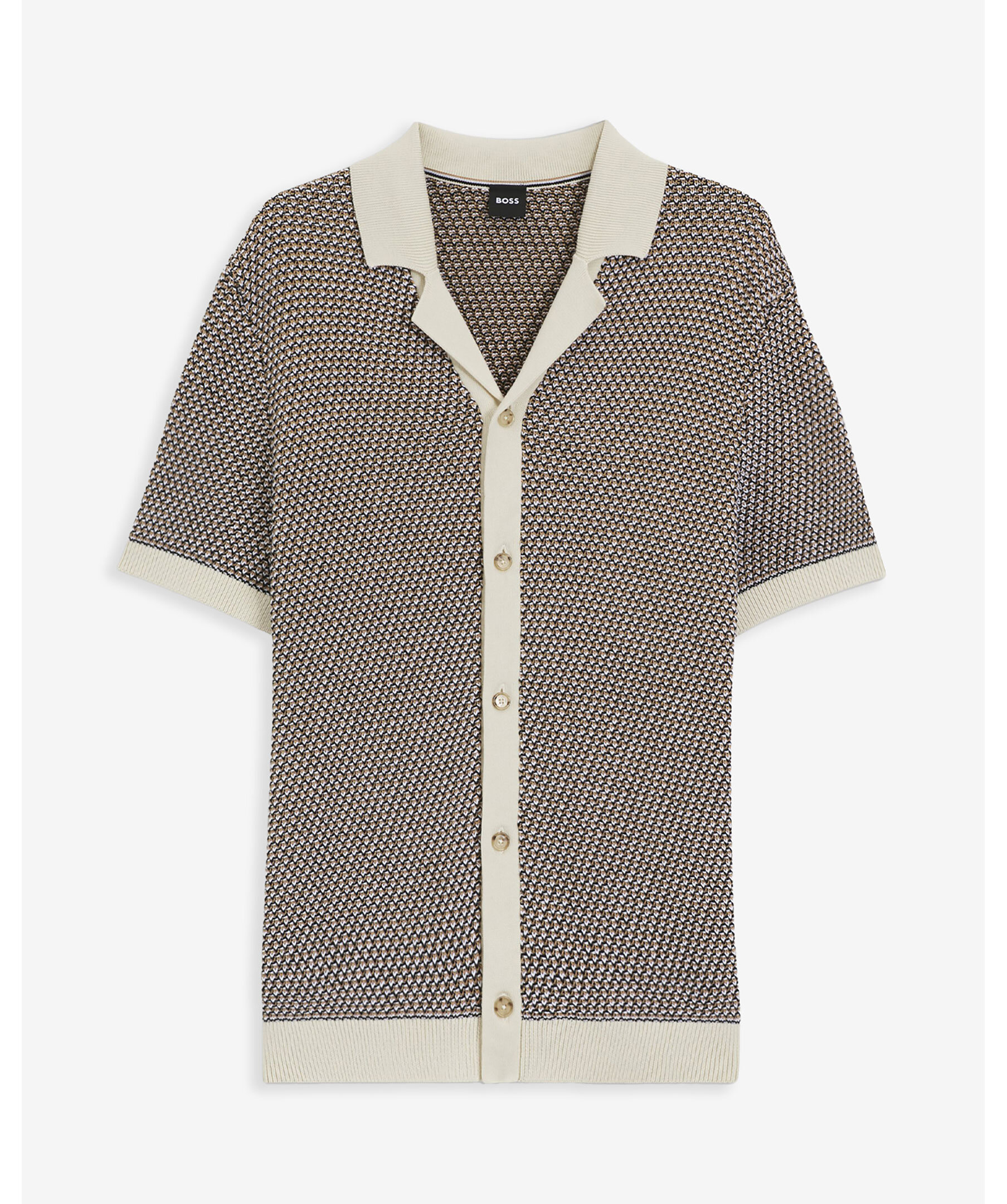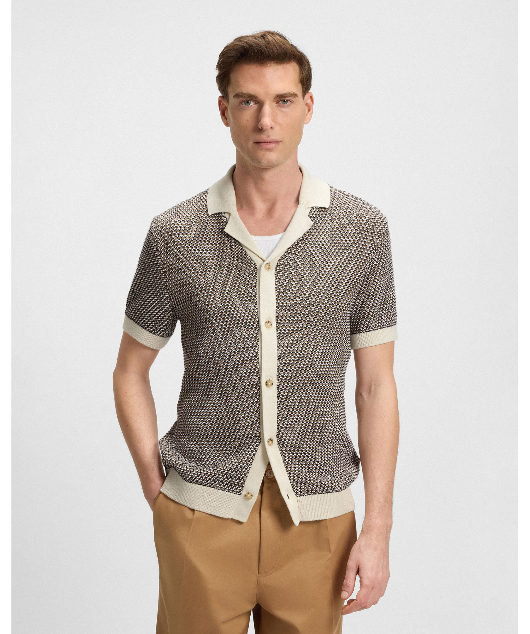 Stickad kortärmad kofta från BOSS BLACK. Stickad i mjuk, ventilerande bomull med strukturerad yta och släta detaljer. Regular fit med klassisk design, enkel att bära i lager.