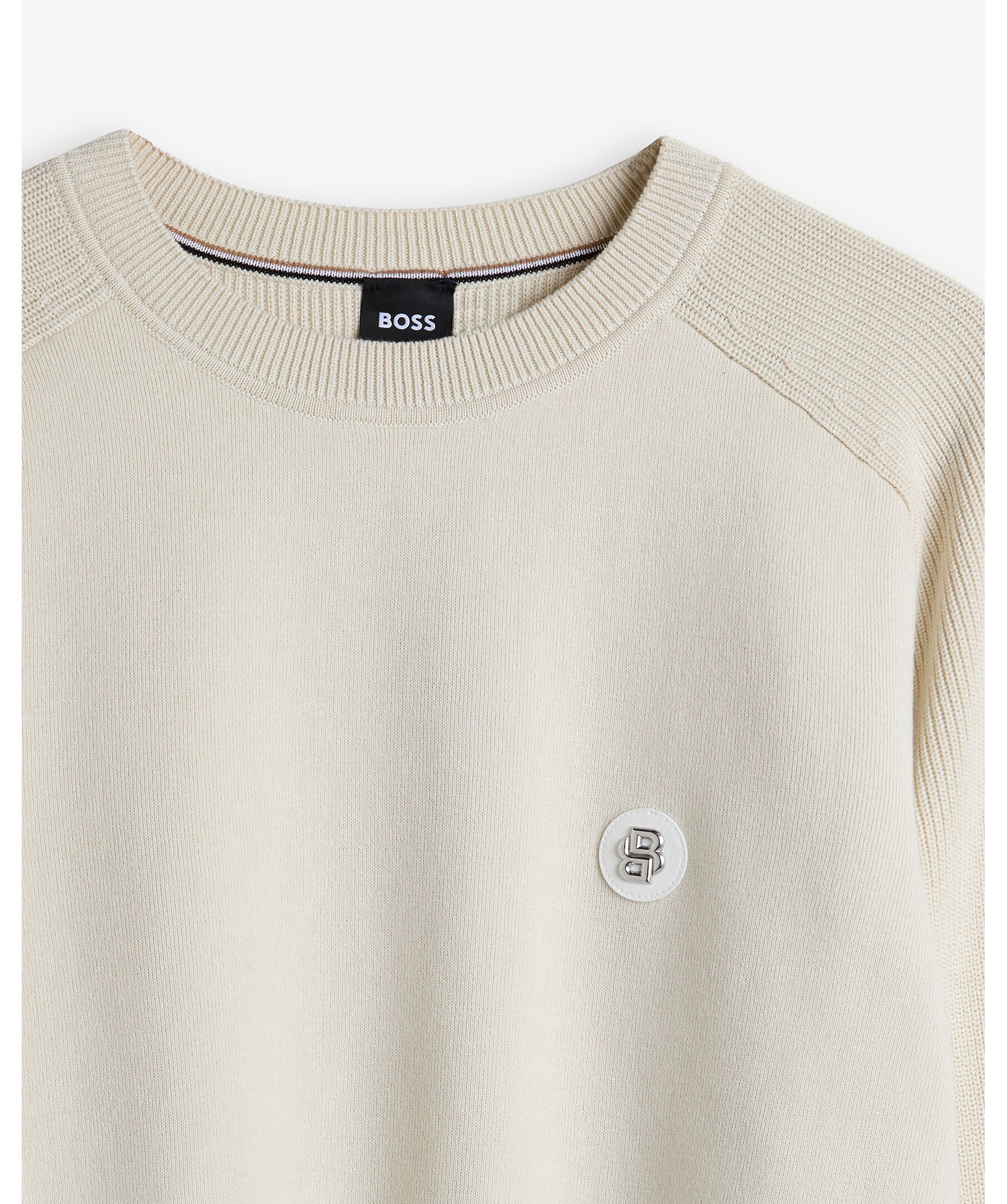 Off-white sweatshirt från BOSS BLACK. Ribbstickade muddar och gjord i mjuk bomull. Liten logotyp på bröstet.