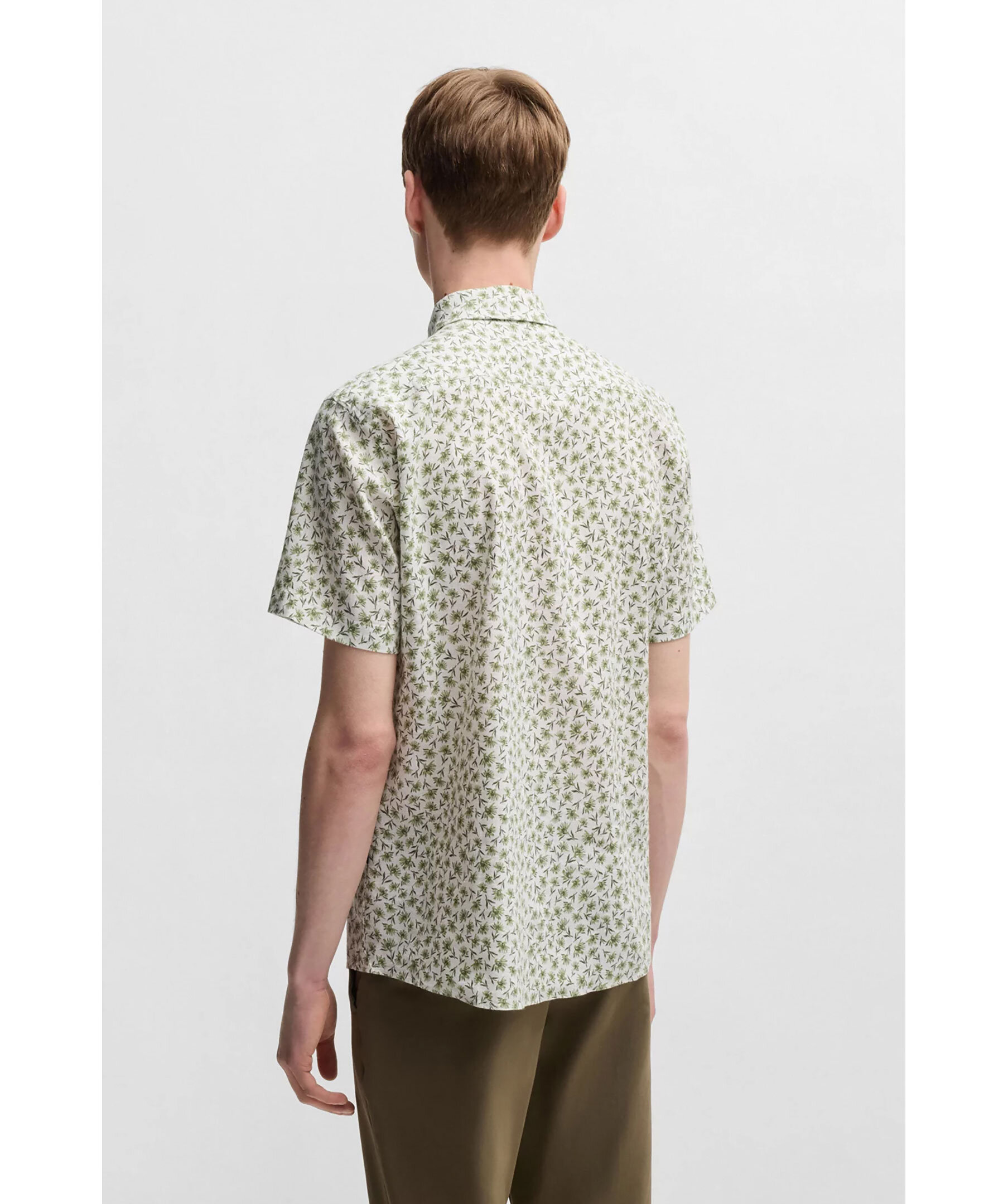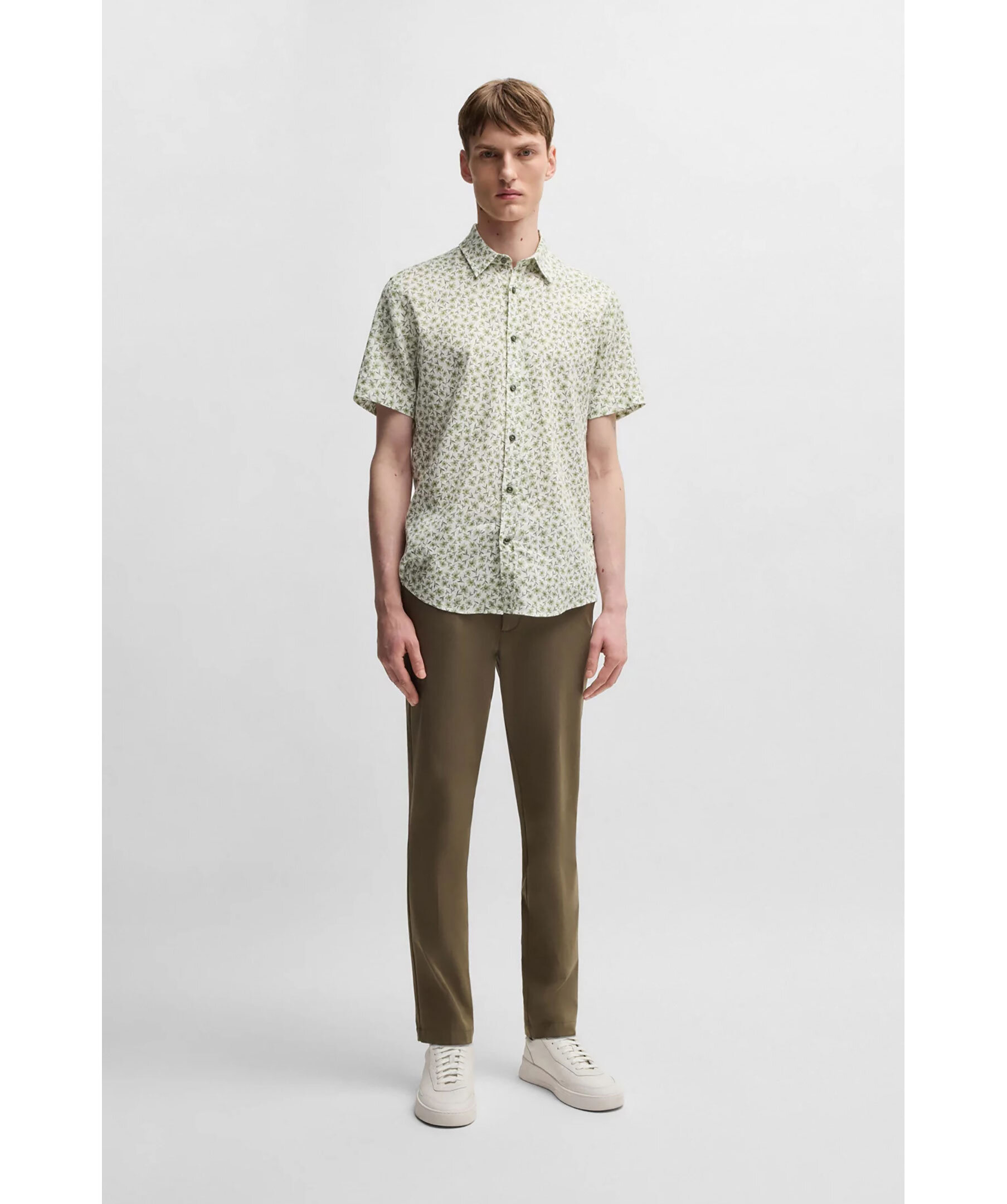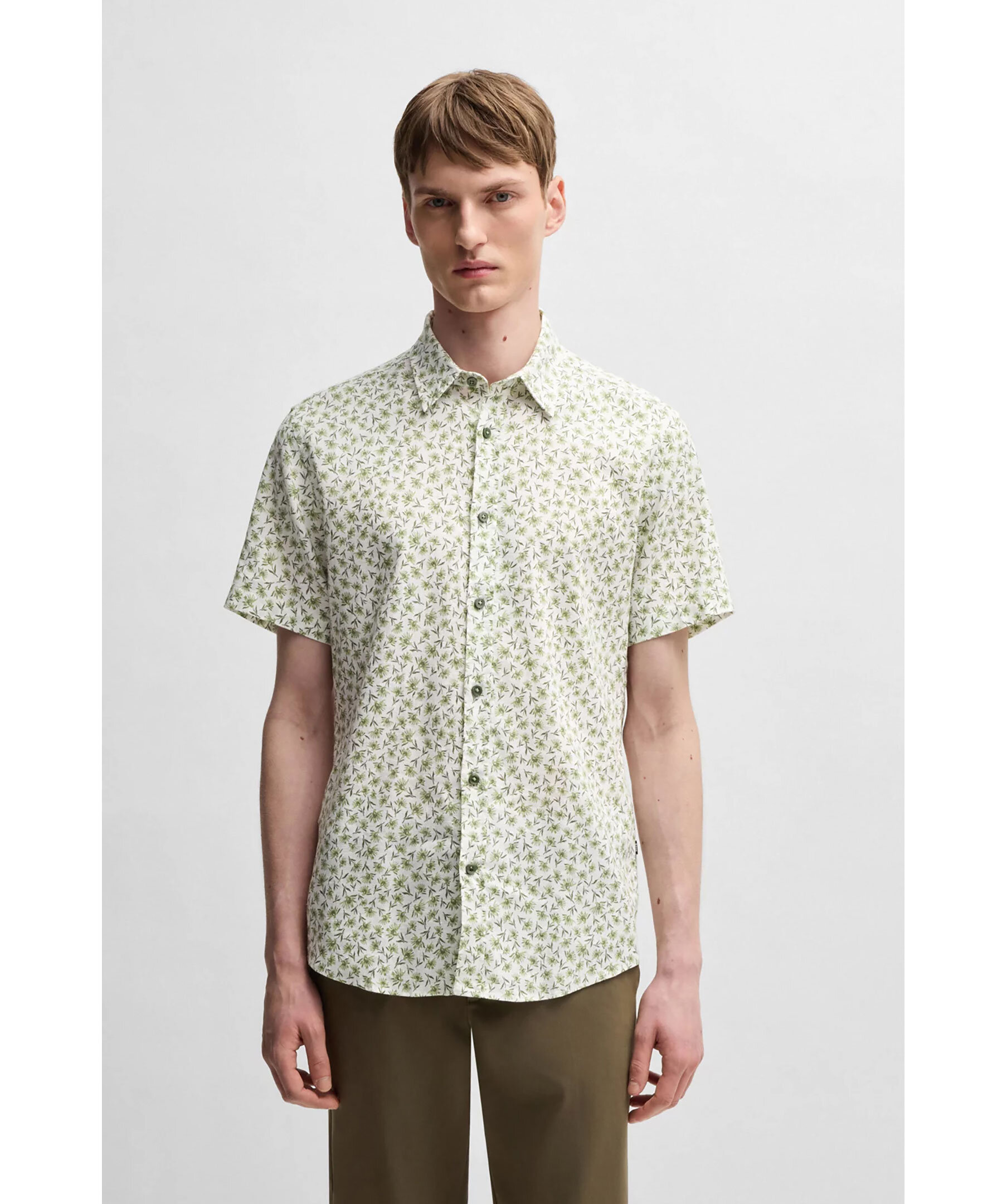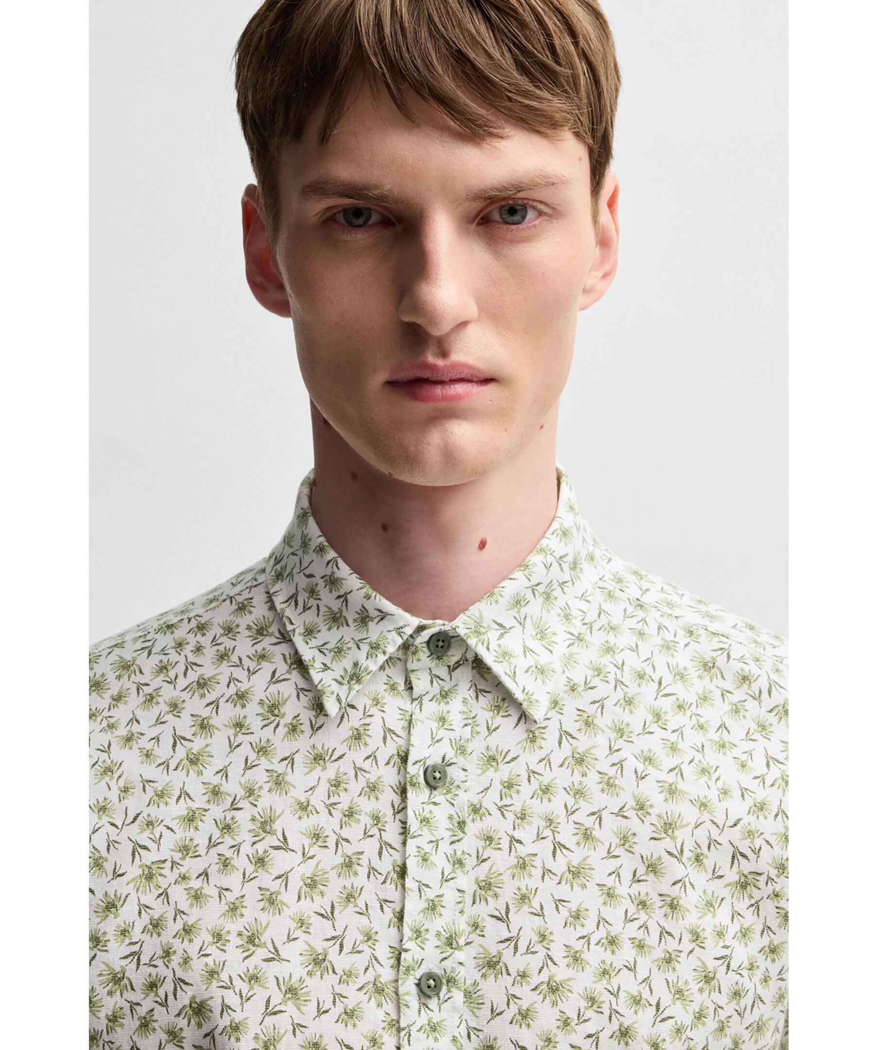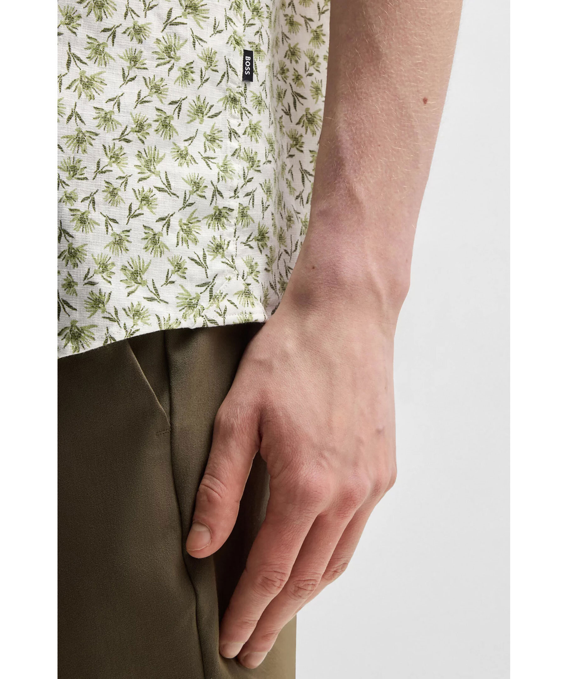 Grön och vit blommönstrad skjorta i kortärmad modell från BOSS Black. Skjortan har kent-krage och är tillverkad i svalkande linne med stretch för komfort.