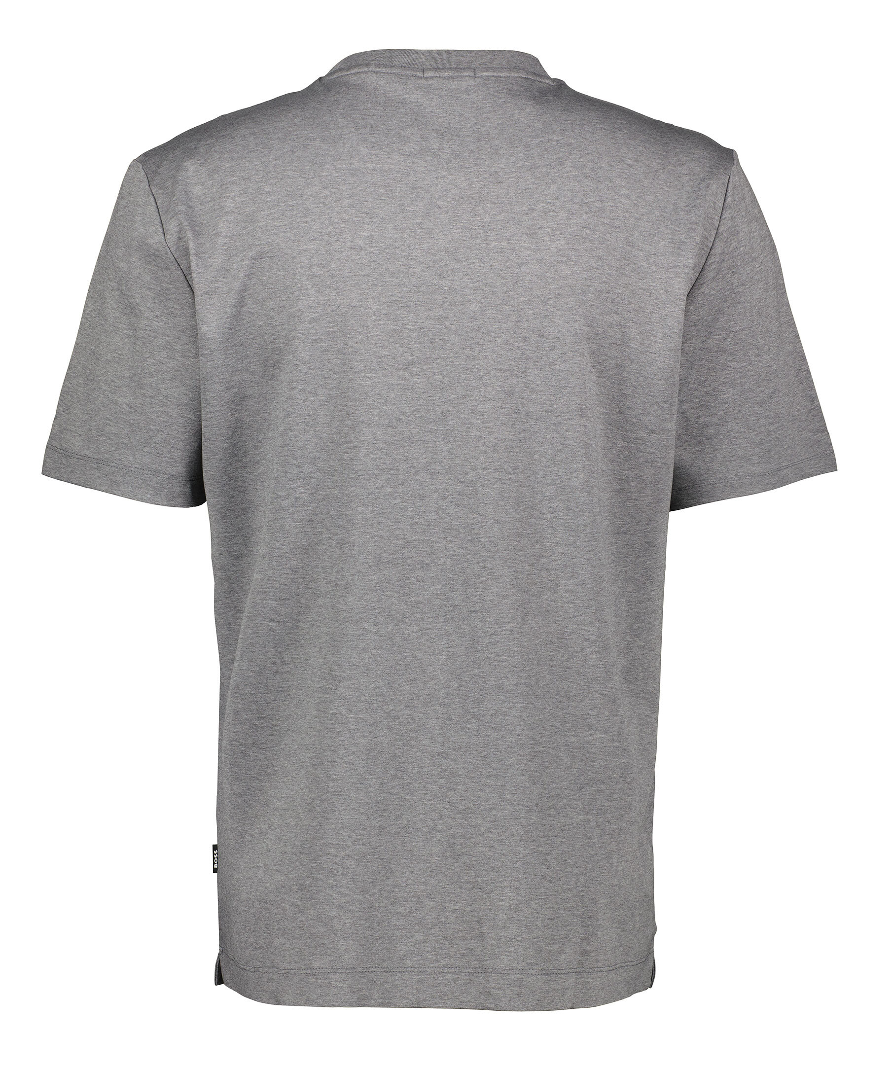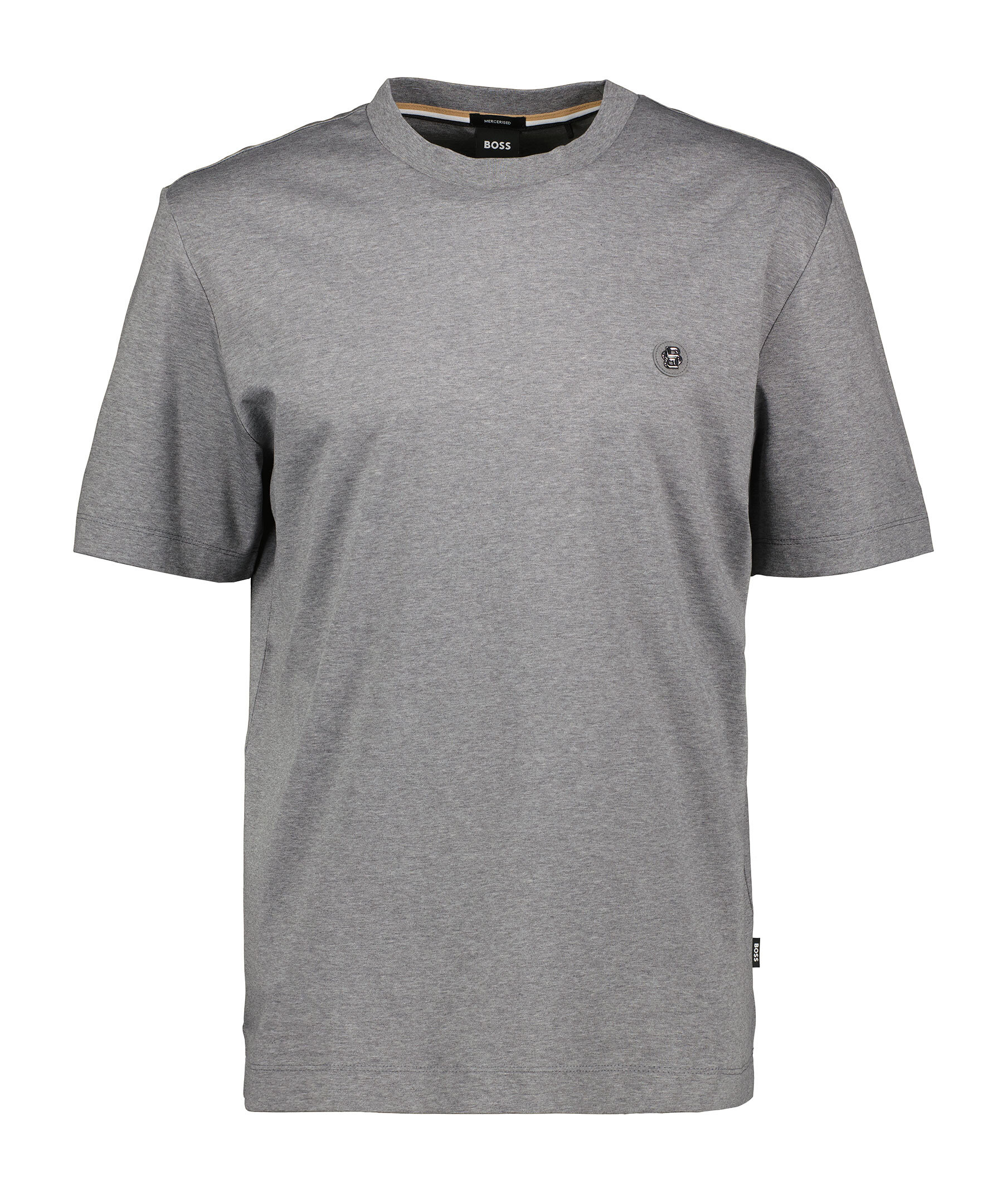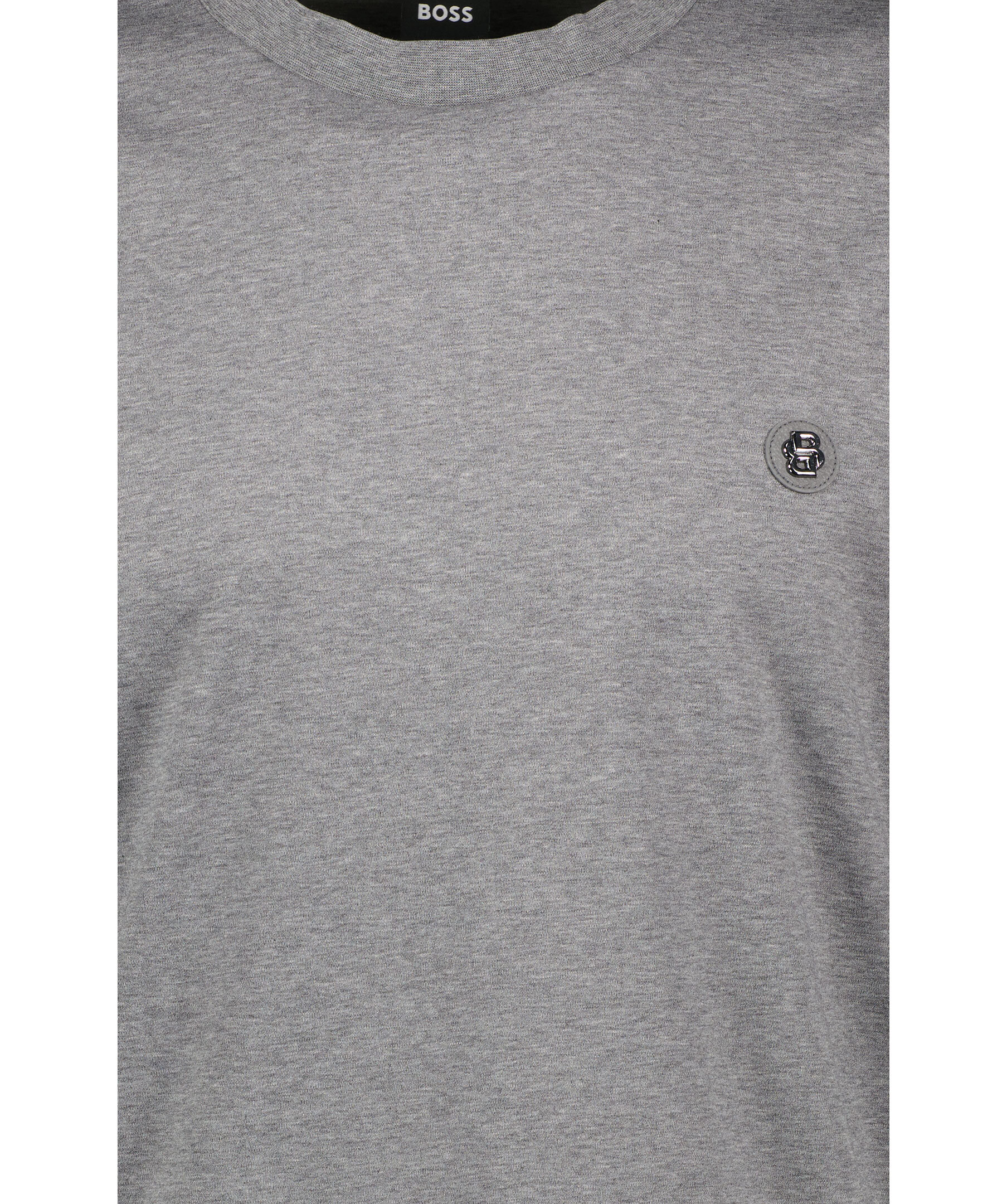 Grå melerad t-shirt från HUGO. T-shirten har rund halsringning och ett litet dubbelmonogram i metall på bröstet. Tillverkad i bomull.