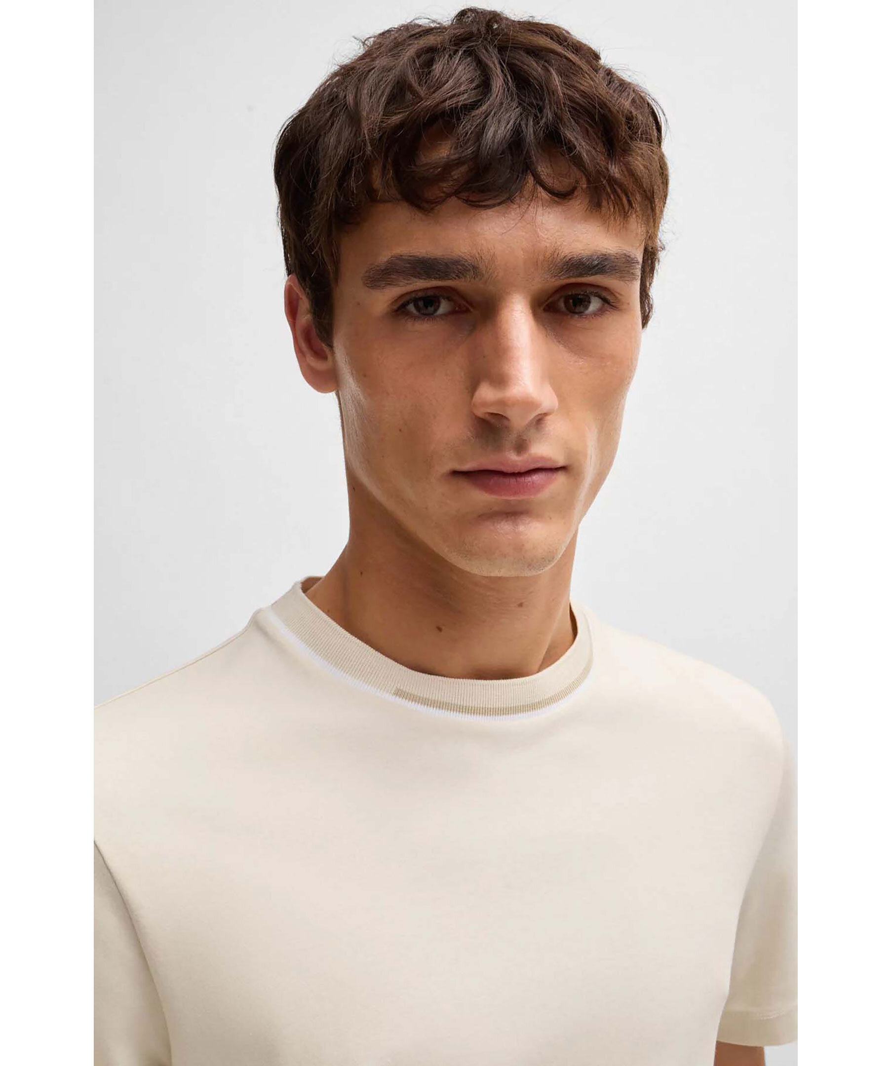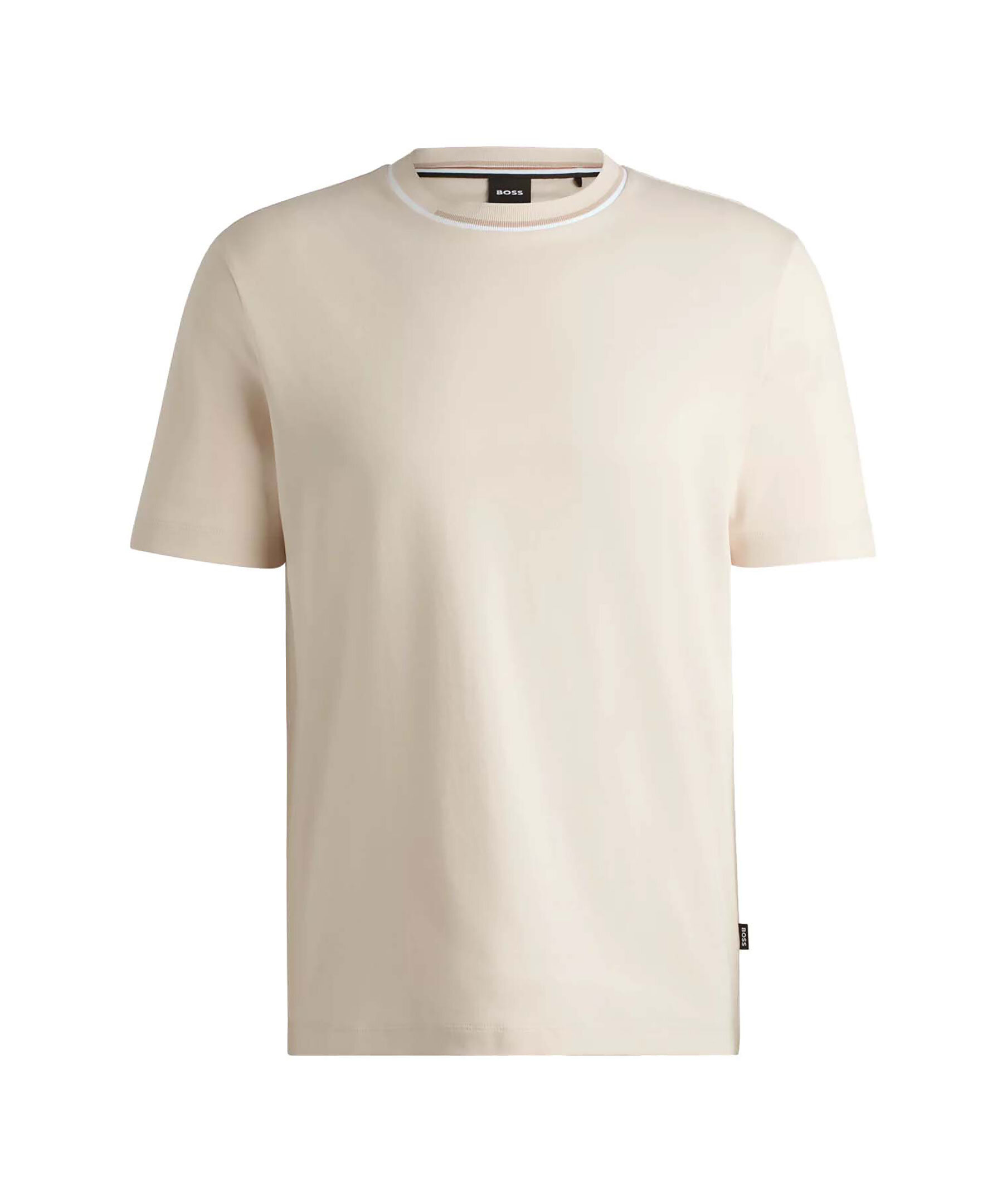 Vit bas T-shirt från Boss black. T-shirten har rundad halsringning med färgblockskrage. Tillverkad av 100% bomull.
