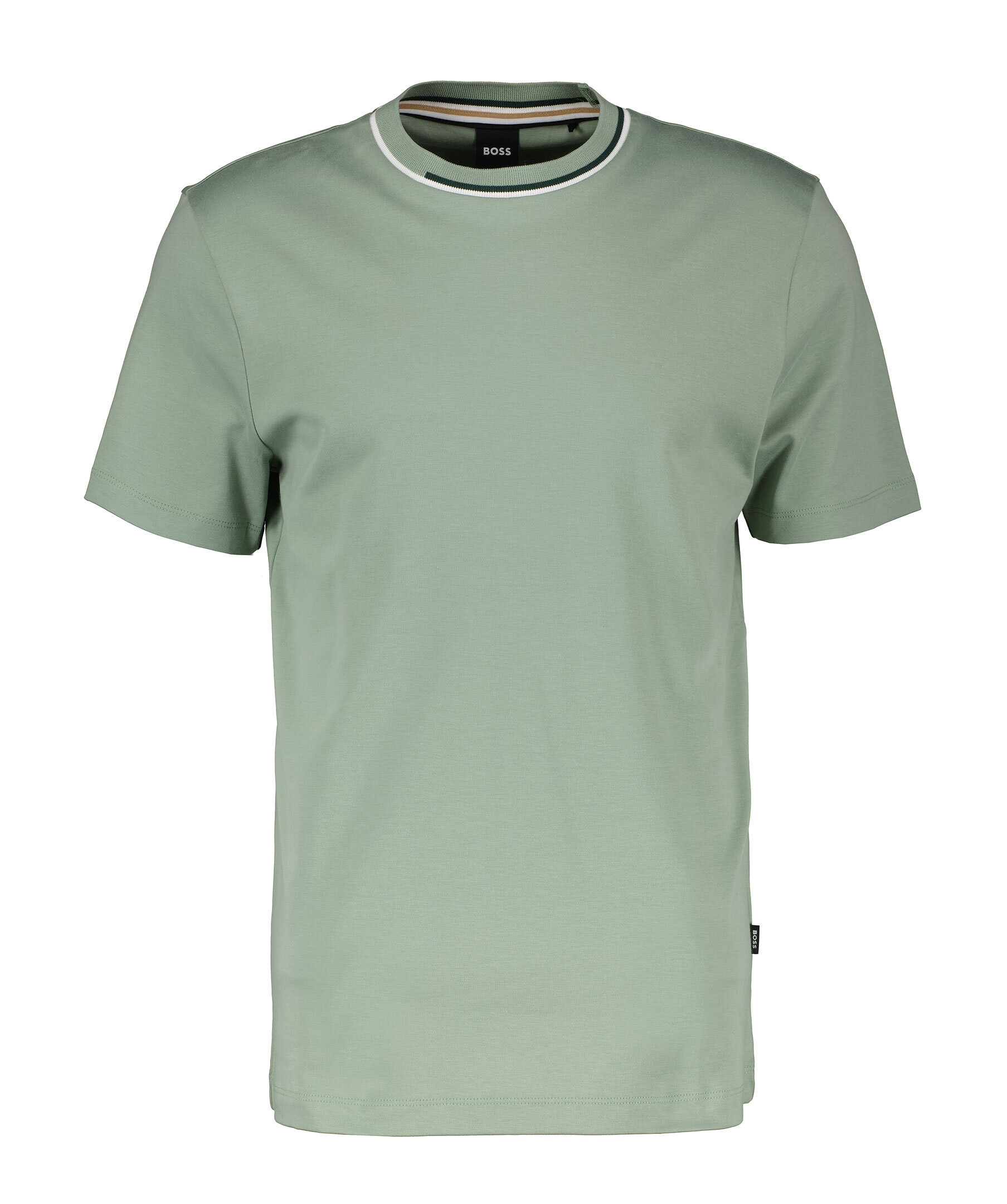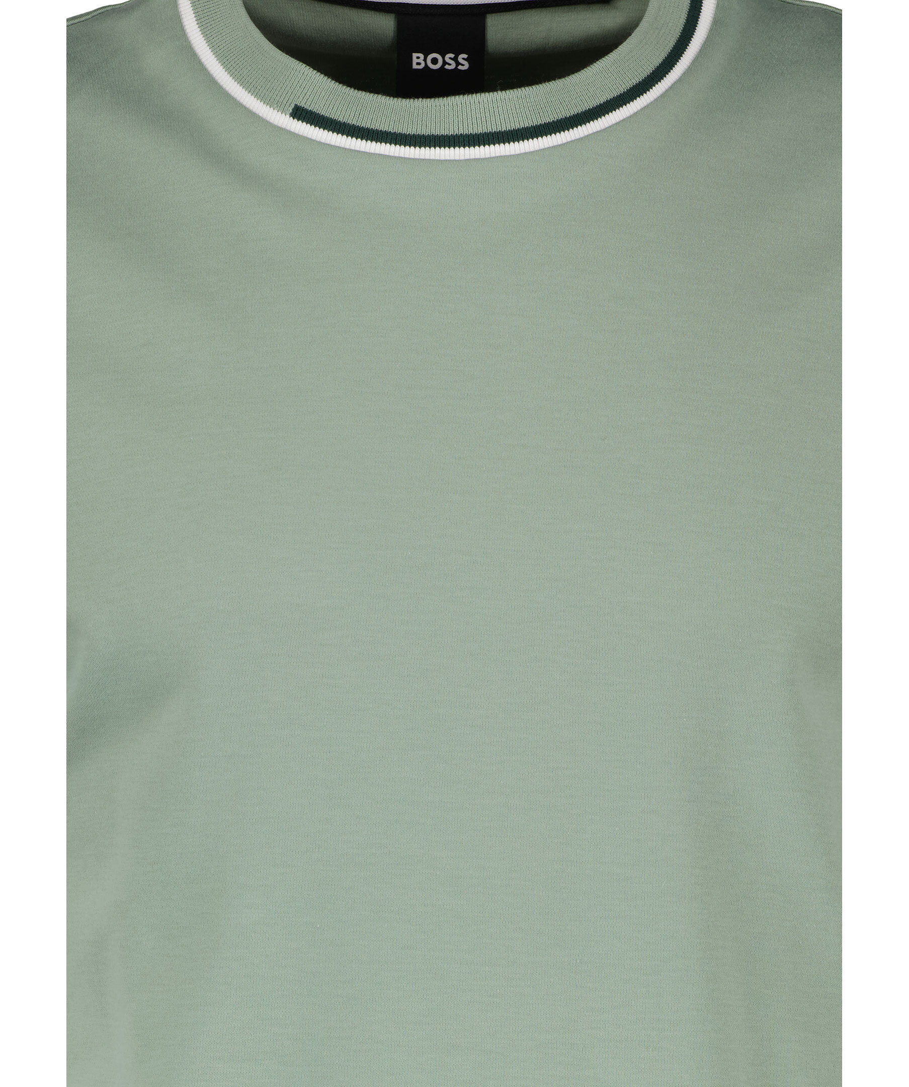 Ljusgrön bas T-shirt från Boss black. T-shirten har rundad halsringning med färgblockskrage. Tillverkad av 100% bomull.