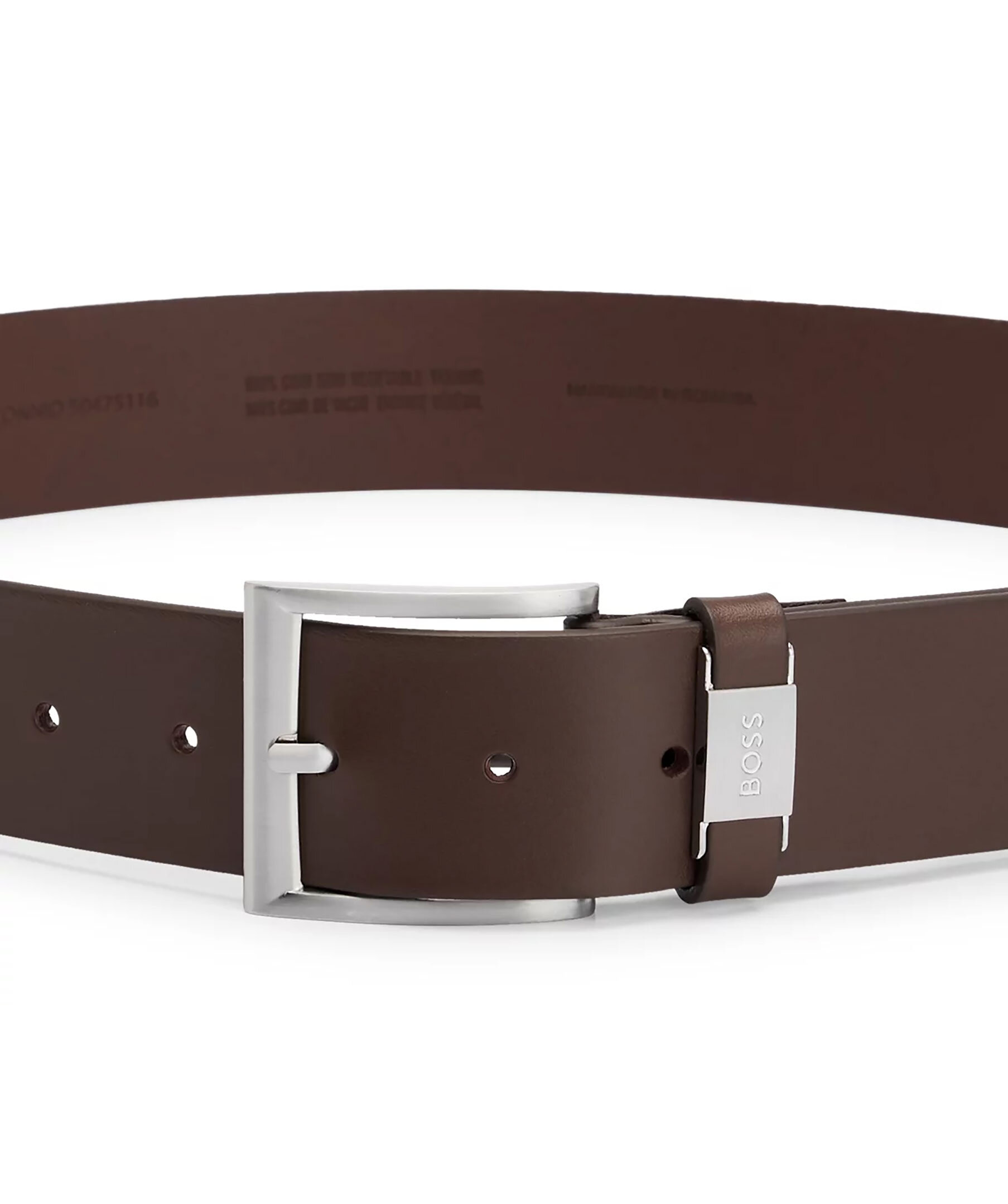 Brunt läderbälte från BOSS Black. Bältet är gjort i italienskt garvat läder med metallogga på hållaren. Bredd: 4cm.