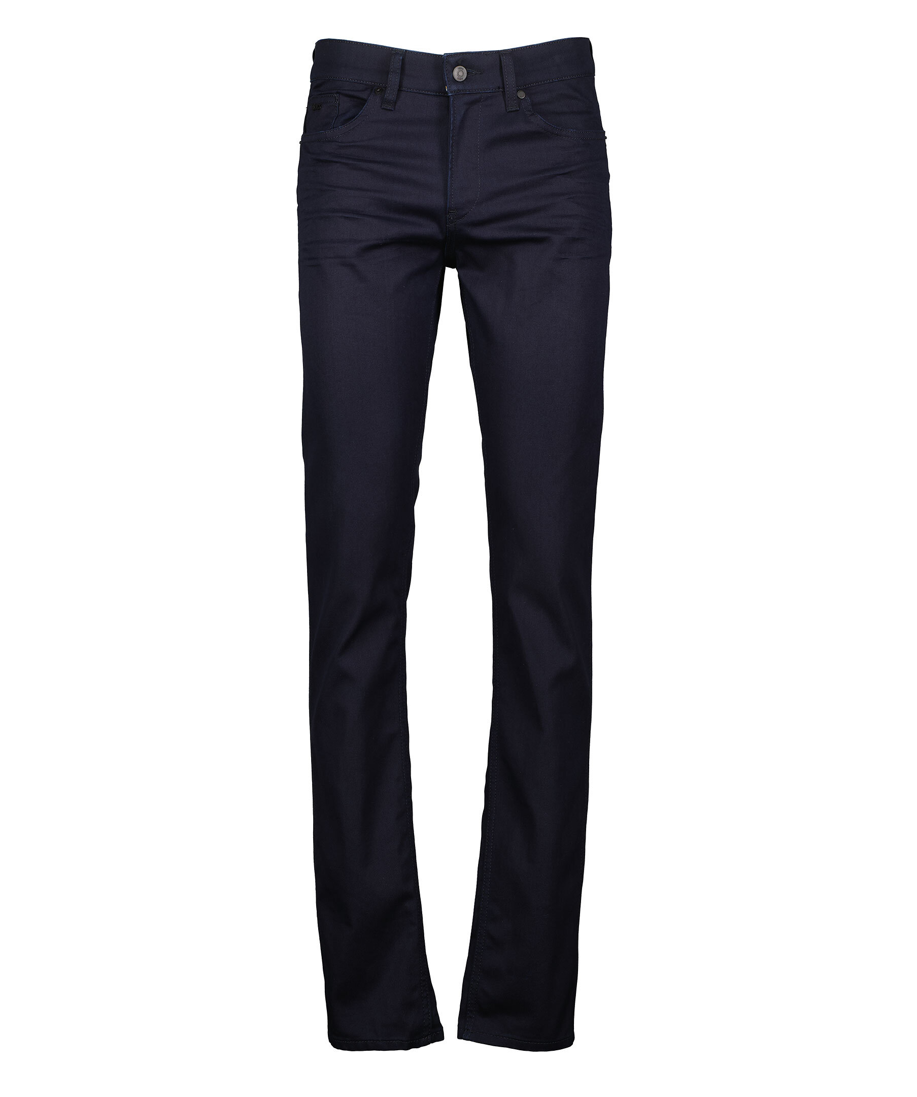 Mörkblå jeans med stretch från BOSS BLACK i slim fit modell. Normalhög midja, raka byxben. Femficksmodell, gylf med dold dragkedja och knapp. Hällor för bälte.