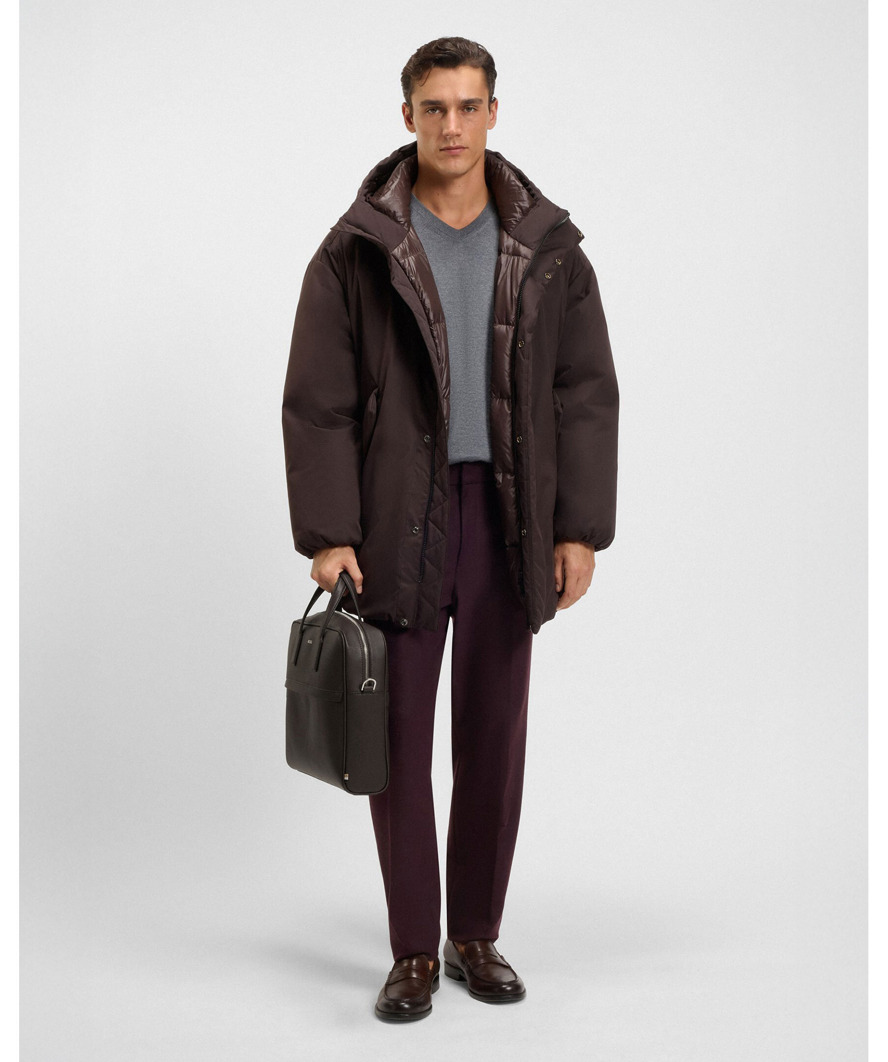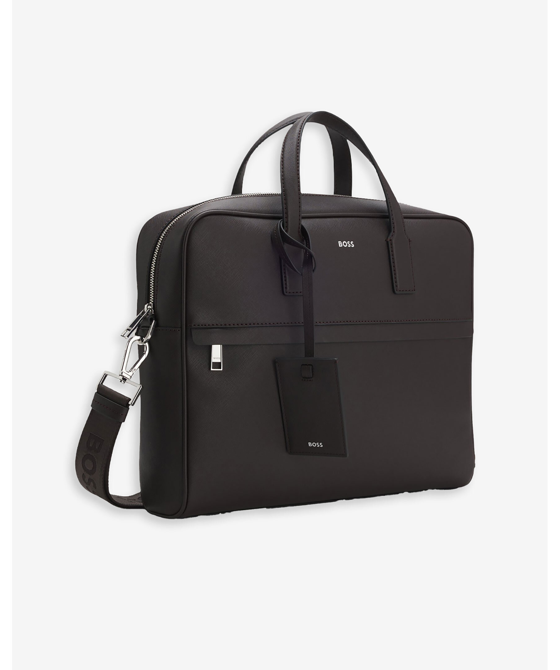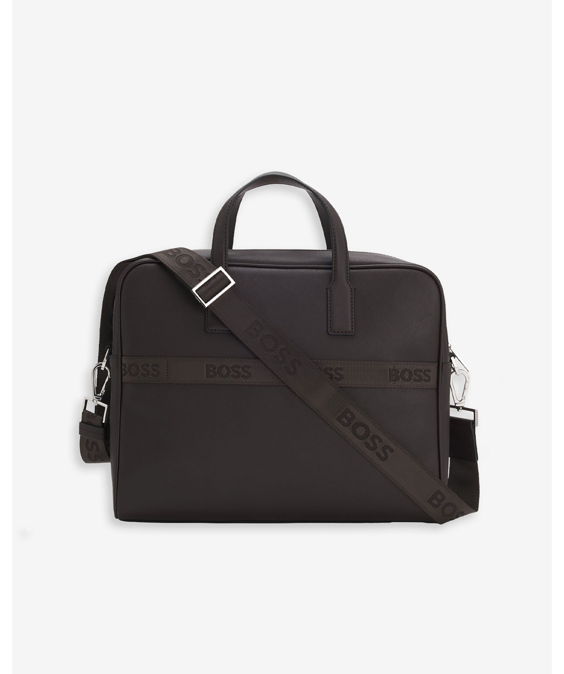 Mörkbrun dokumentportfölj från BOSS. Eleganta struktur och tryckt logga. Justerbar och avtagbar axelrem.