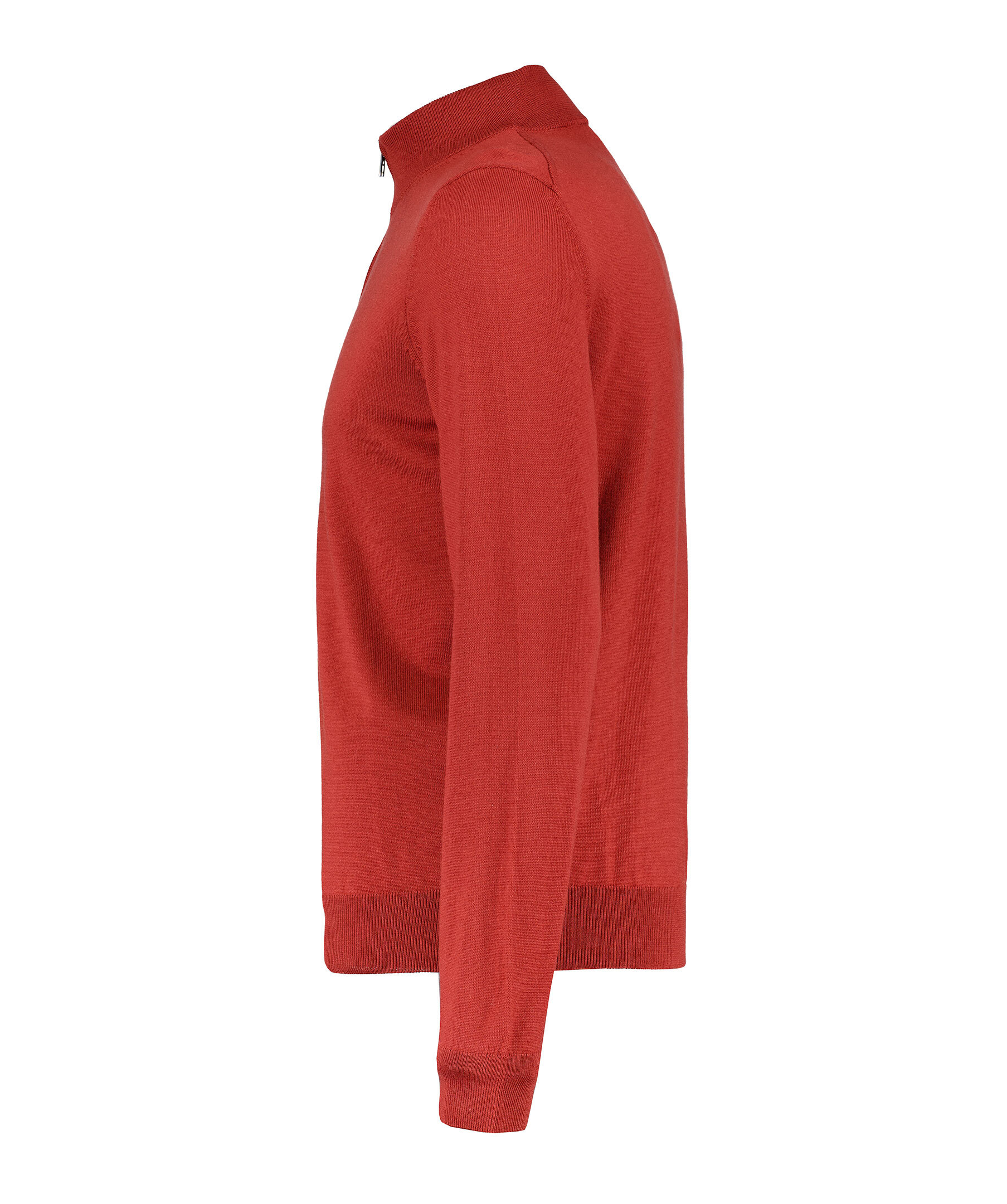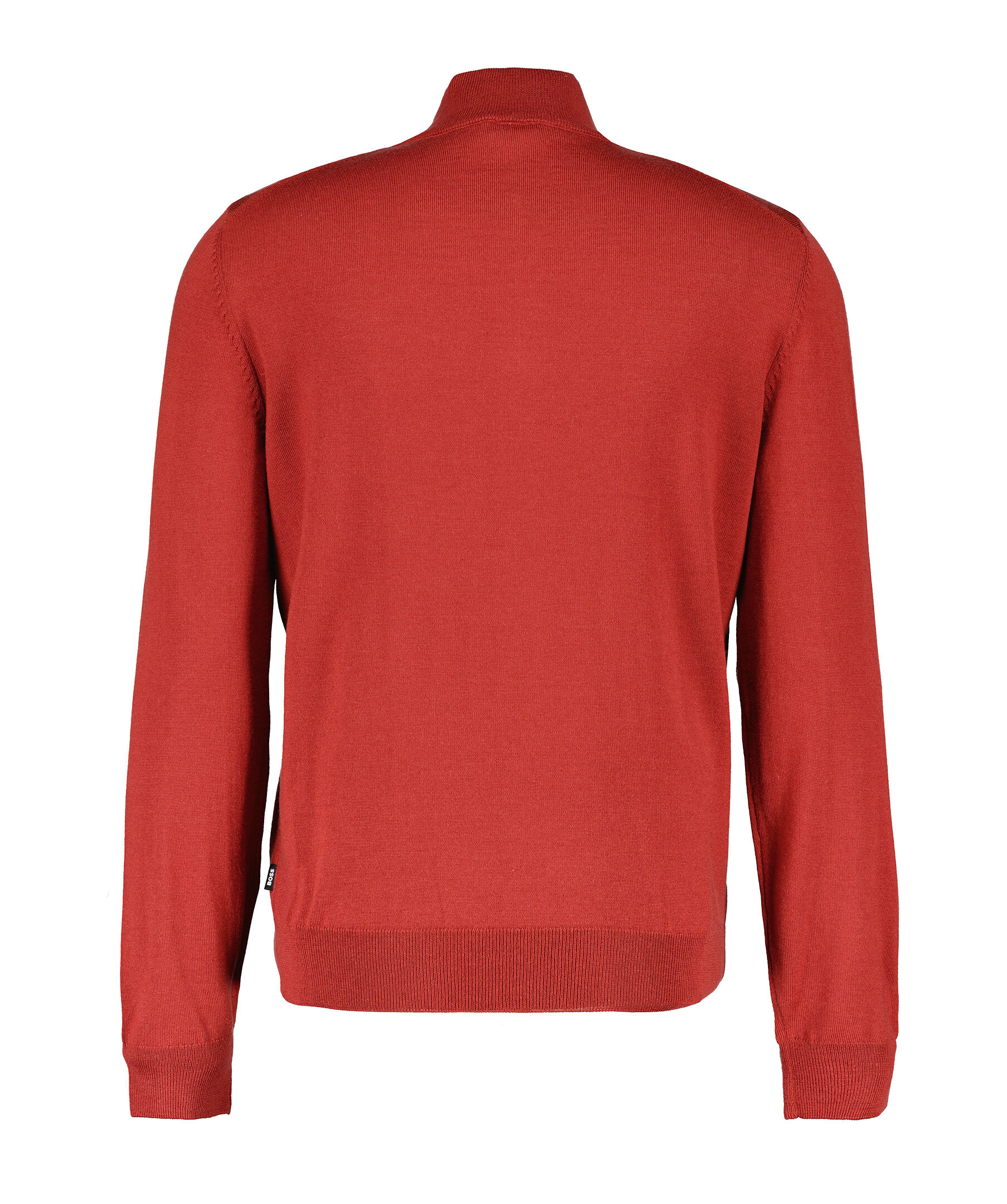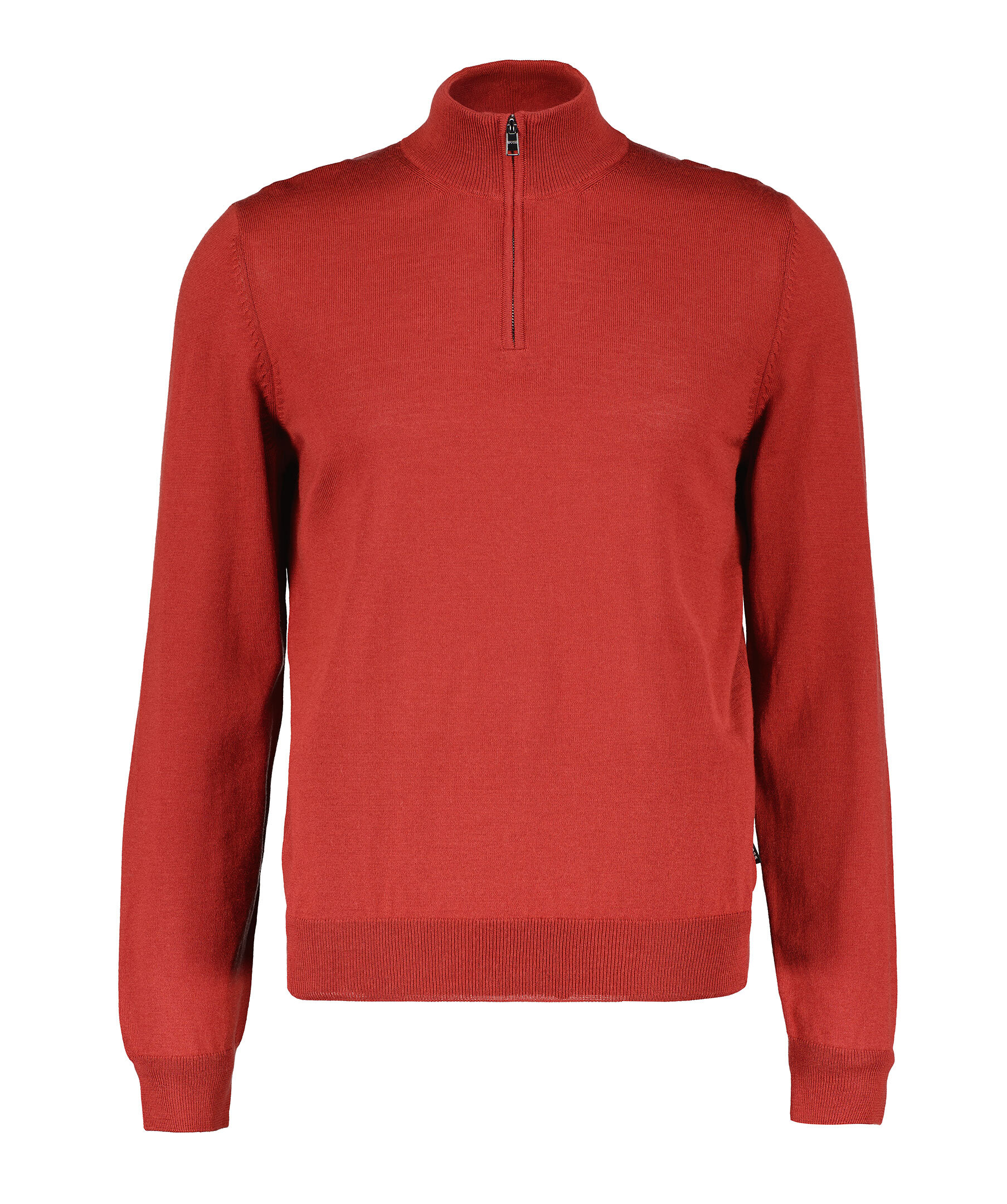 Röd half-zip från Boss Black. Tröjan har ribbad krage, ärm- och tröjslut. Tillverkad av 100% ull.
