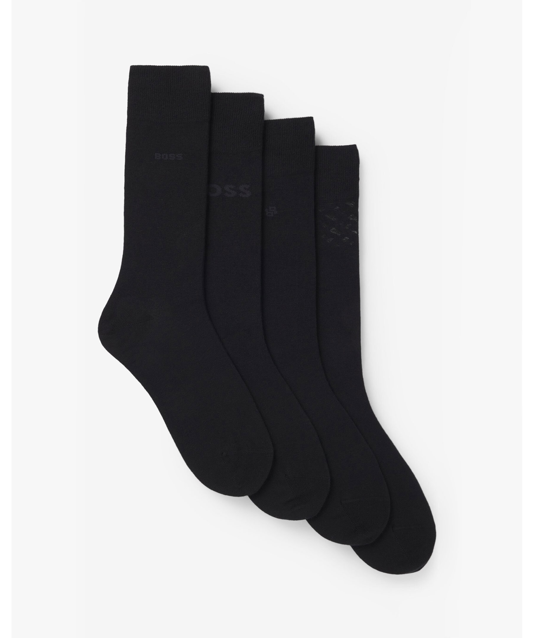 Exklusivt strumpset från BOSS som innehåller fyra par normallånga strumpor i svart, designade för både komfort och stil. Varje par pryds av olika diskreta logotyper och levereras i en elegant presentförpackning, vilket gör dem till ett utmärkt val för både vardagsbruk och som gåva. Strumporna är tillverkade med minst 60% bomull från regenerativt jordbruk, vilket prioriterar bevarande och återställande av den naturliga miljön. Kommer i presentförpackning.