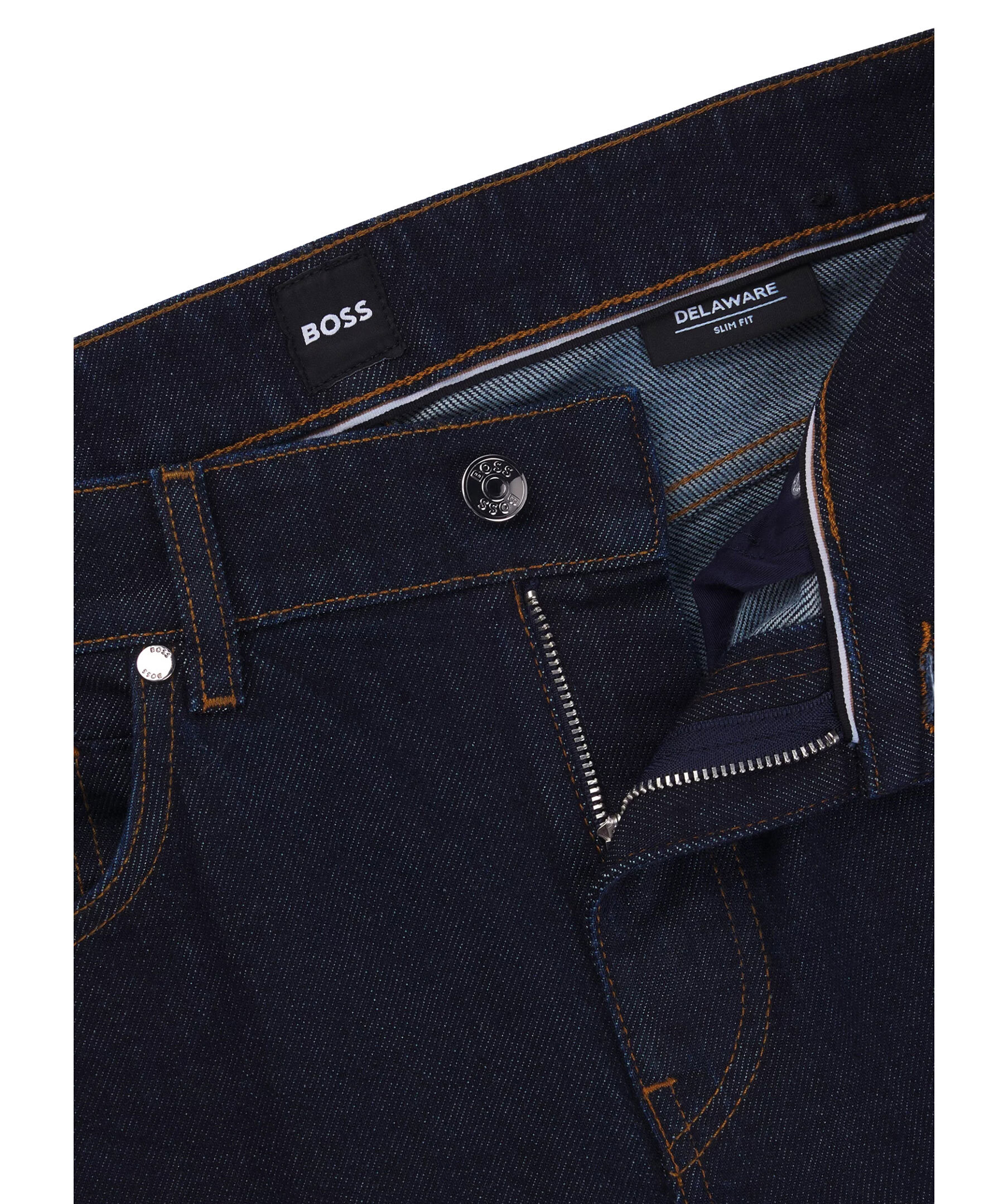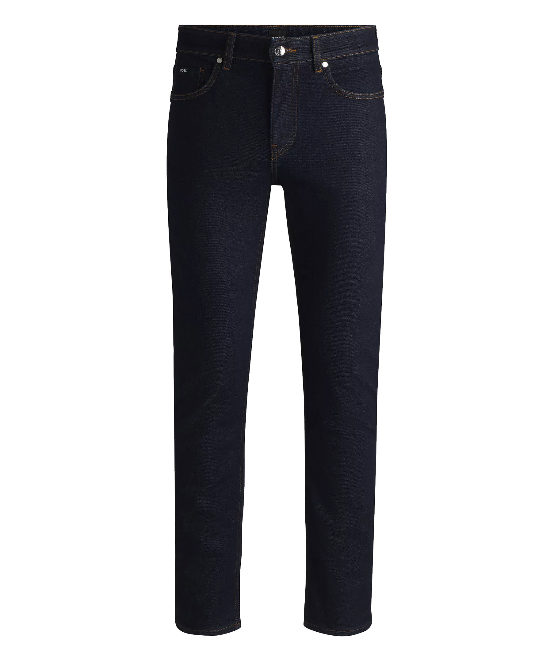 Mörkblåa jeans från BOSS Black. Jeansen har en normalhög midja med bälteshällor, fem fickor och liten metallogotyp på ena bakfickan. Tillverkade i en bomullsblandning.