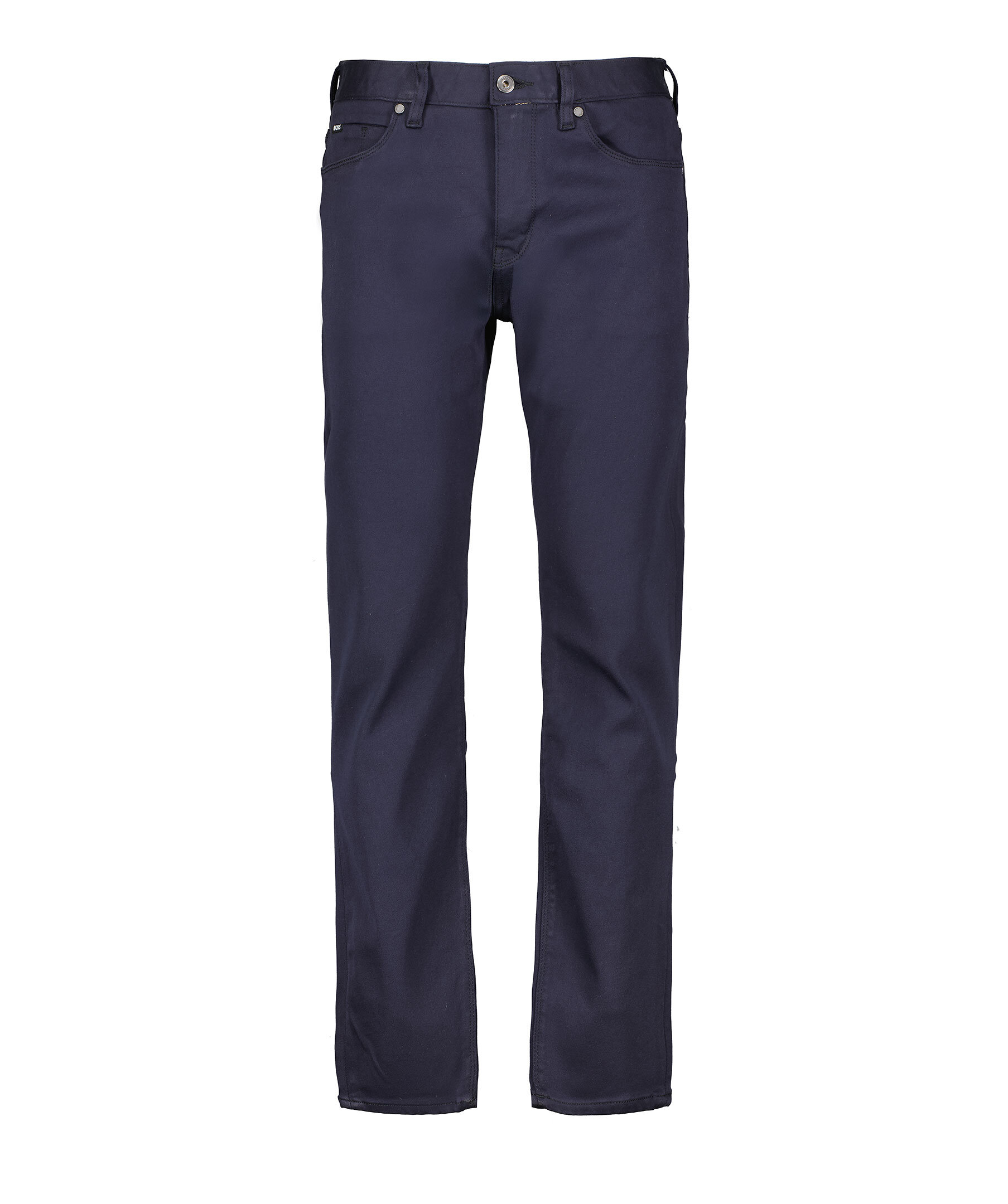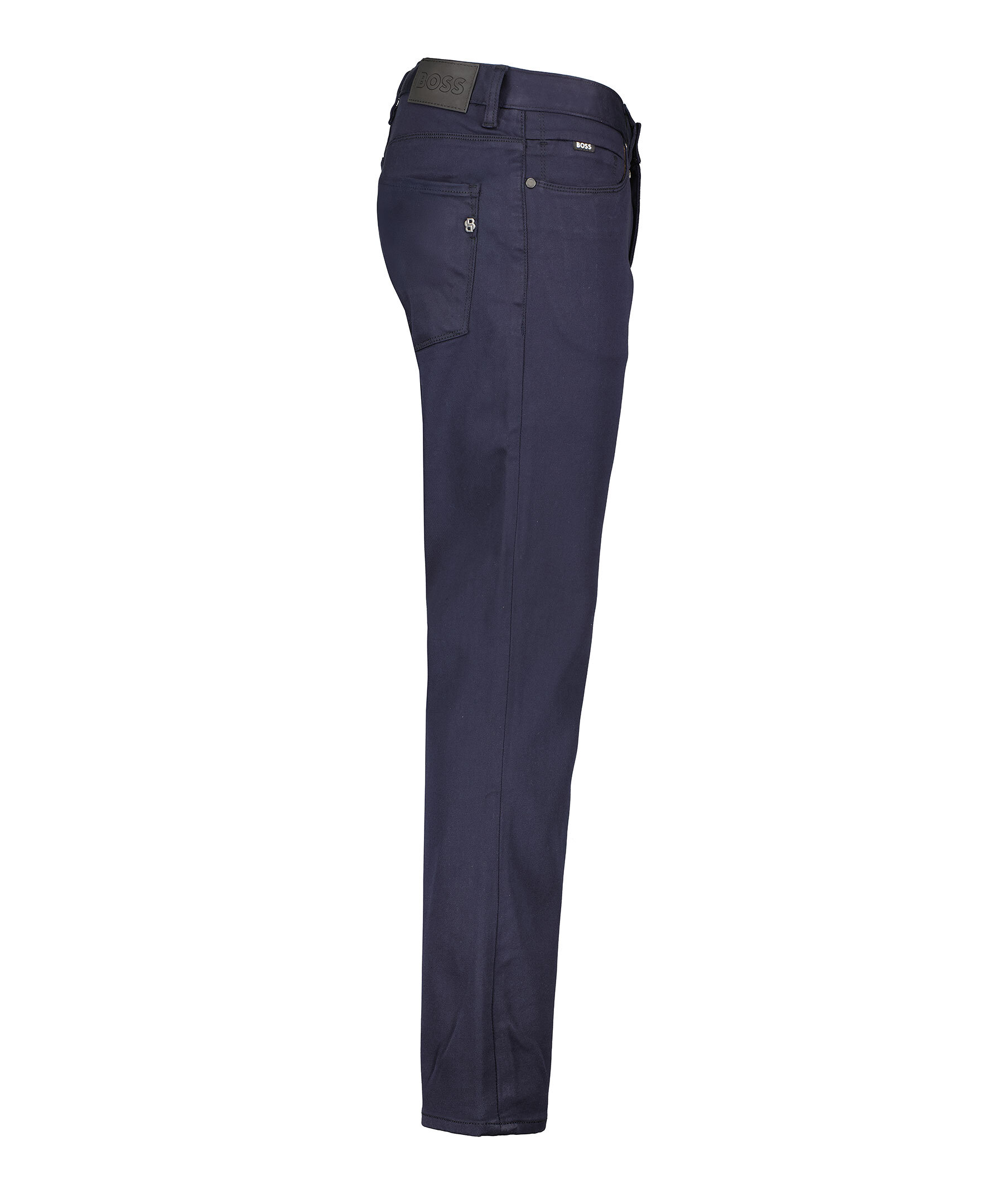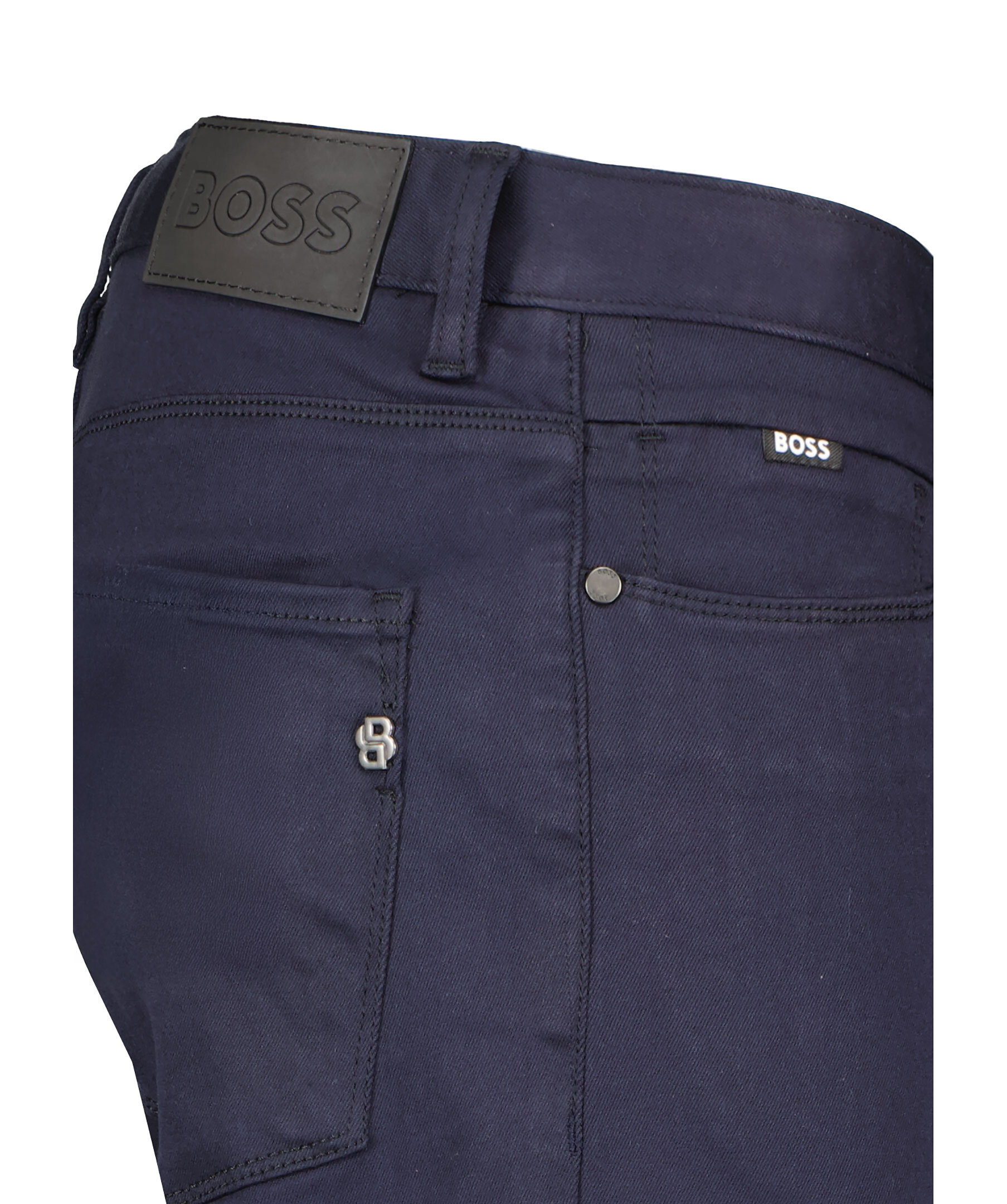 Marinblå jeans från Boss Black. Jeansen är en 5-ficksmodell med bälteshällor, svart patch med logotyp vid linningen bak och ett litet metall monogram på sidan vid ena bakfickan. Stängs med dragkedja och knapp, tillverkad av en polyester och modalblandning.
