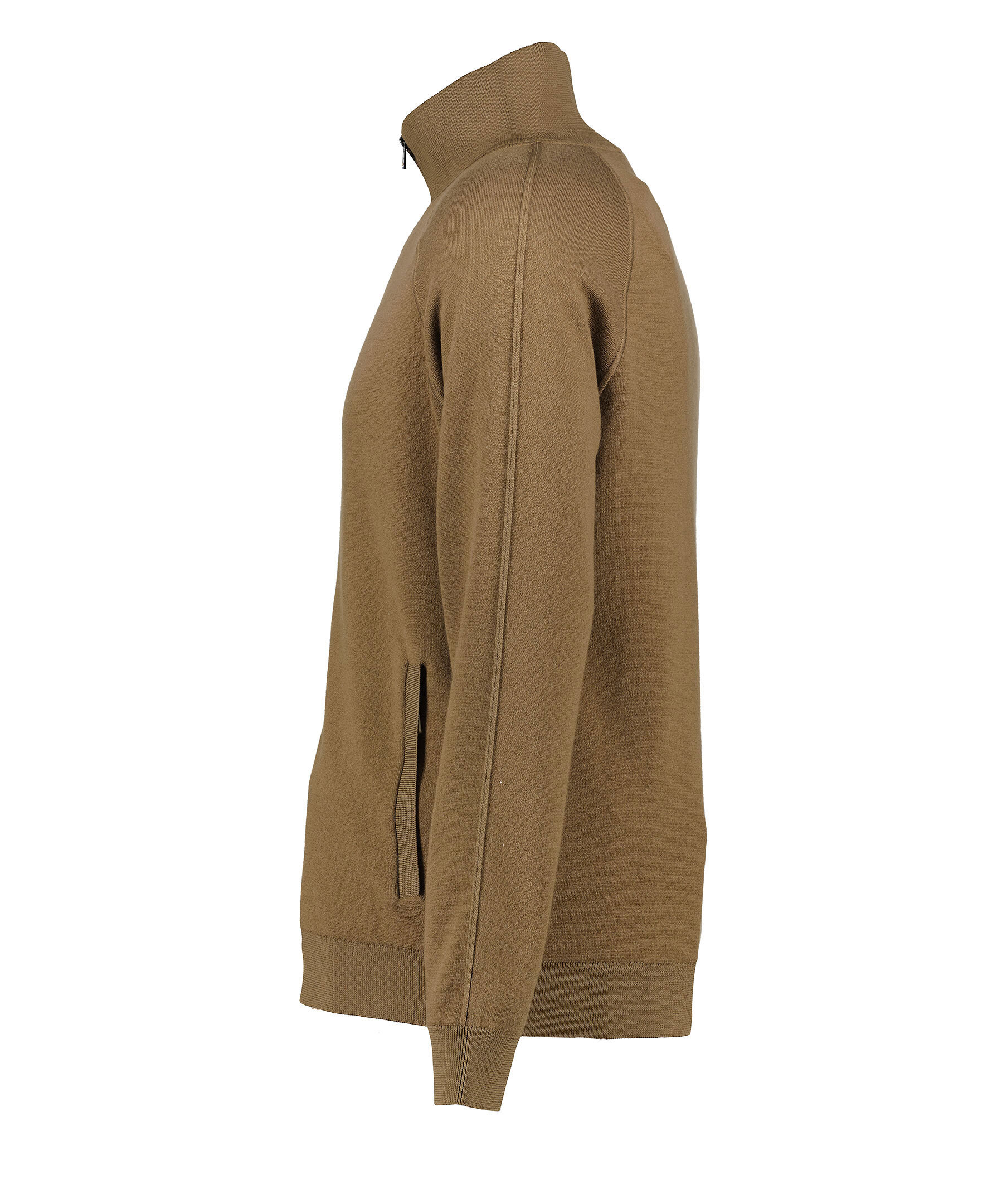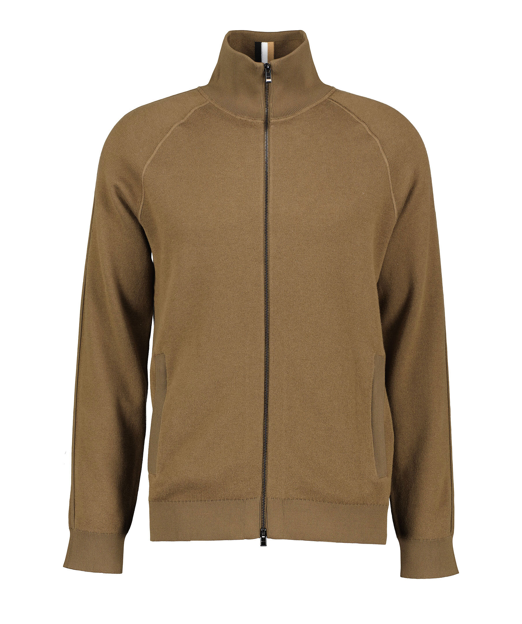 Brun grön cardigan från Boss black. Tröjan har tvåvägs dragkedja, sidofickor med dold dragkedja, ribbad krage samt mudd vid ärm- och tröjslut. Tillverkad av en bomullsblandning.