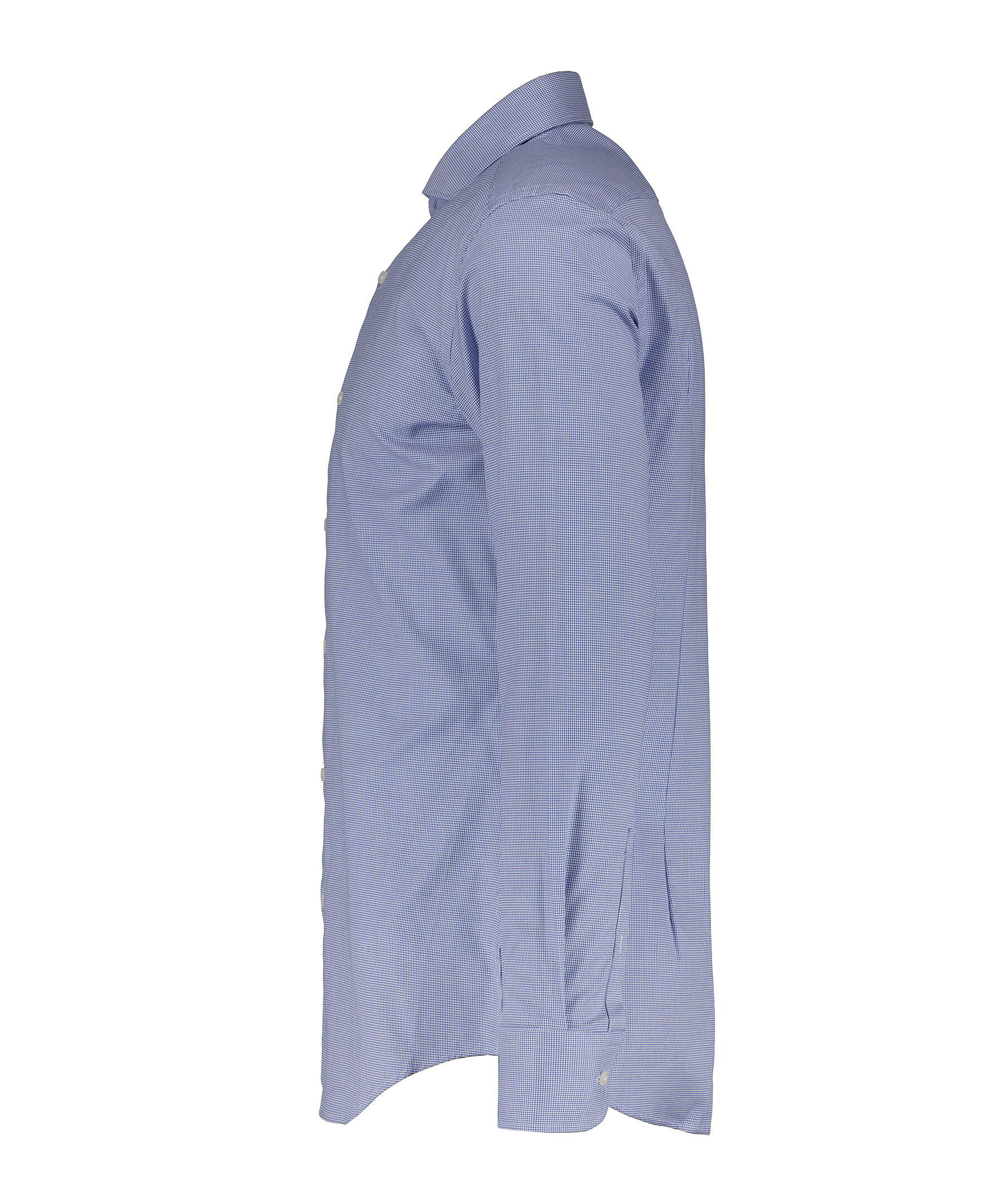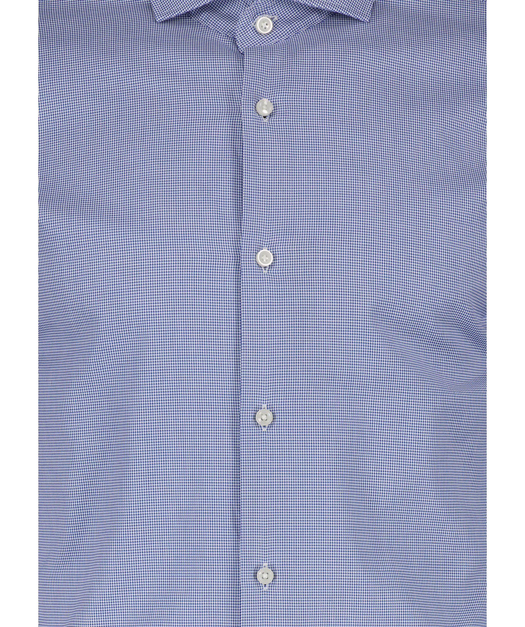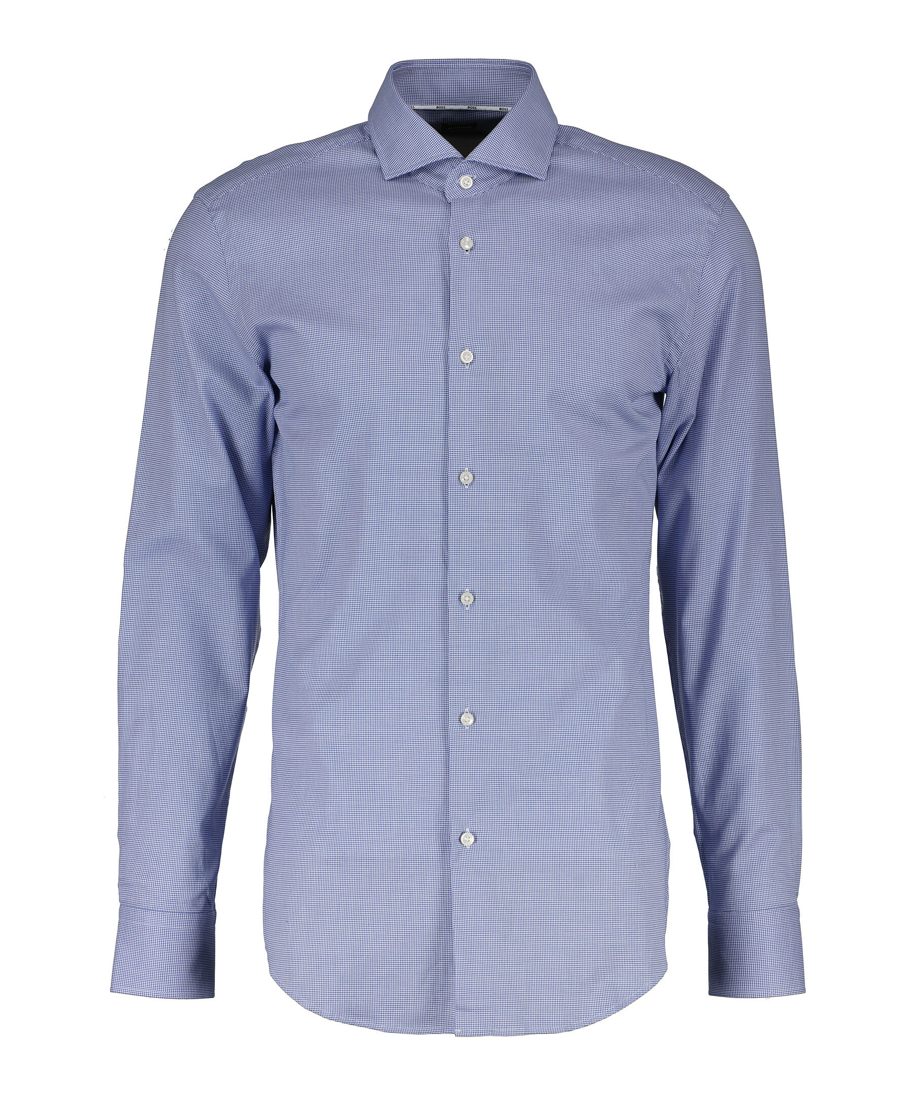 Blårutig skjorta från Boss Black. Skjortan har ett rutmönster i blått och vitt, cutaway-krage och knäppning framtill. Rundad fåll och tillverkad av bomull.