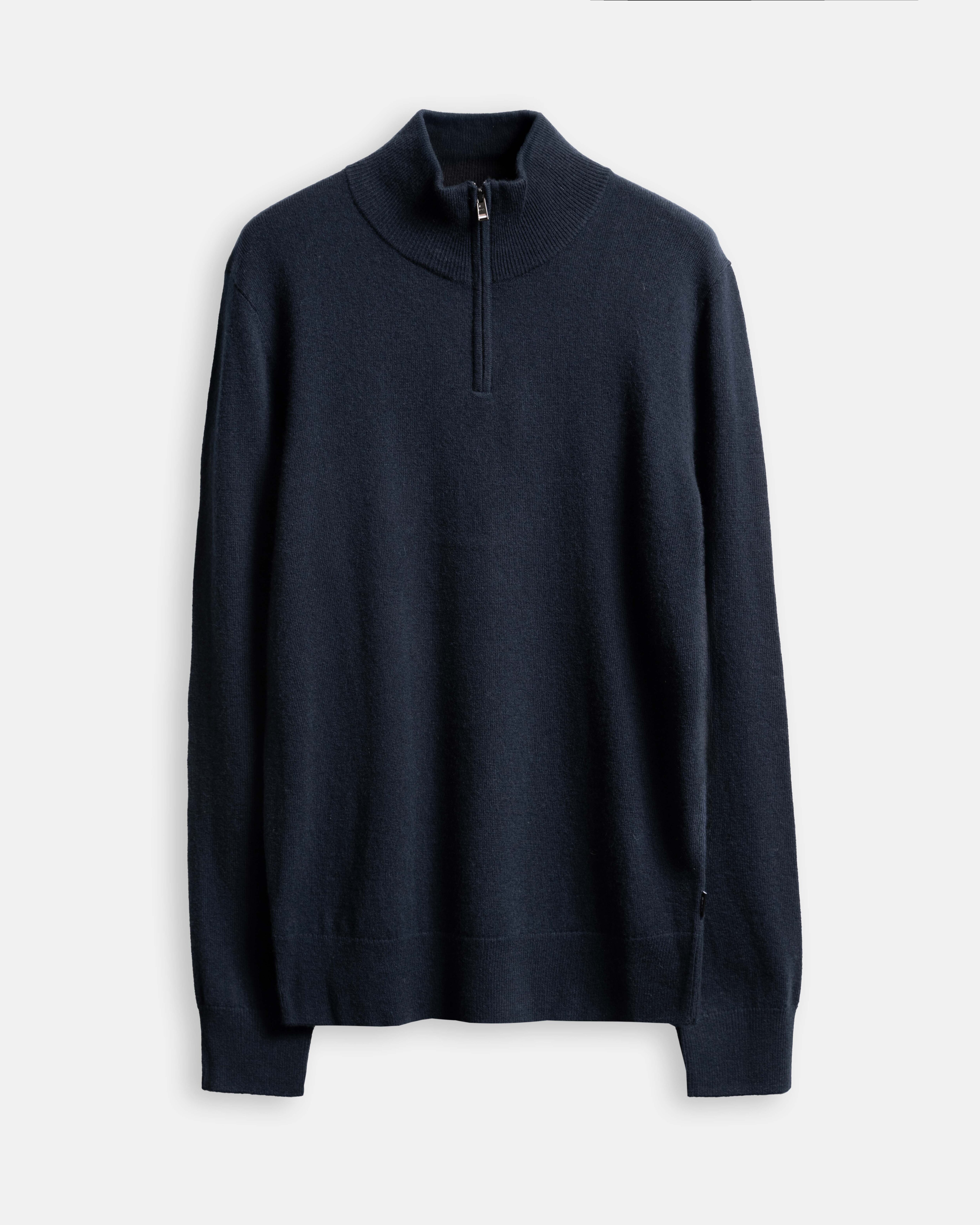 Mörkblå half-zip tröja i Kashmirblandning från BOSS. Regular fit.