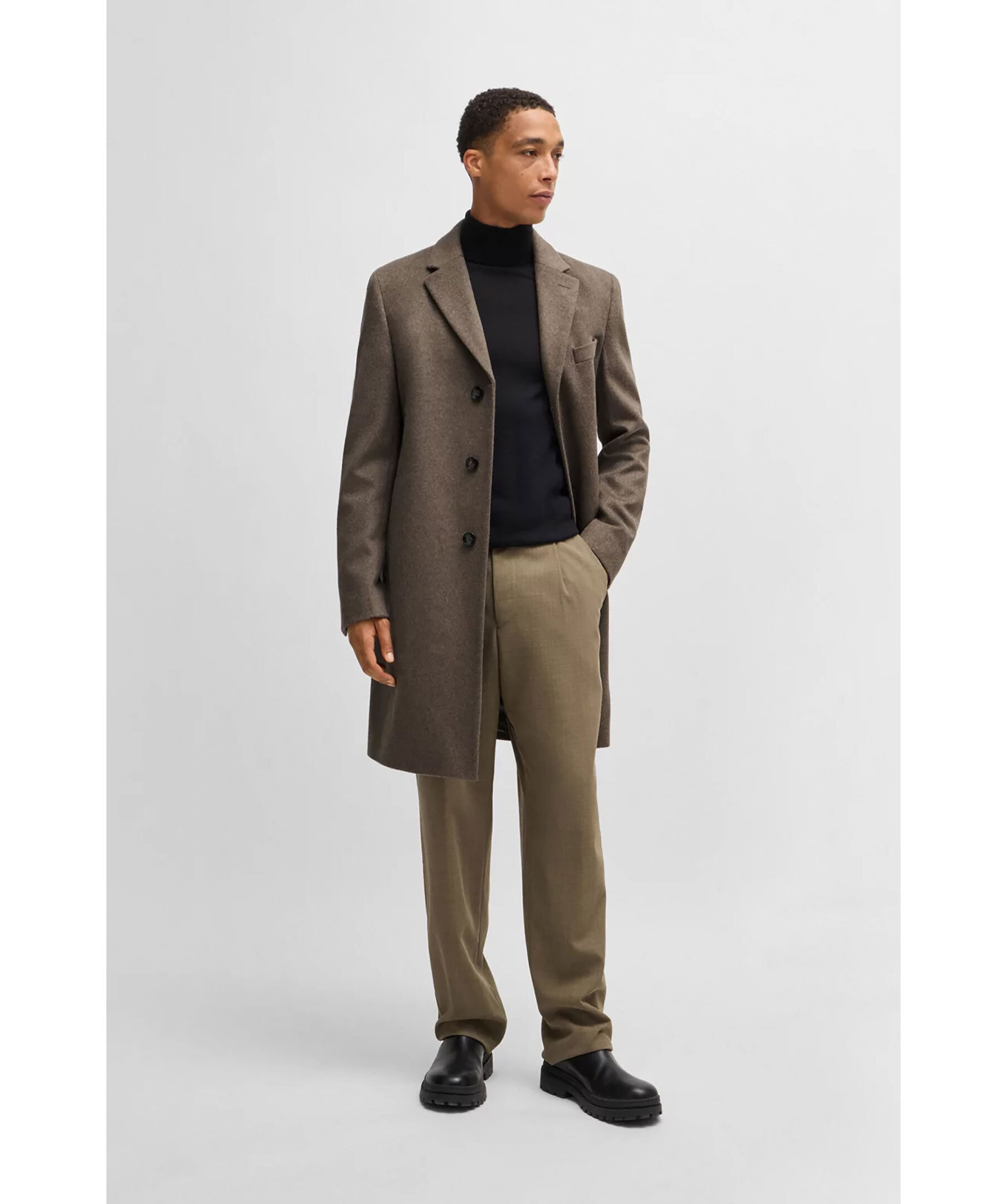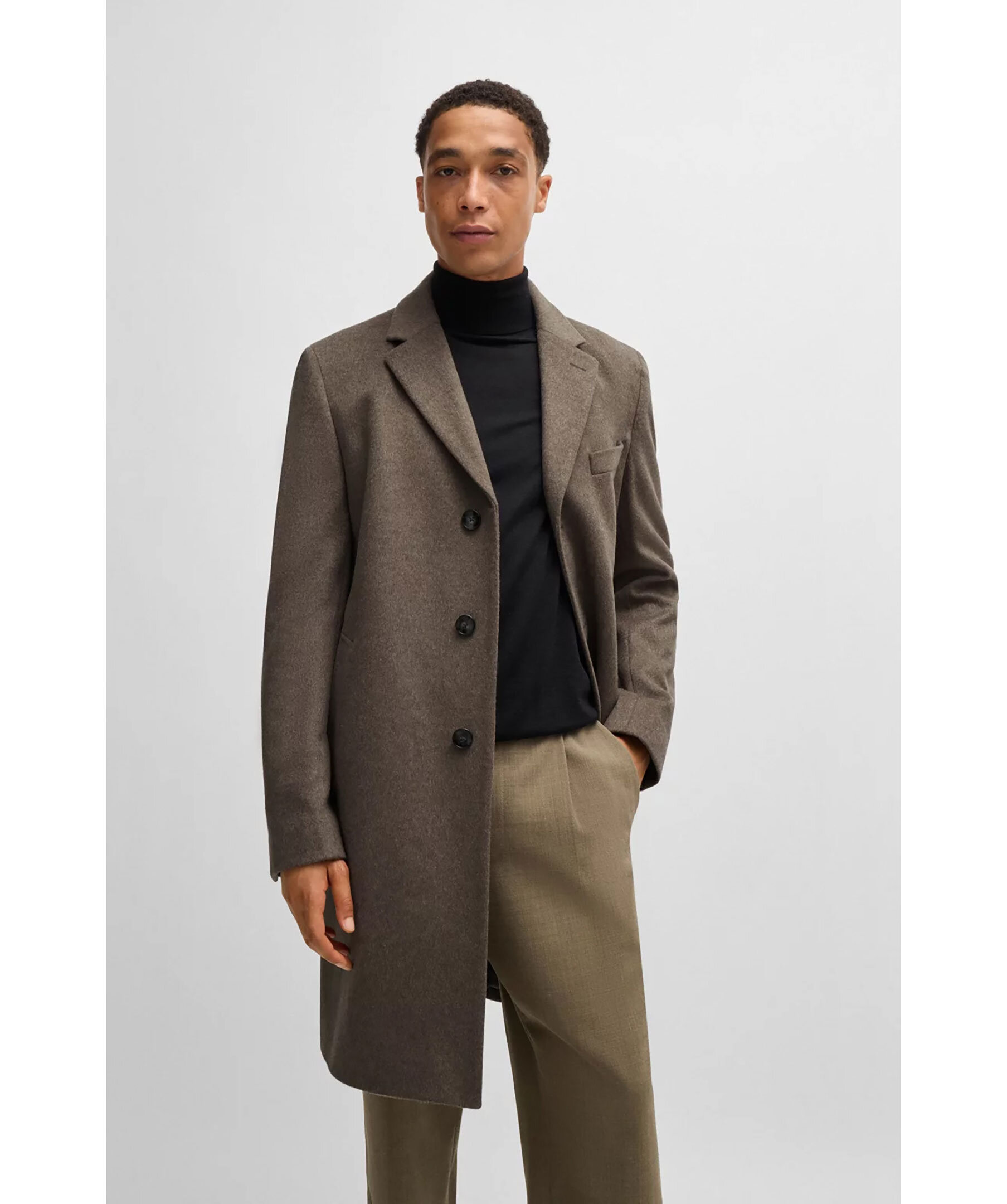 Brun/beige ullrock från BOSS Black.Tillverkad i en blandning av ny ull och lyxig kashmir. Rocken är helfodrad och skräddarsydd för en smal och sofistikerad passform.