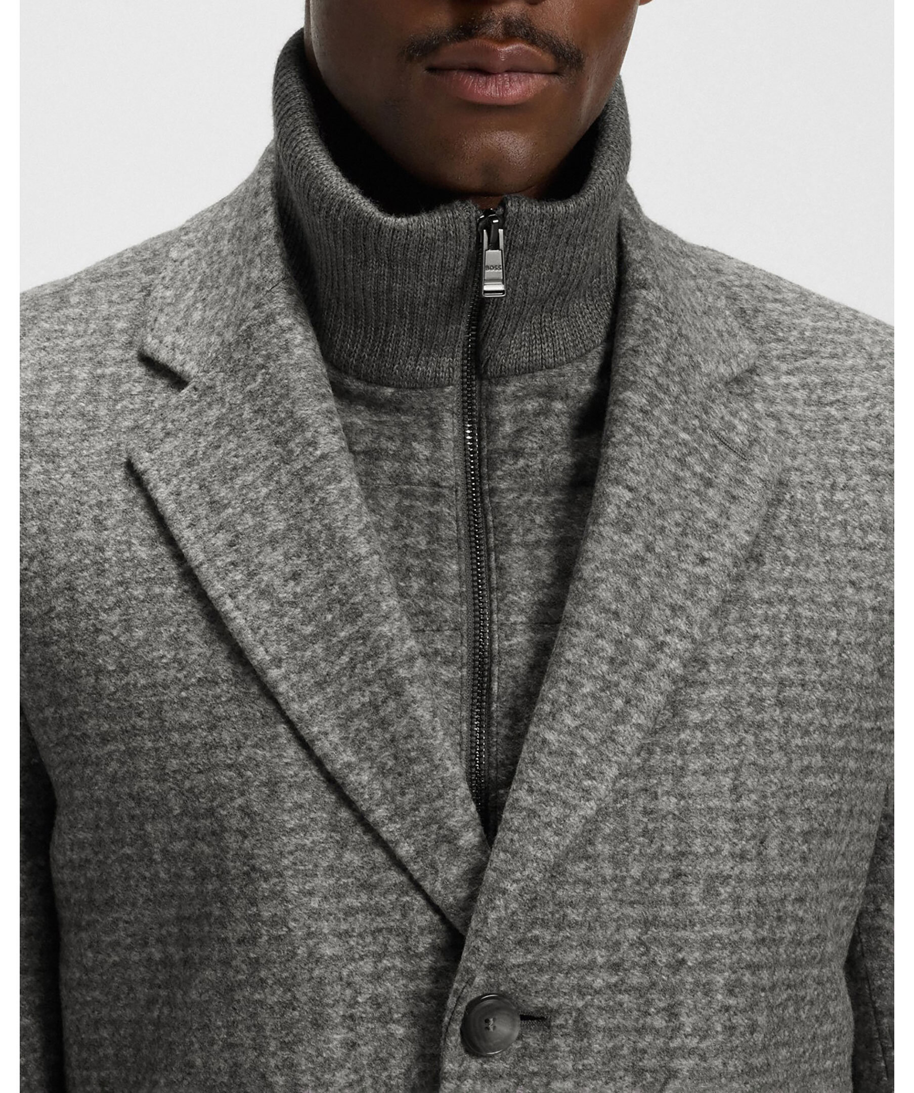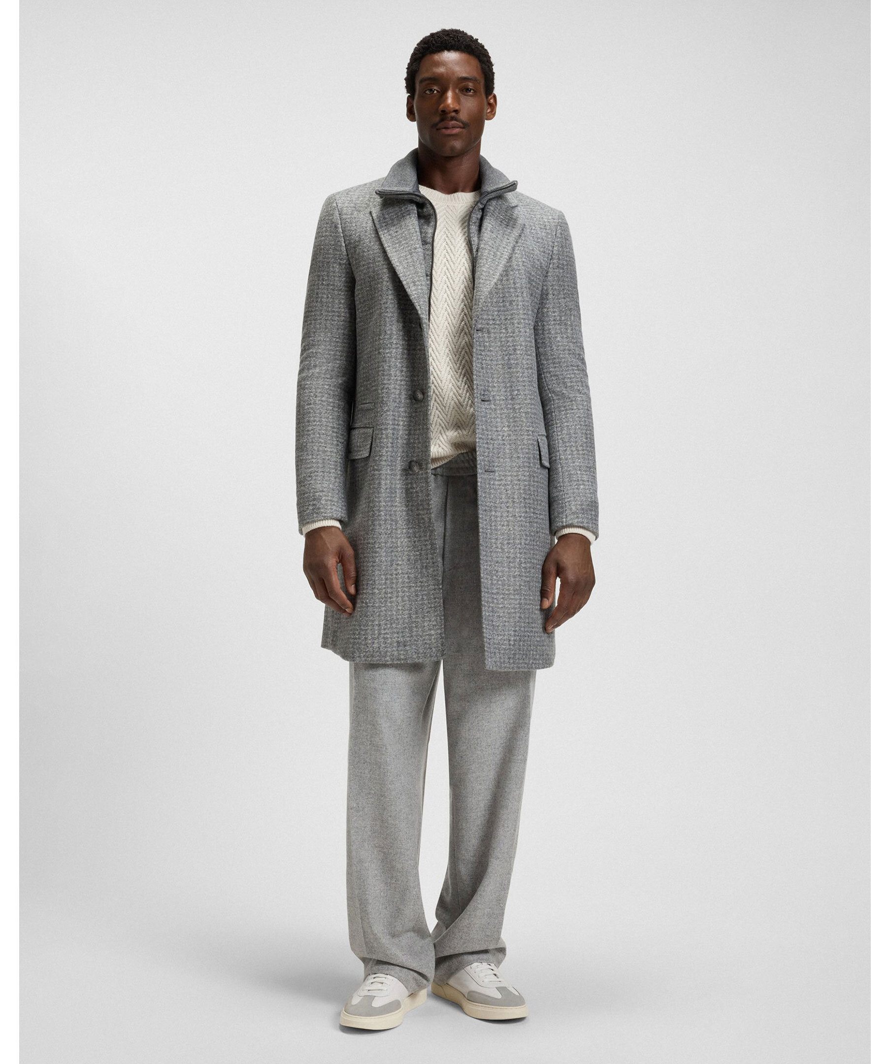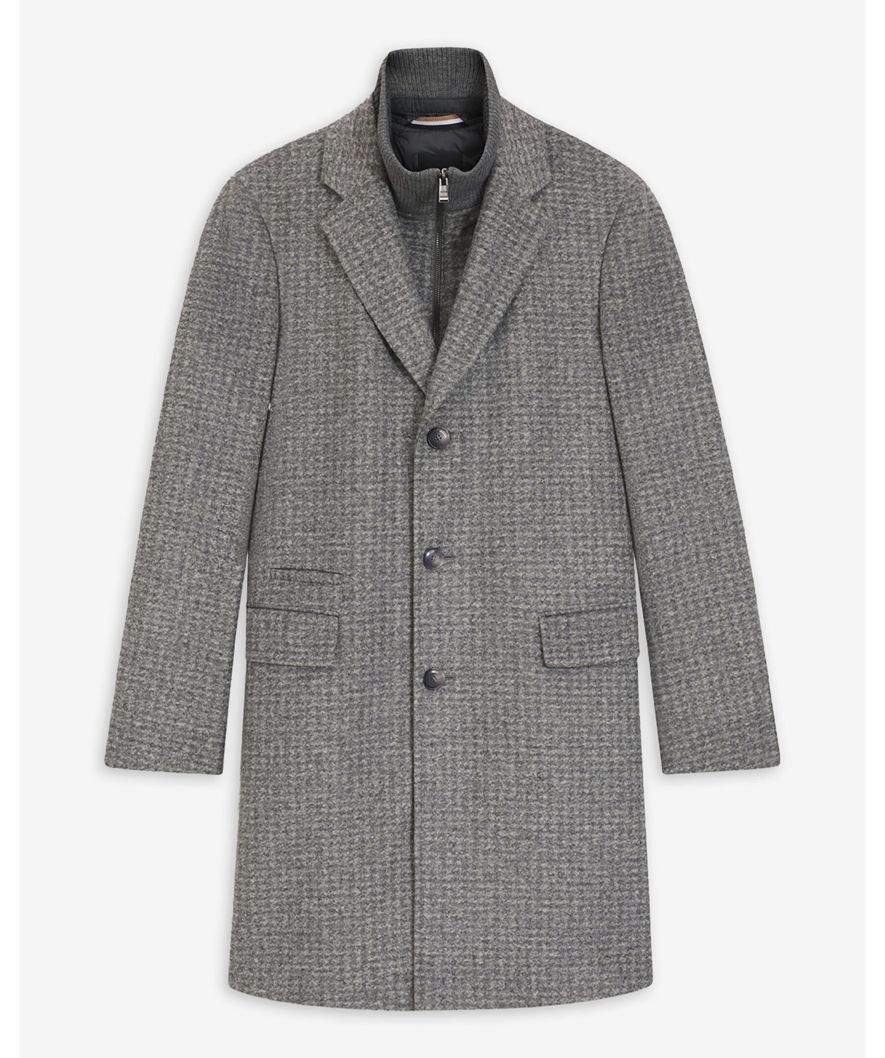 Mönstrad rock från BOSS i mjuk ullblandning. Något vadderad med stretch för komfort. Avtagbar innerdel med blixtlås. Fickor med lock samt en passpoalerad biljettficka.