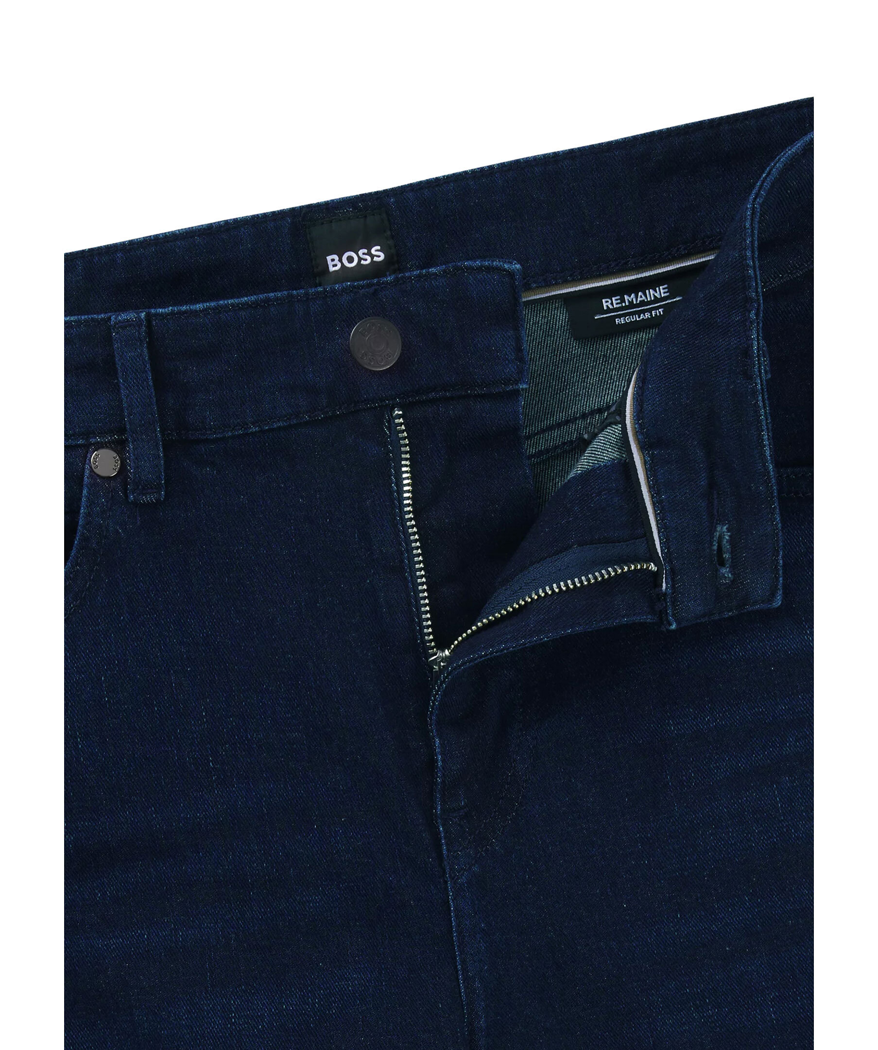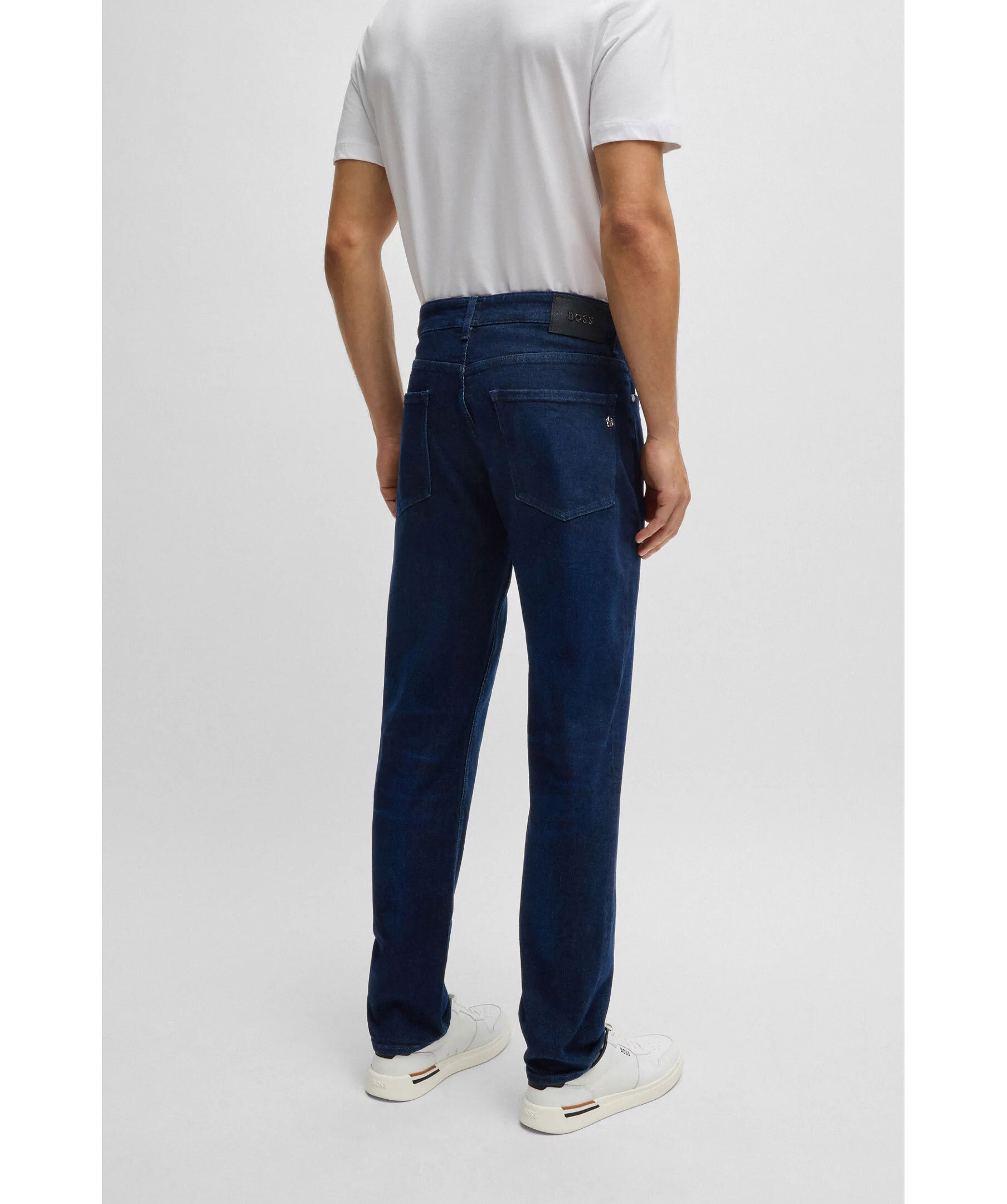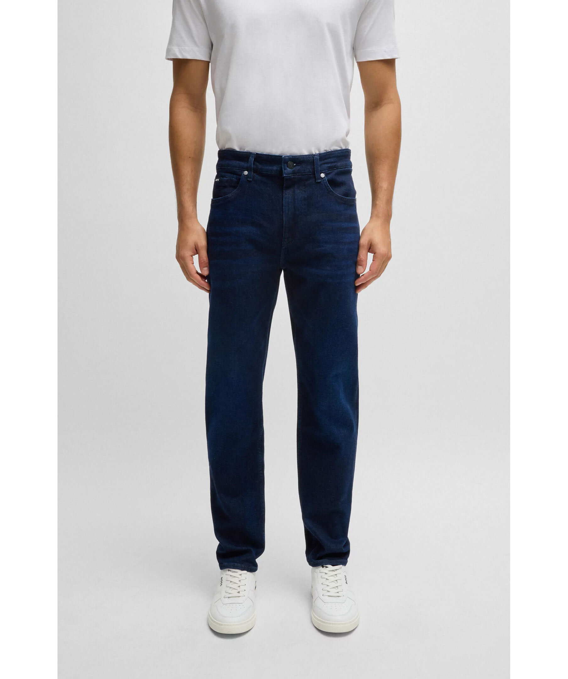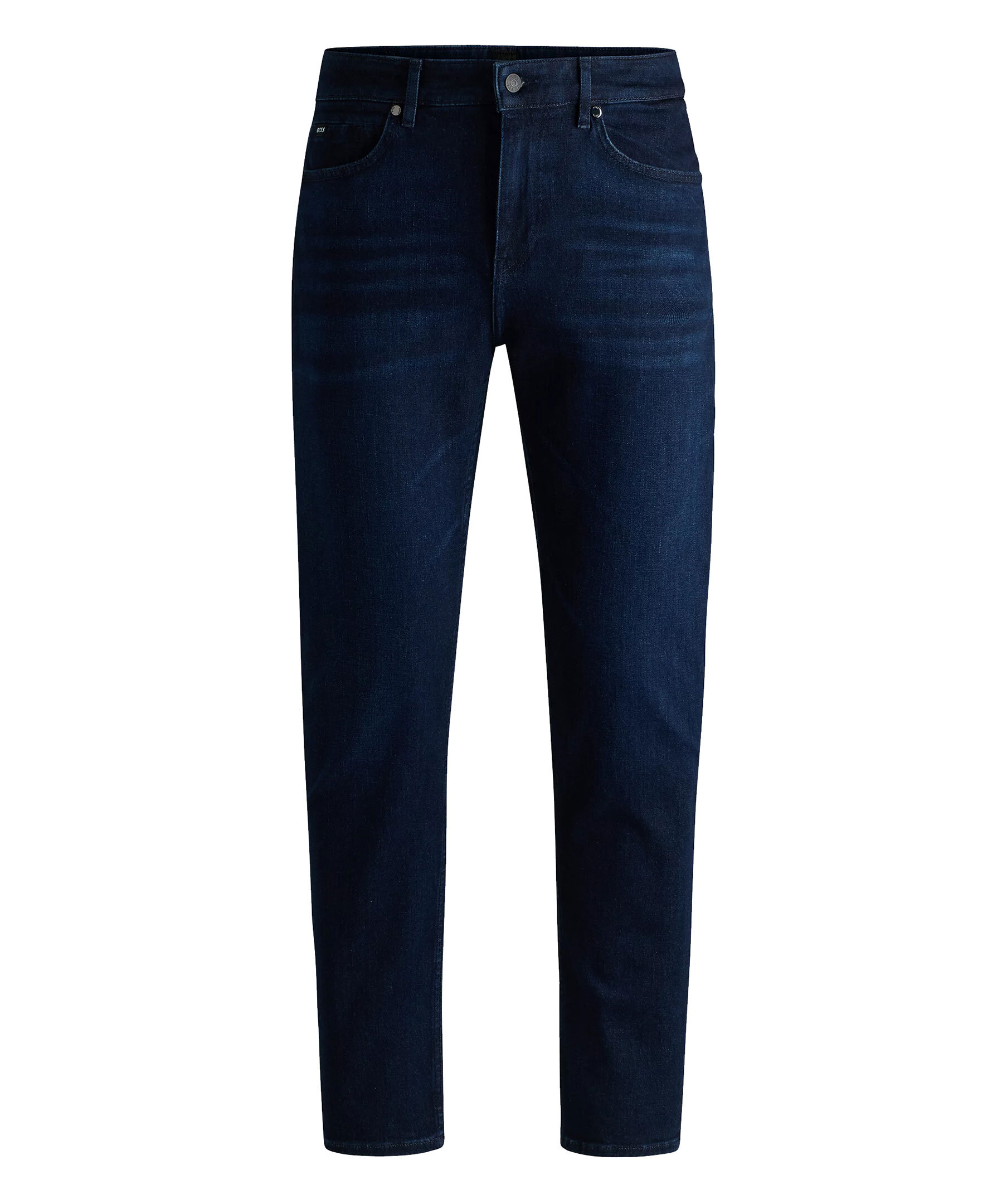 Mörkblåa jeans från BOSS Black. Jeansen har en normalhög midja med bälteshällor, fem fickor, samt logotyplapp på linningen och metallogotyp på ena bakfickan. Tillverkade i en stretchig bomullsblandning.