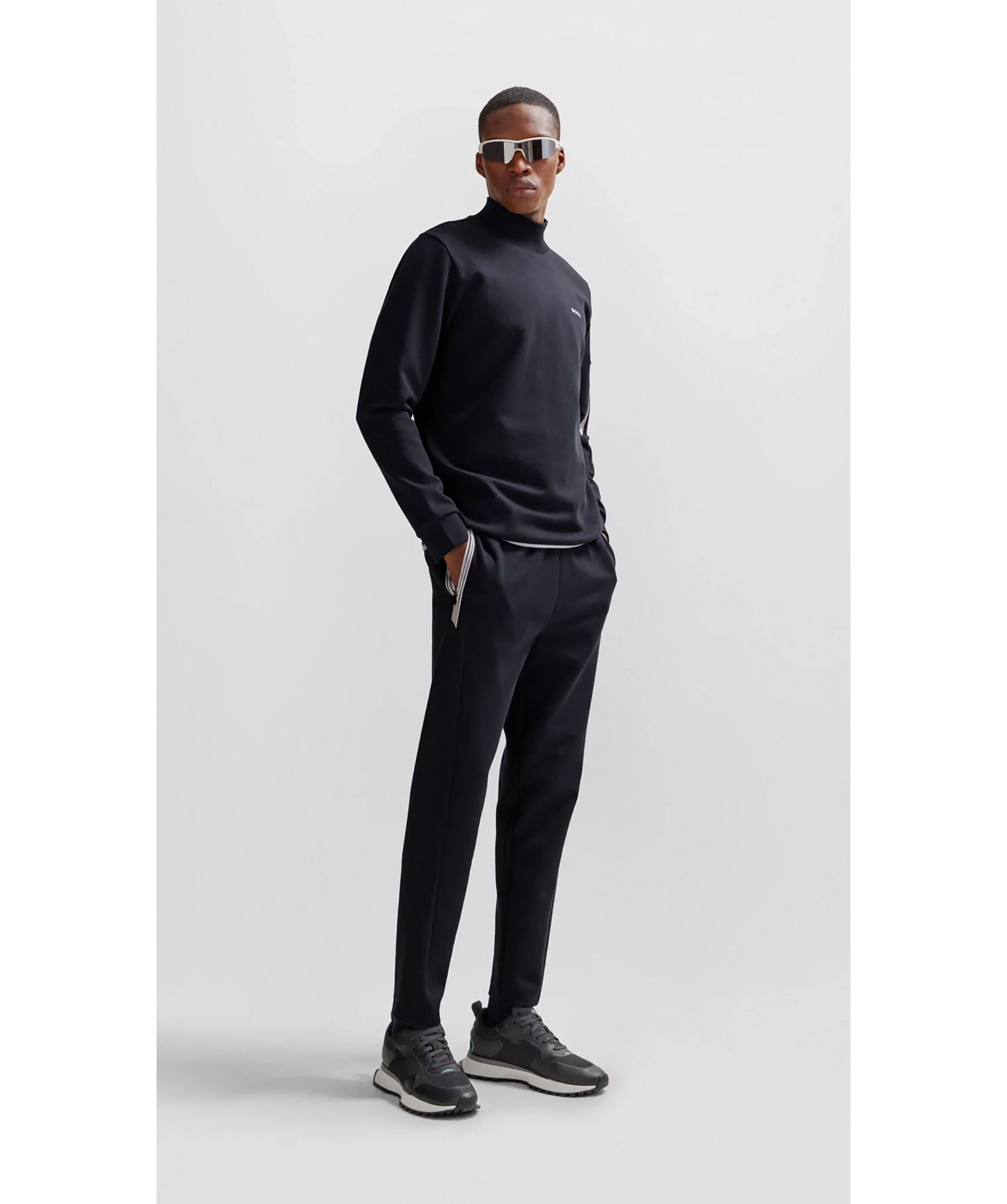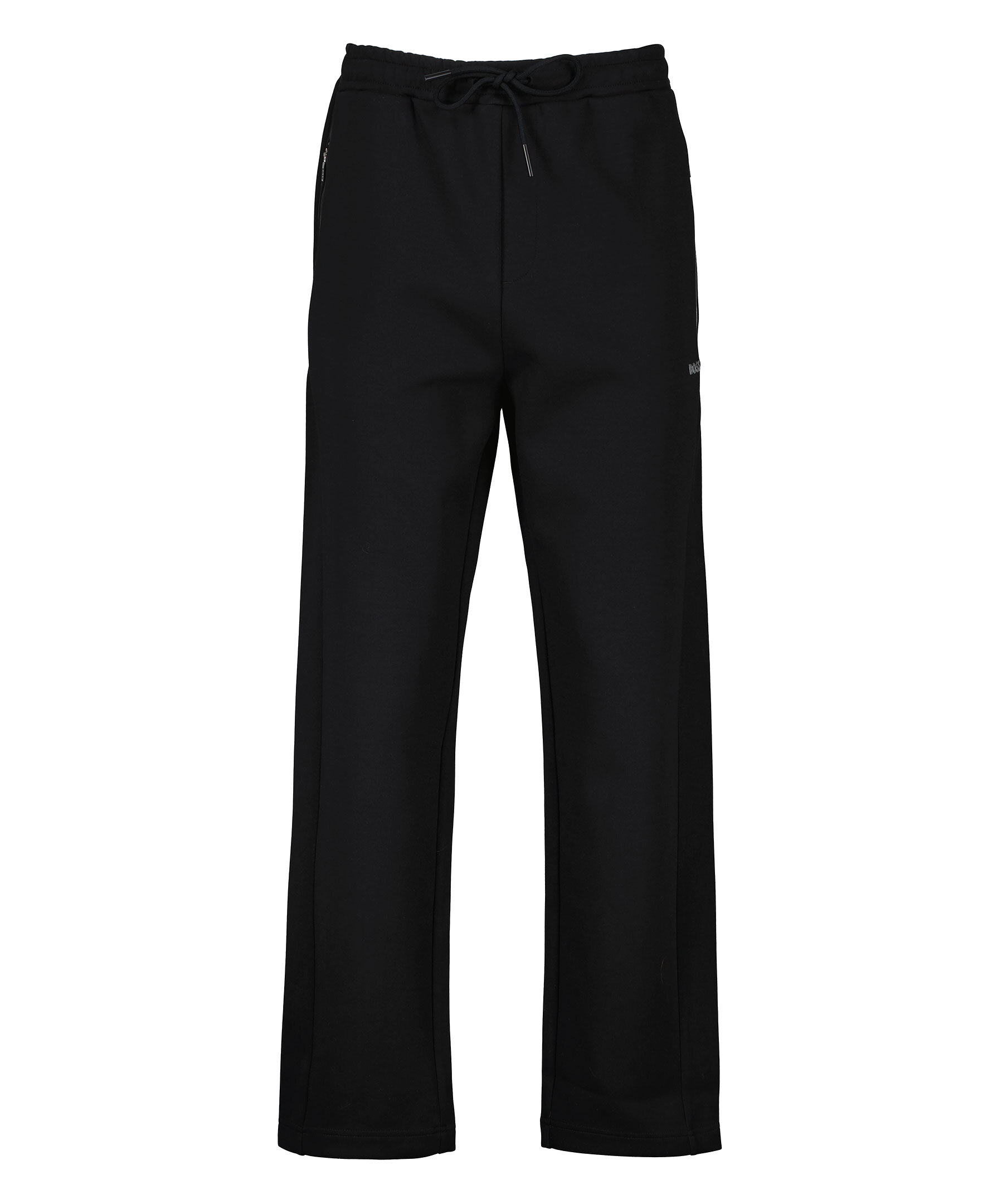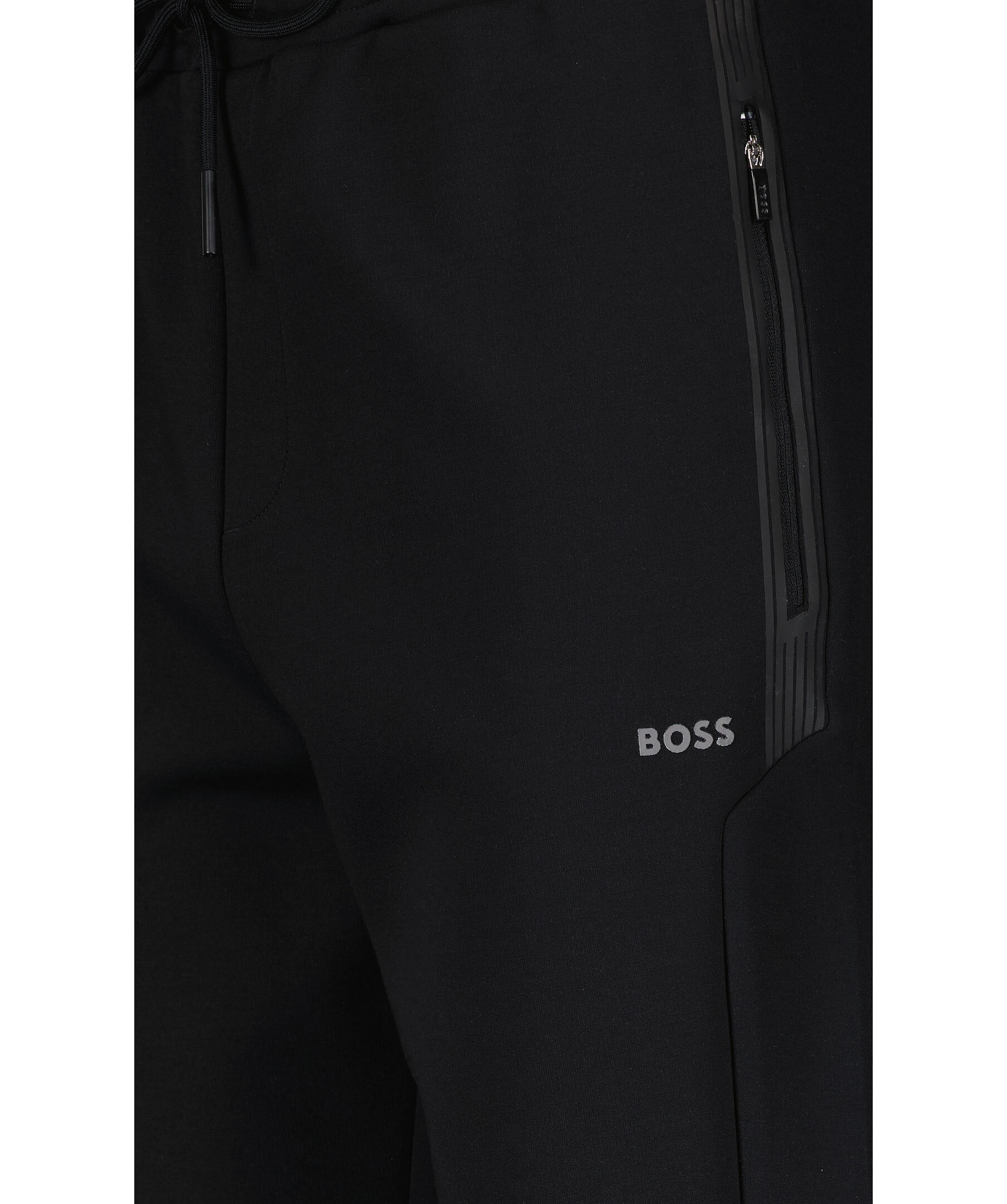 Svarta, ikoniska tracksuit-byxor i straight fit från BOSS Green. Tillverkade av en stretchblandning med HD-logga på vänster ben. Det här plagget är tillverkat av ekologisk bomull. Dragsko i midjan. Sidfickor med blixtlås, Welt-ficka baktill. Normal passform.