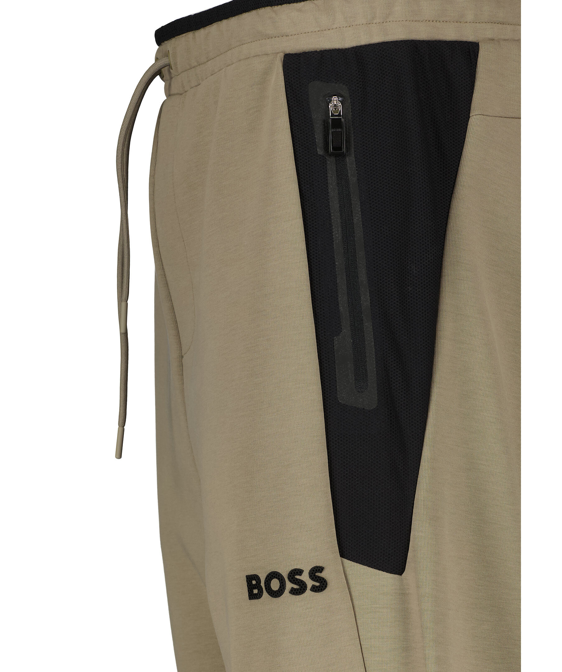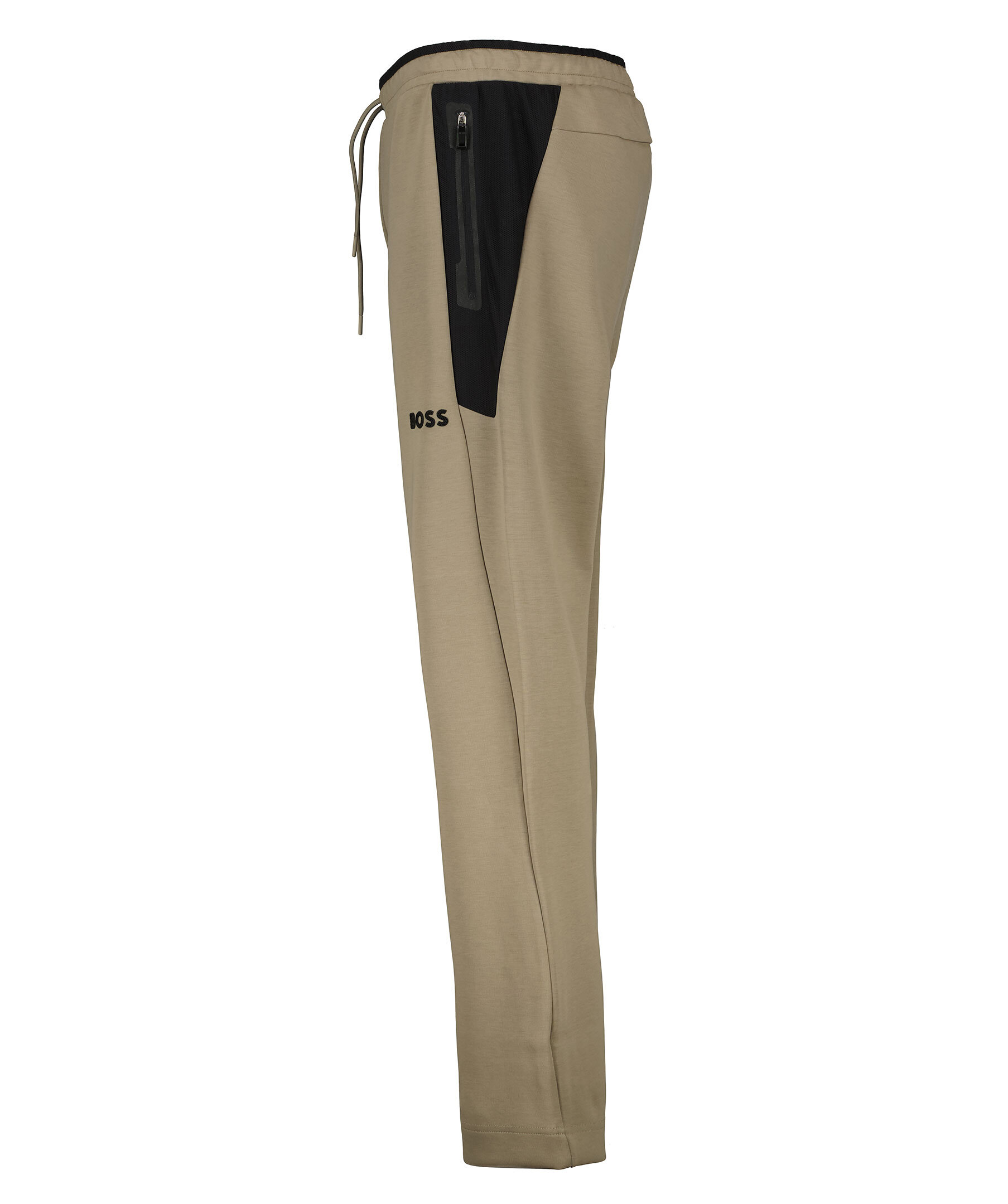 Greige tracksuit byxor från BOSS Green. Tillverkade av stretchtyg med öppna fållar, meshinlägg och 3D-modellerad logga. Elastisk midja med dragsko samt två sidfickor med dragkedja och en dold passpoalficka baktill. Normal passform.