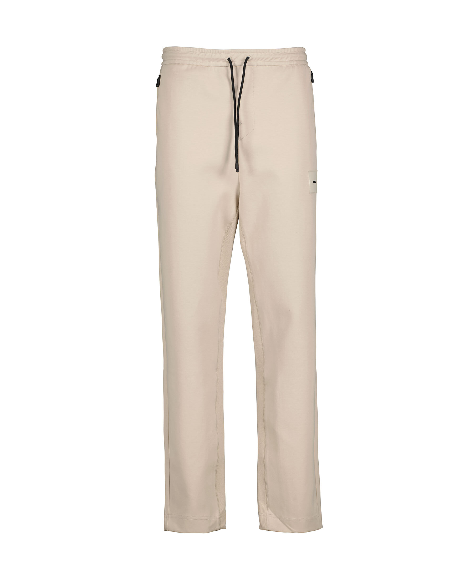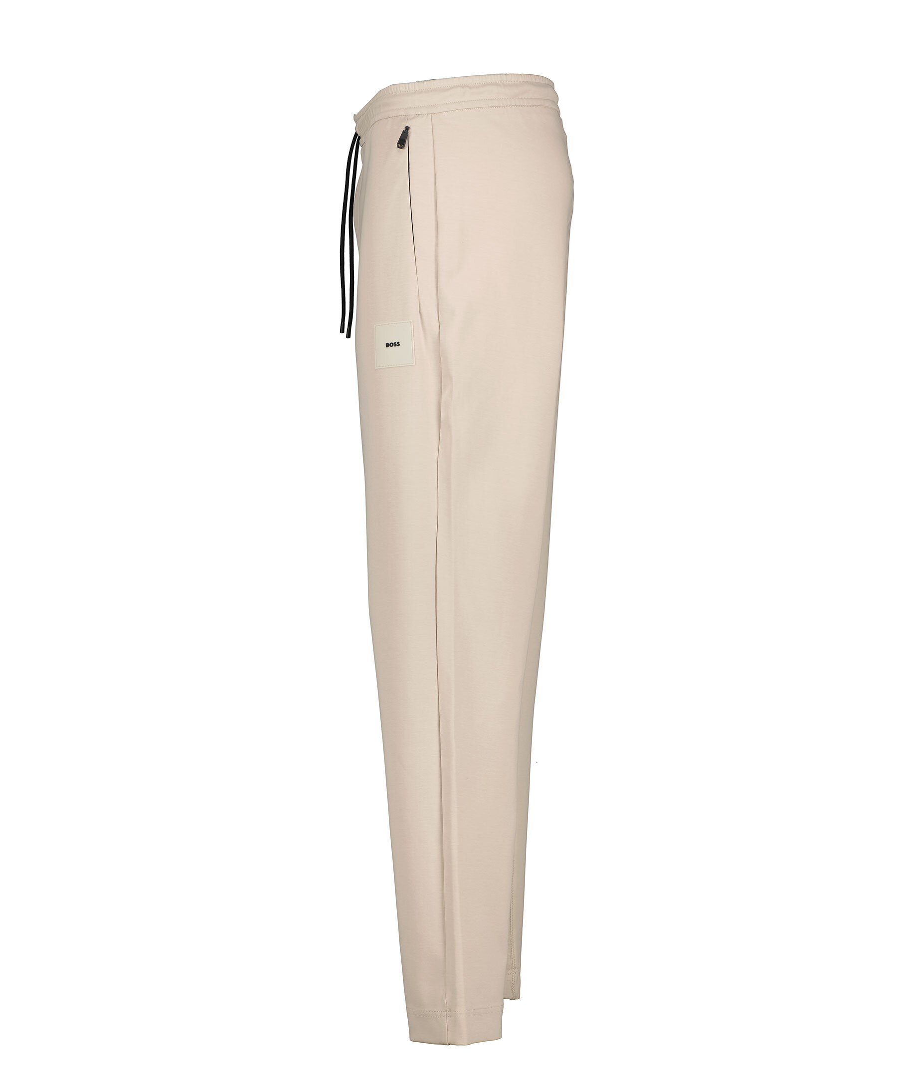 Beigea mjukisbyxor från BOSS Green. Byxorna har elastisk midja med snörning, två sidfickor med dragkedja samt en passpoalficka baktill. Gummerad logotyp under ena sidfickan. Tillverkad i en bomullsblandning.