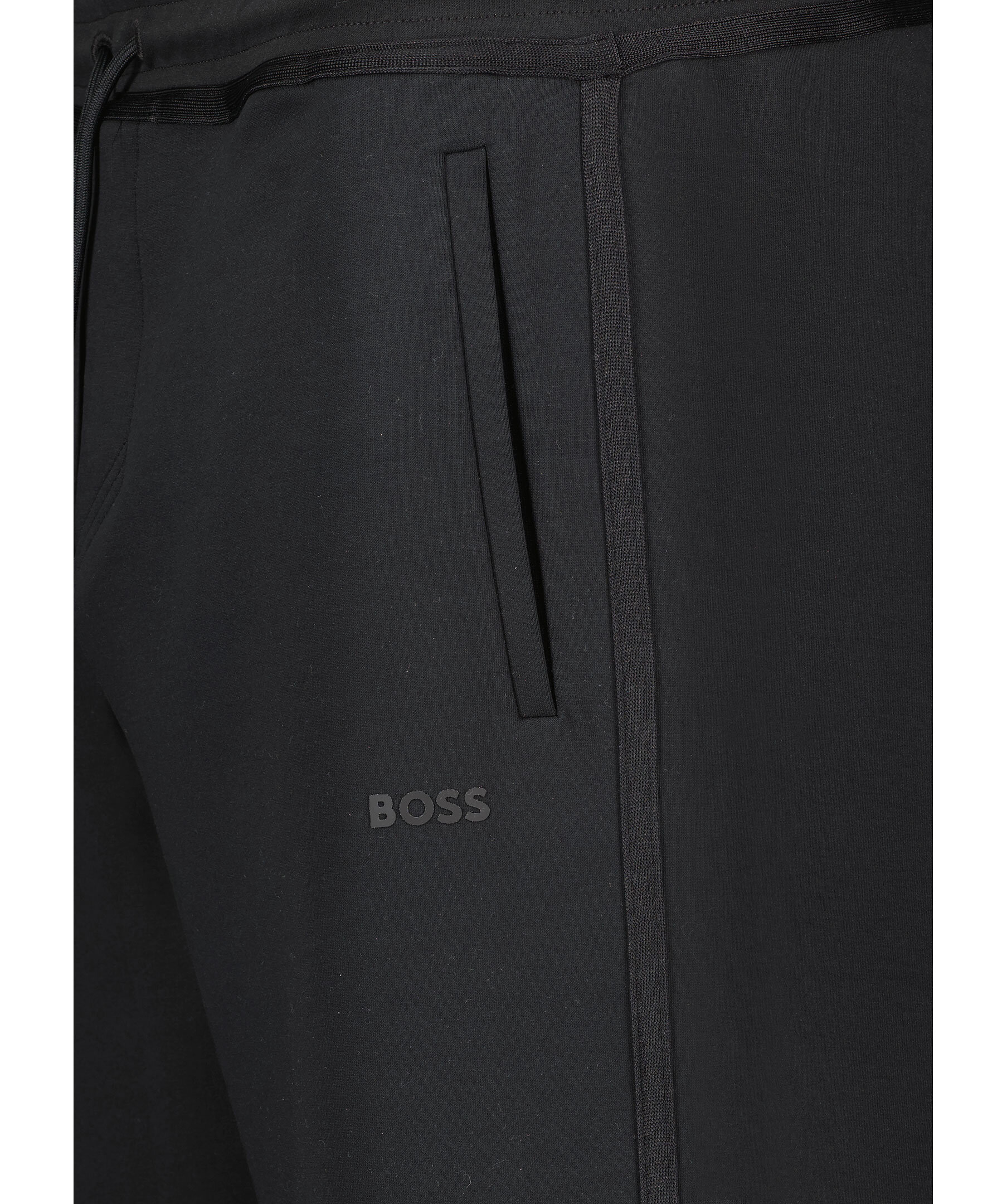 Svarta mjukisbyxor från BOSS Green. Byxorna har en elastisk midja med dragsko, två sidfickor, en passpoalficka baktill samt logotyp under ena sidfickan. Tillverkade i en bomullsblandning.