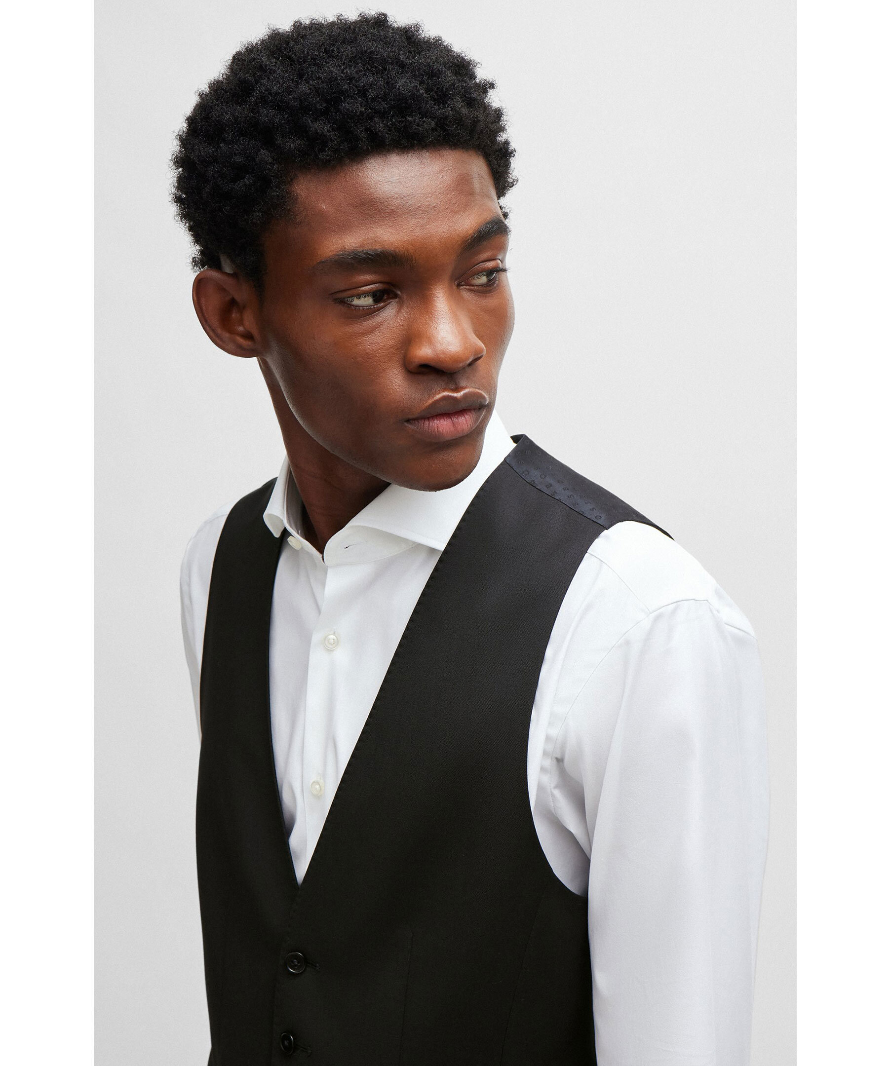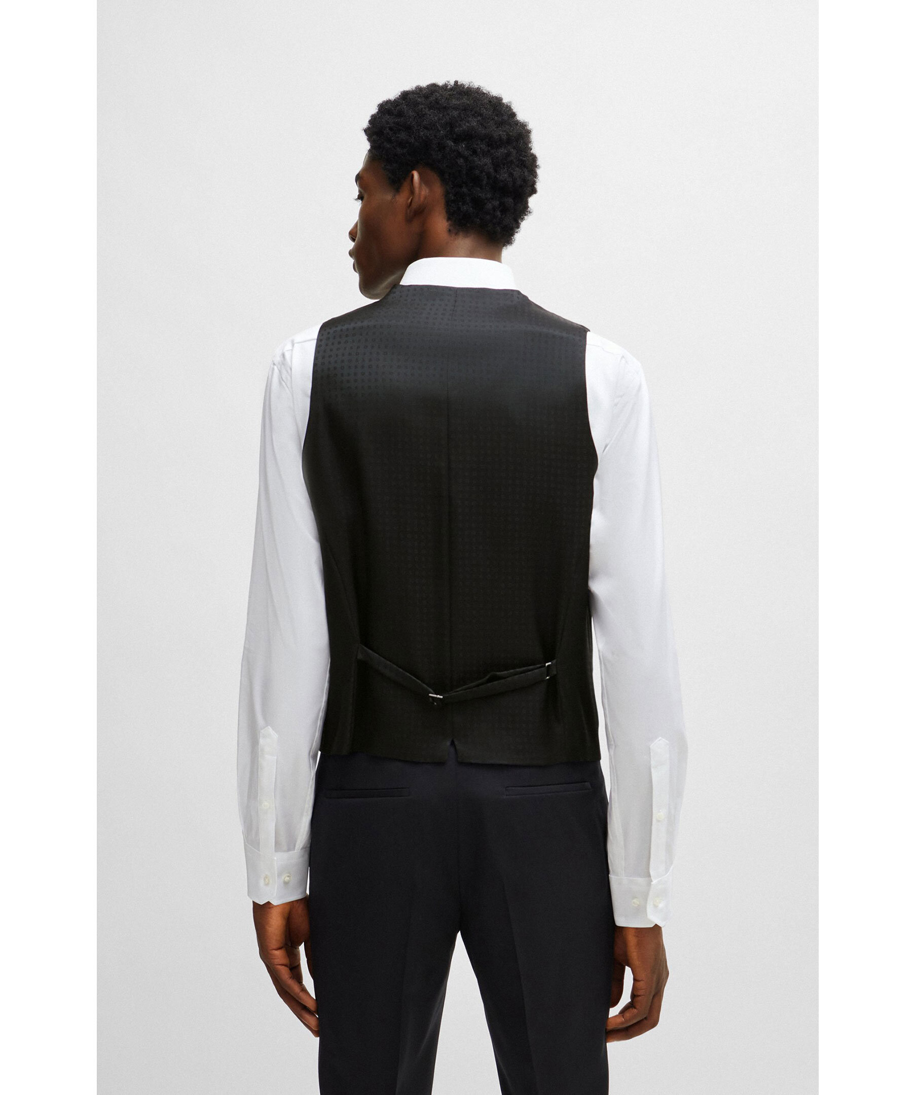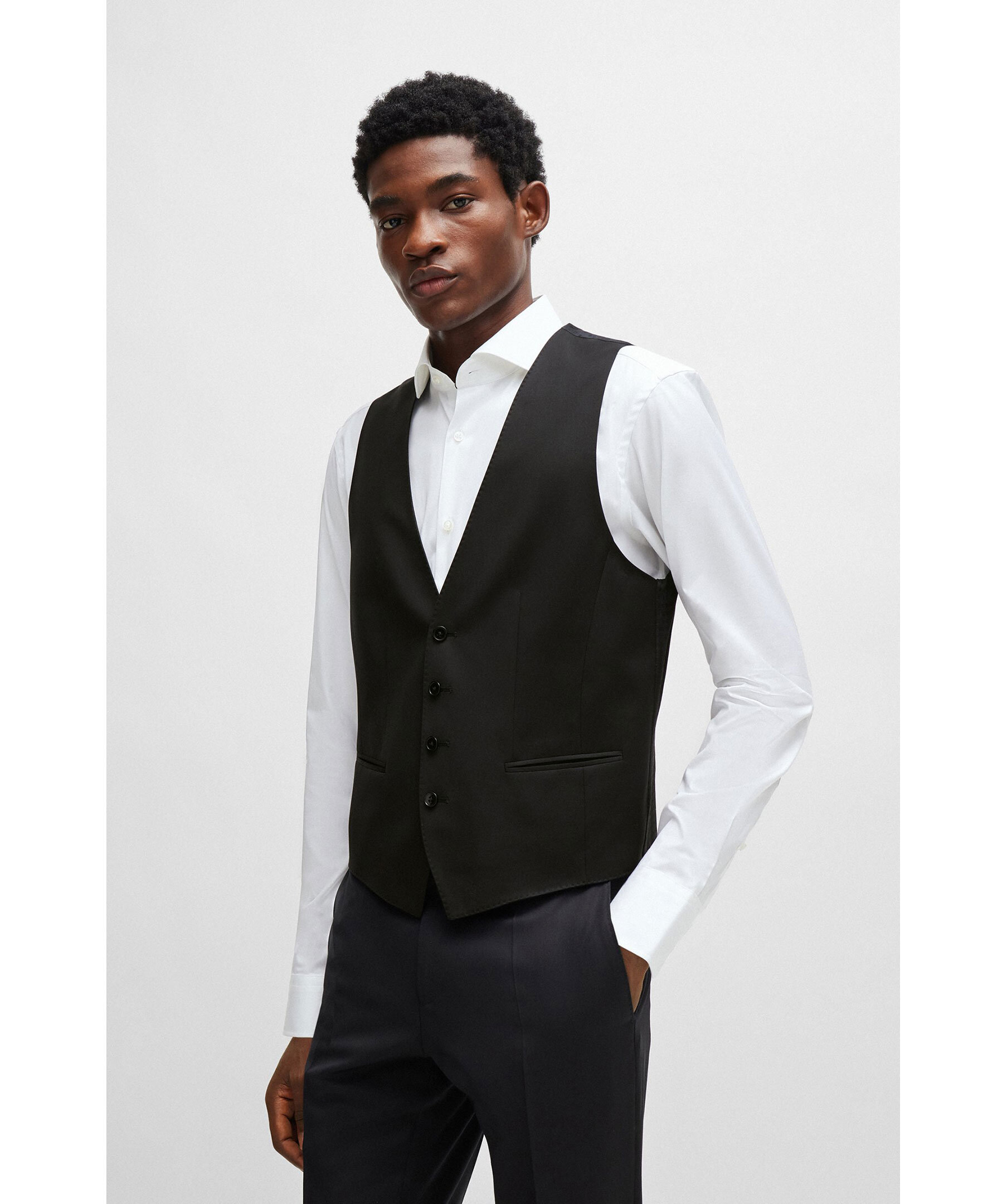 Svart kostymväst från BOSS Black. Västen har enkelknäppning och två passpoalficka fram. Tillverkad i jungfruul.