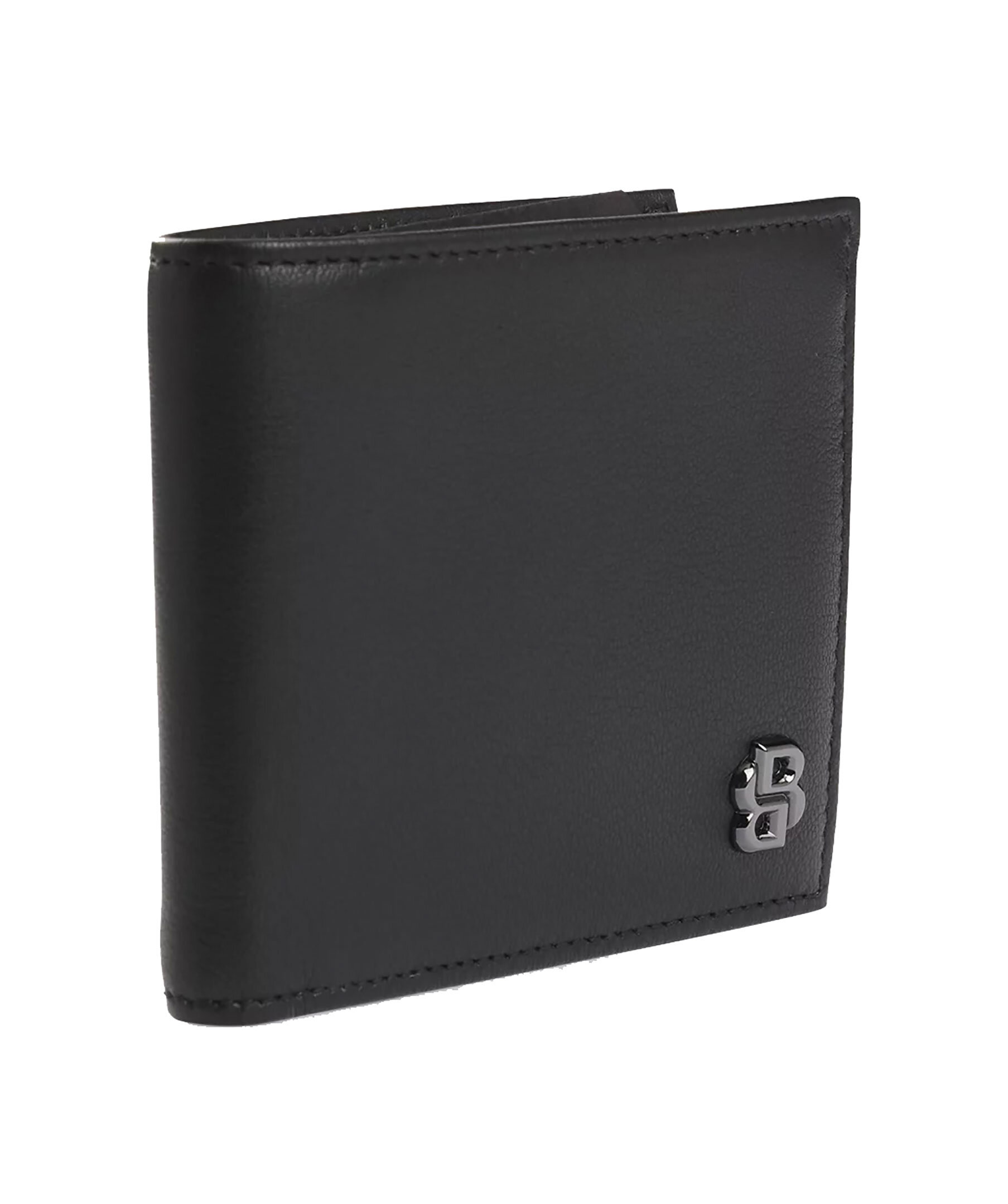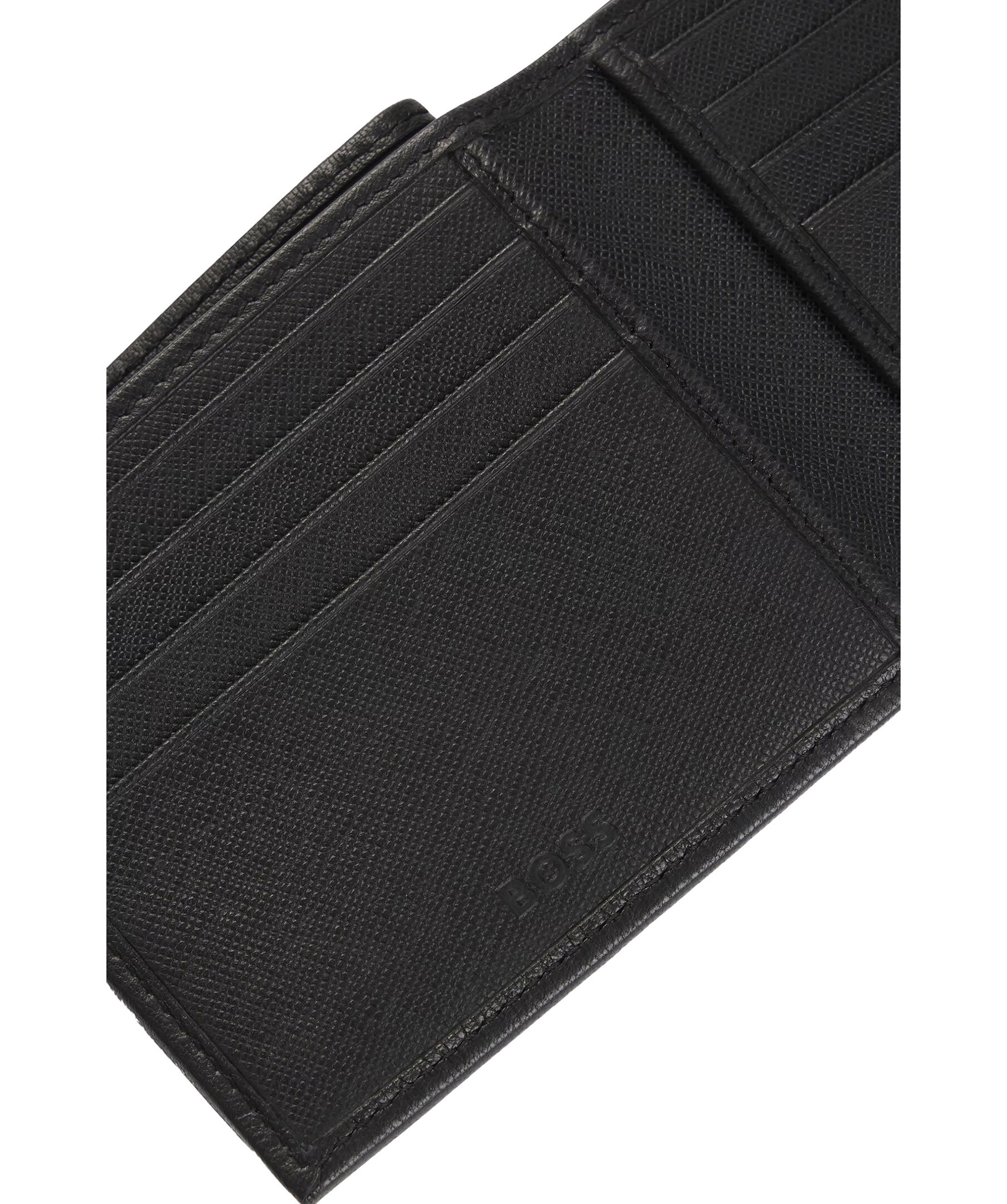 Svart plånbok i matt läder från BOSS Black. Plånboken har ett dubbelt B-monogram på framsidan, två sedelfack samt åtta kreditkortsplatser. Tillverkad i getläder. Mått. 11 x 9,5 x 1 cm.
