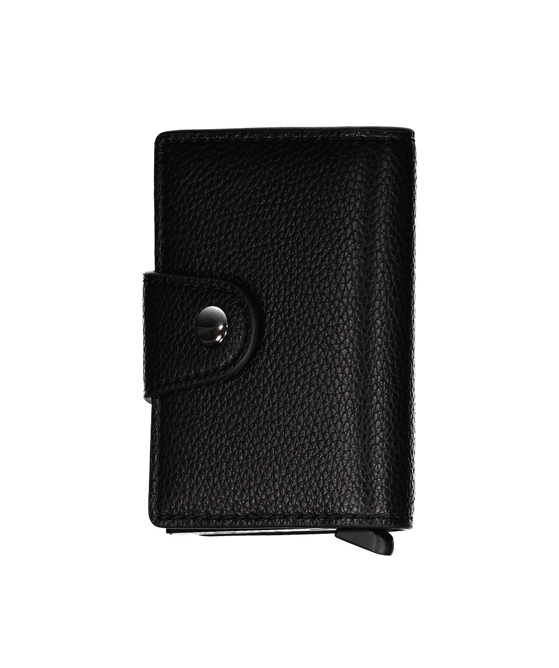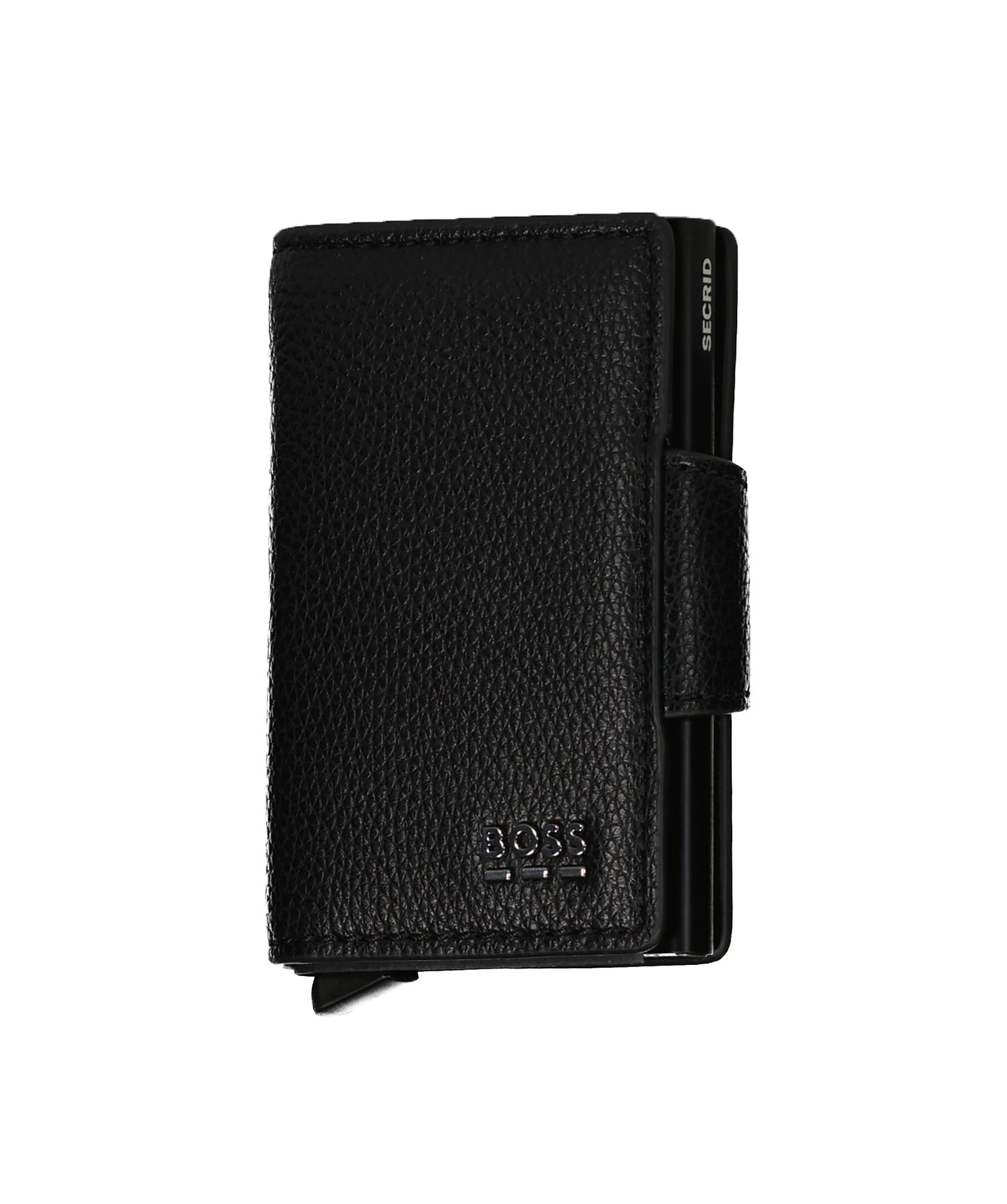Svart kortfodral från BOSS Black. Kombinerad plånbok och kortficka. Logotyp i metall på plånbokens framsida. Knäppning på plånbokens baksida. Tillverkad i läderimitation.