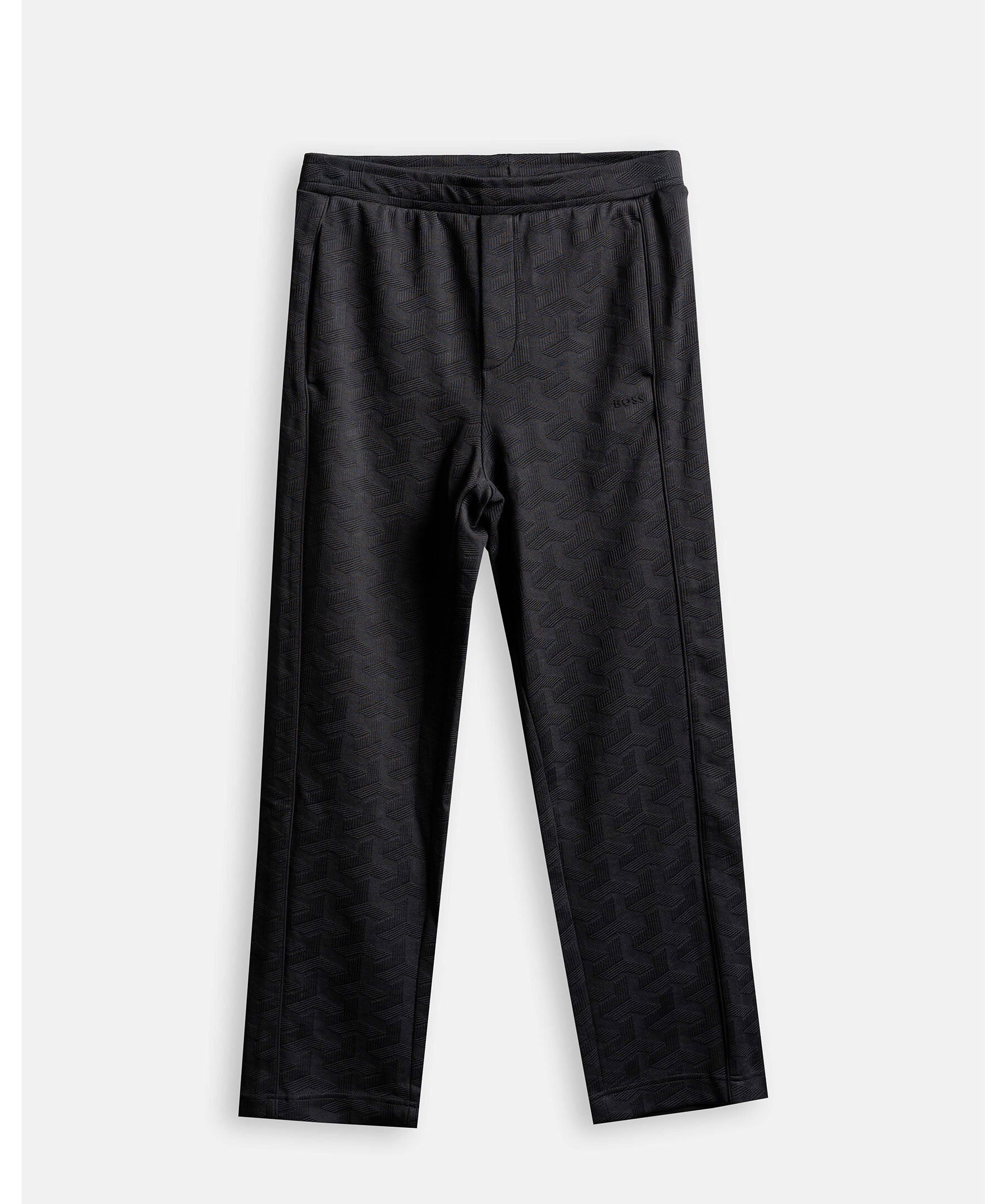 Svarta tracksuit-byxor från BOSS med quiltat jacquard-mönster. Snedställda fickor fram och ton-i-ton logga på vänster sida. Ficka med blixtlås på baksidan.