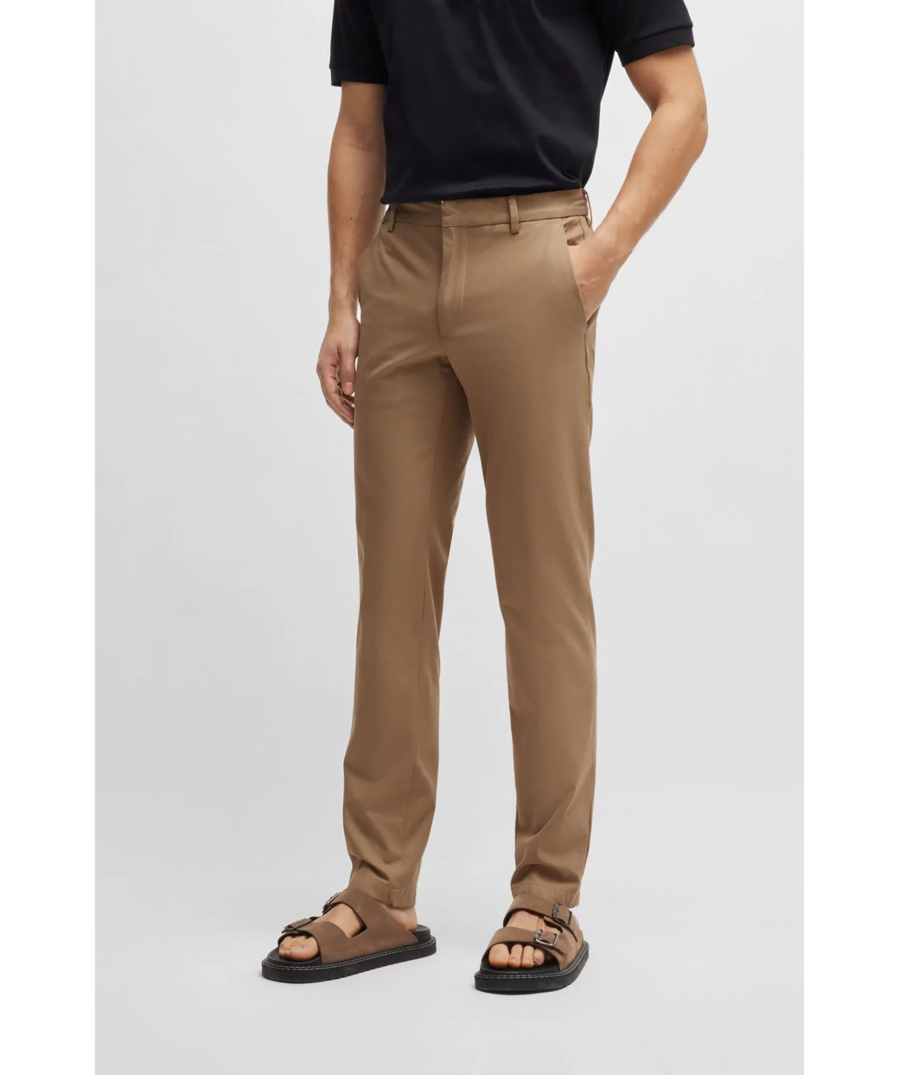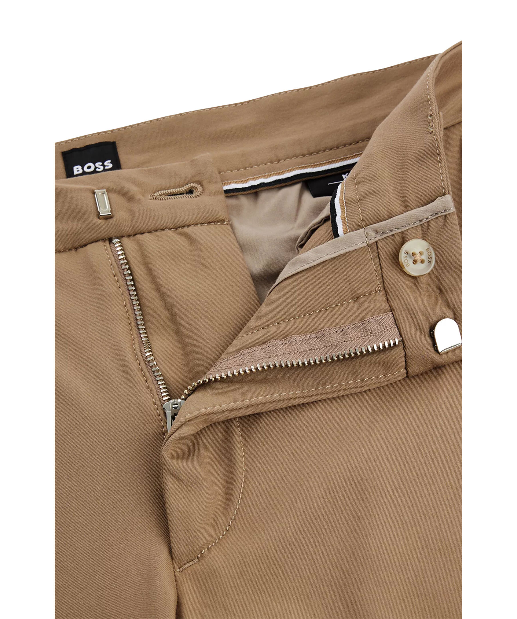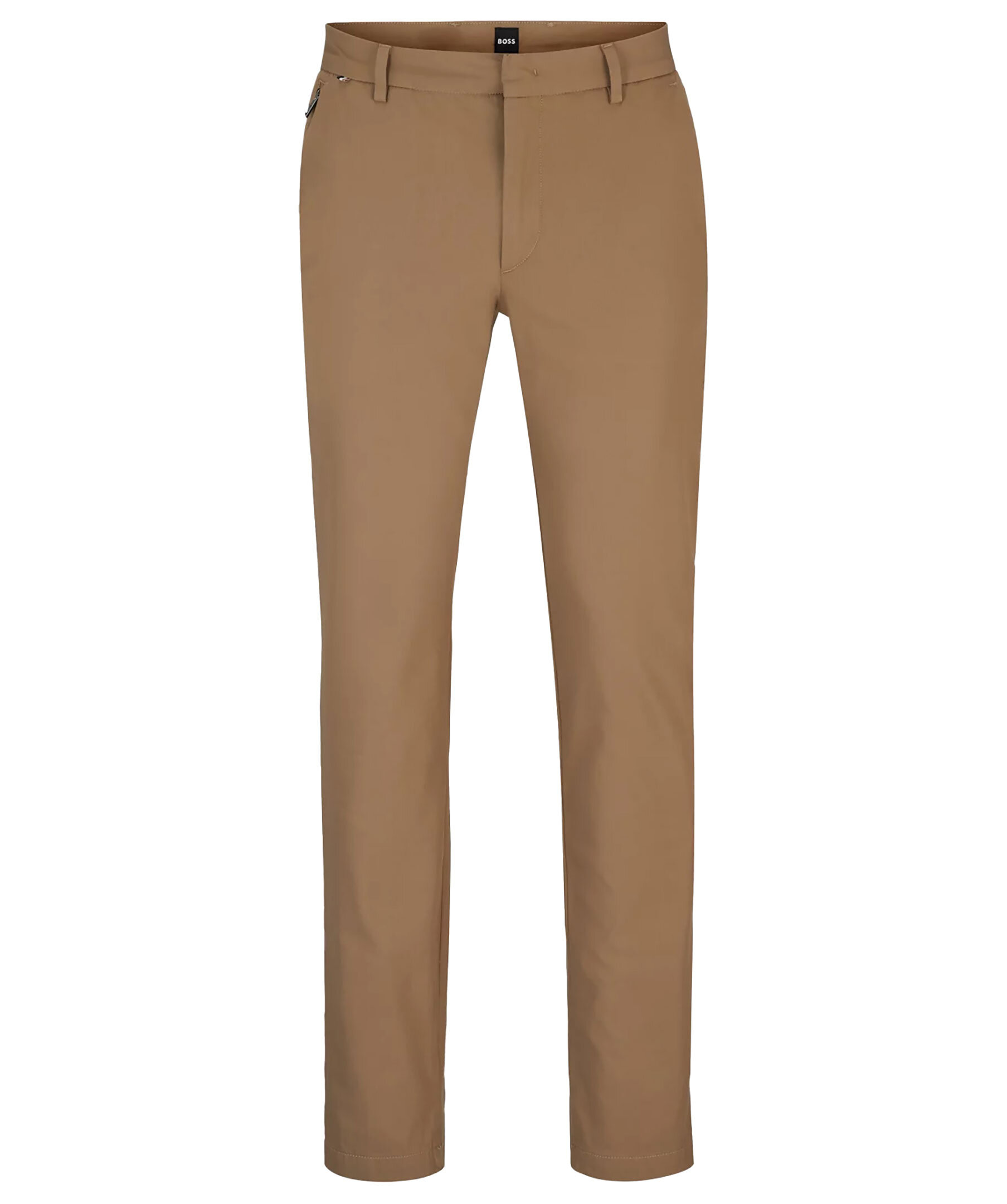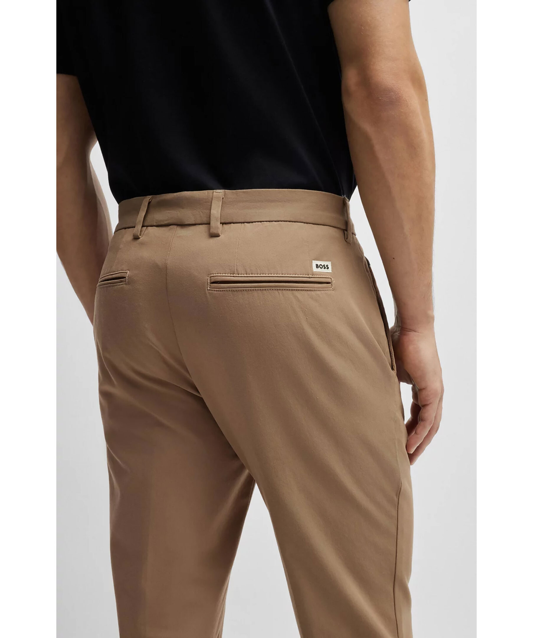 Beiga chinos från BOSS Black. Tillverkade av en bekväm stretchblandning. Defined fit med normalhög midja. Slim fit modell. Modellen är en storlek 48 och är 189 cm lång med en, 92 cm byst, 73 cm midja och 80 cm höft.