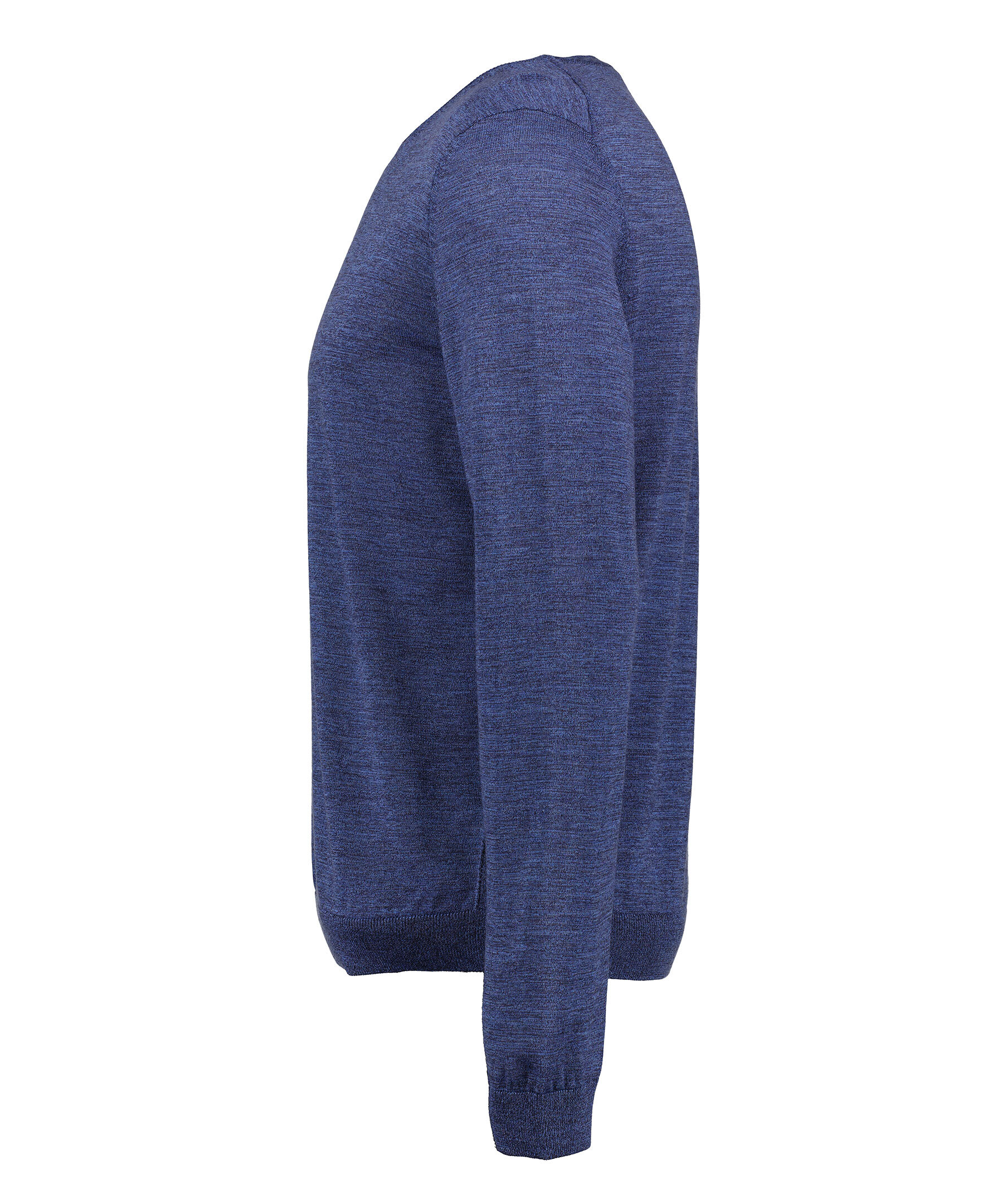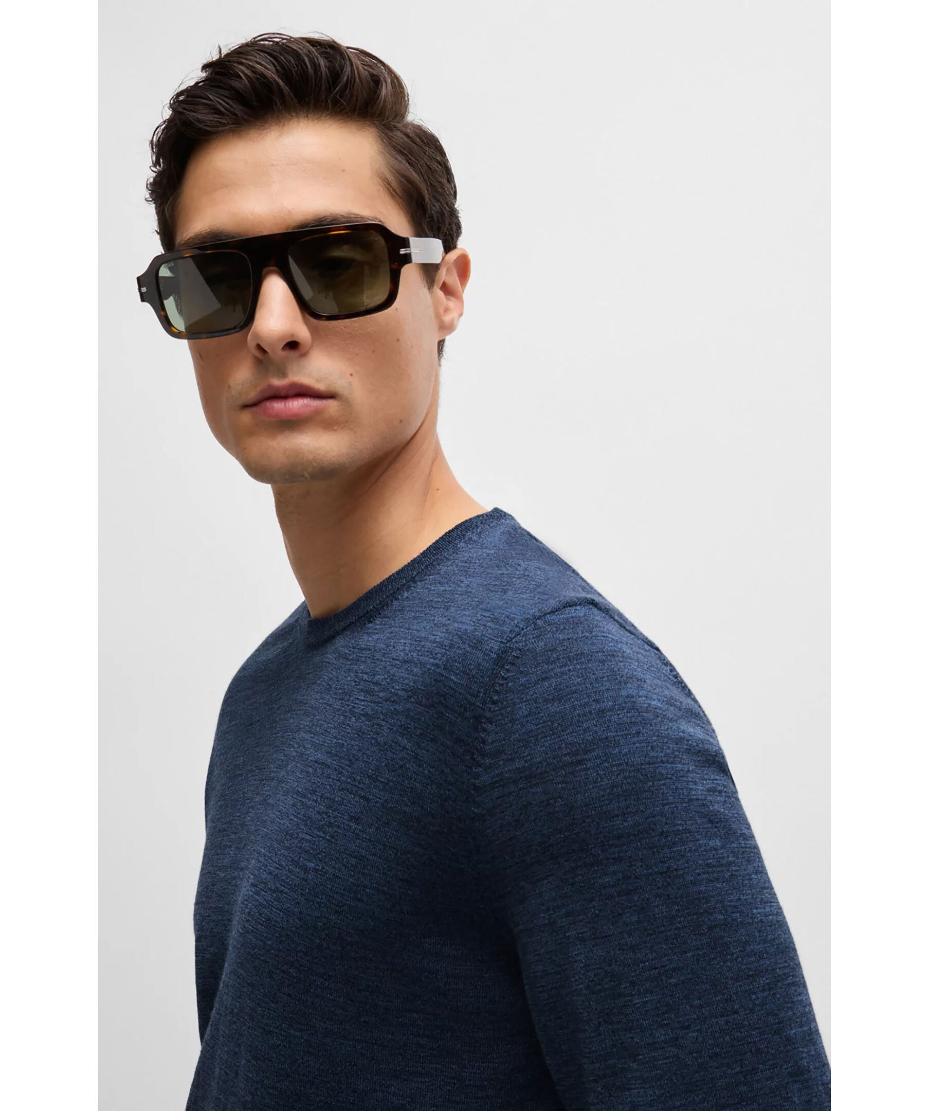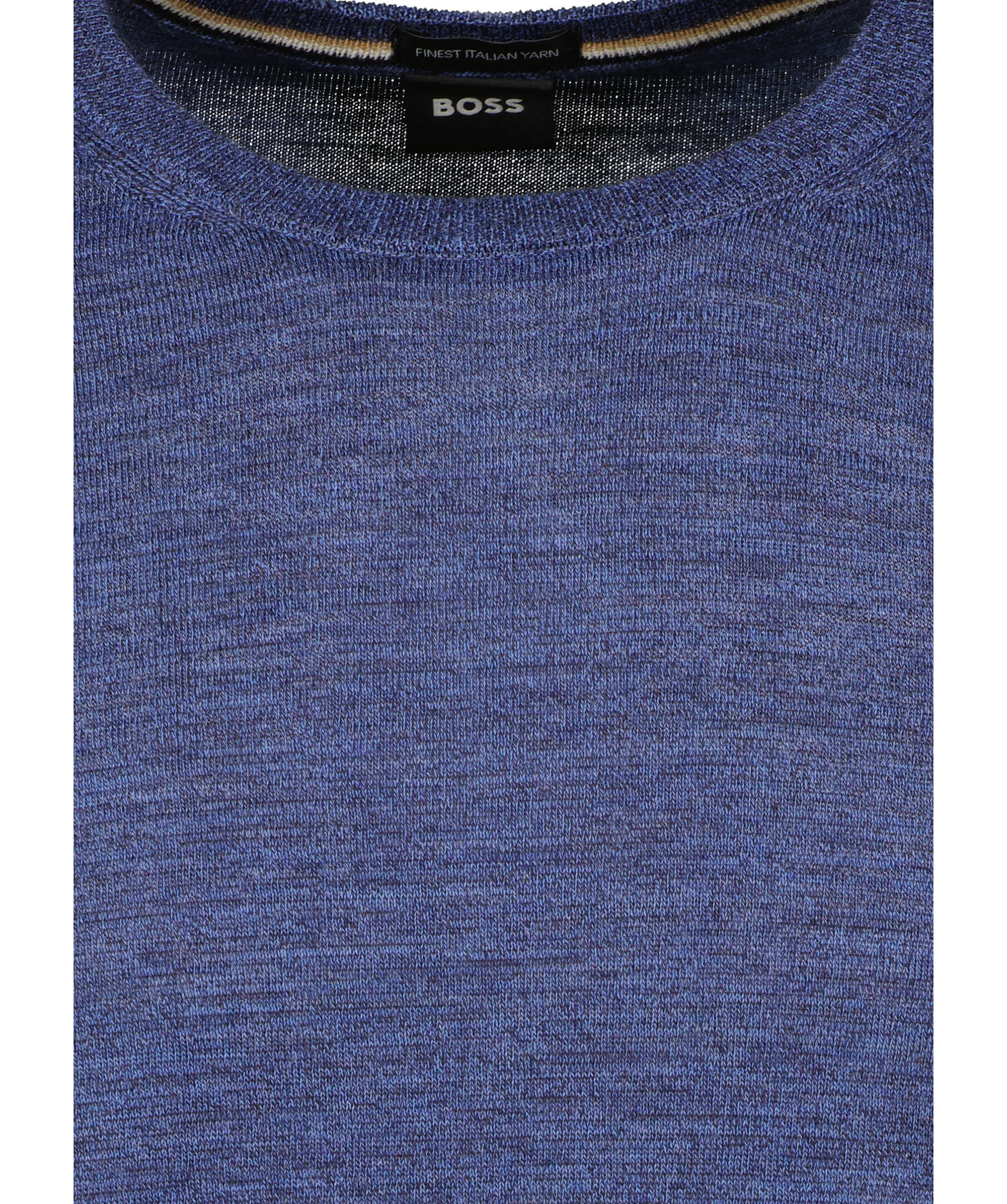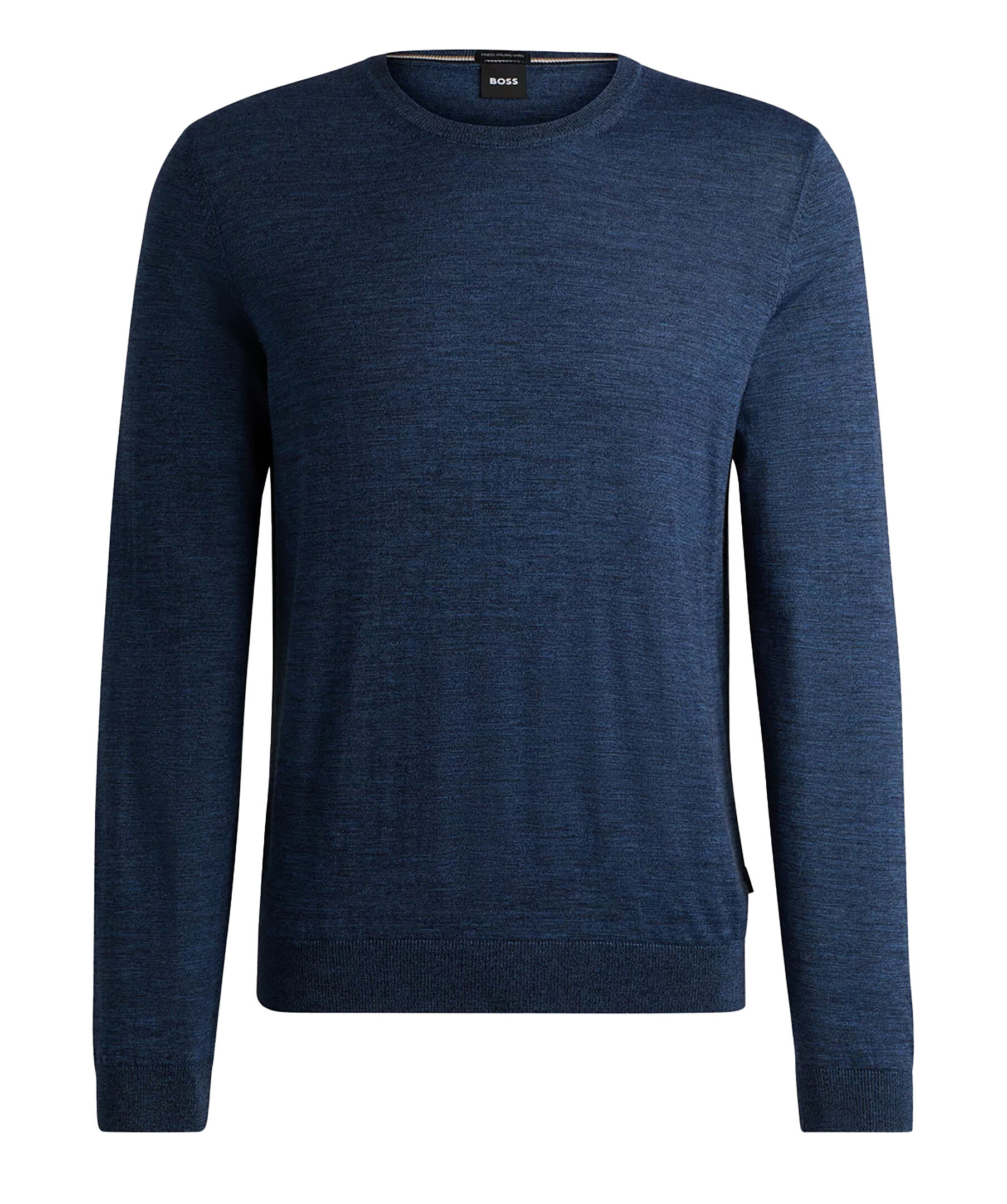 Blå finstickad tröja från BOSS Black. Slim-fit passform och gjord i fint ulltyg. Ribbade muddar. Modellen är en storlek M och är 186 cm lång med en, 92 cm byst, 76 cm midja och 87 cm höft.