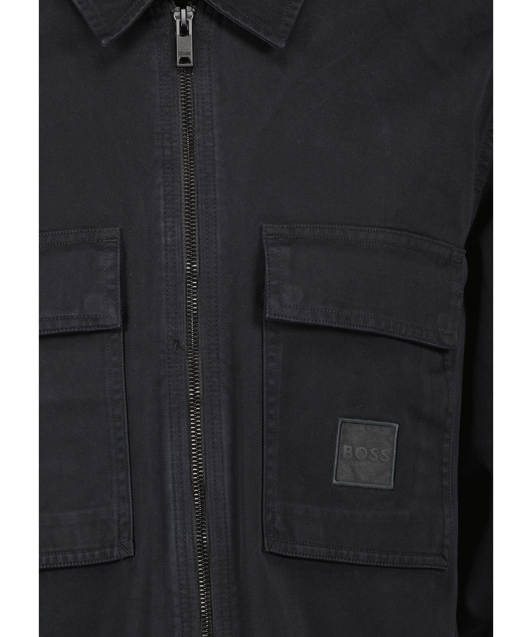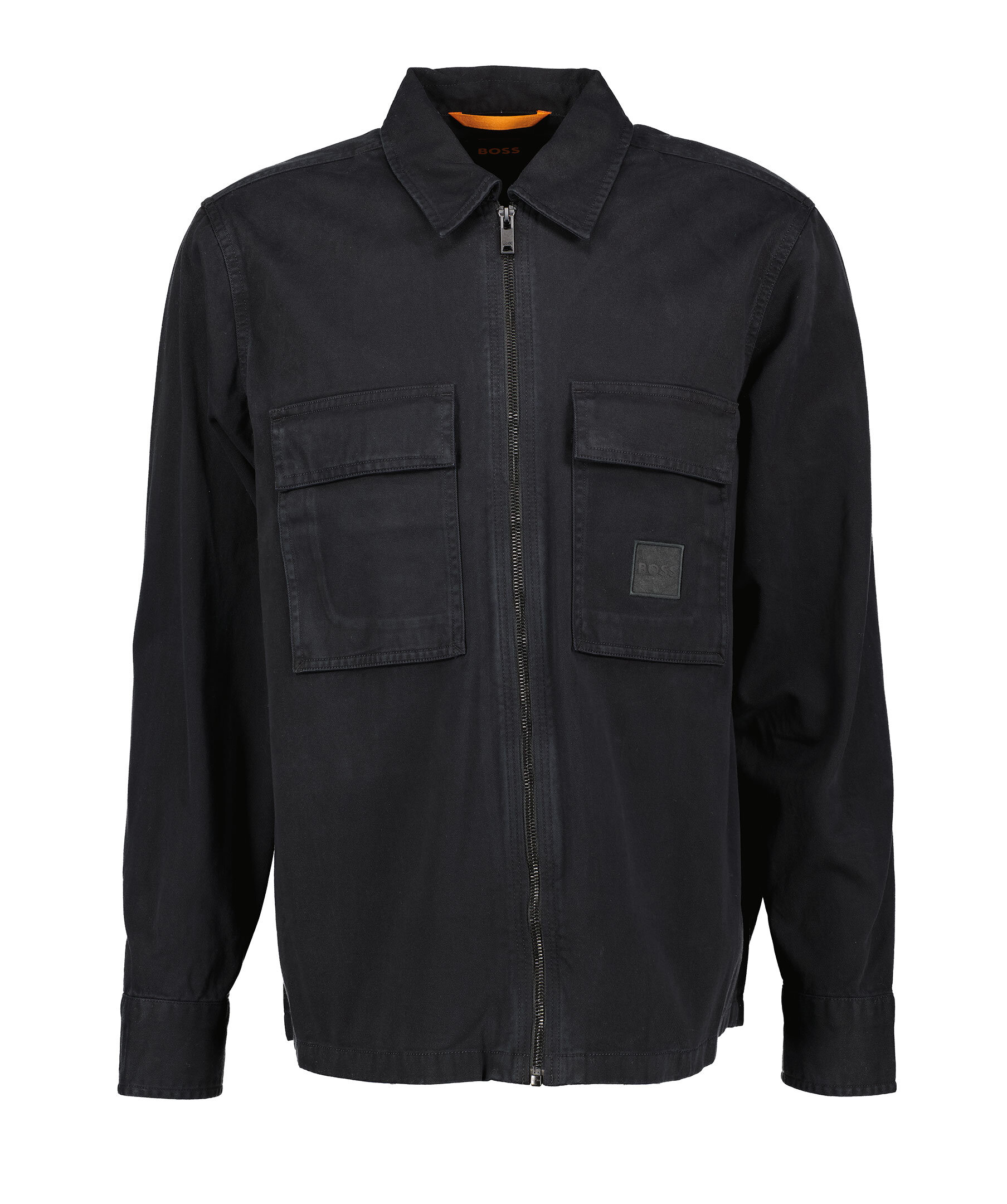 Svart overshirt från Boss Orange. Overshirten stängs med dragkedja, har två bröstfickor med lock och tryckknappar. Broderad logotyp på vänster bröstficka. Tillverkad i 100% bomull.