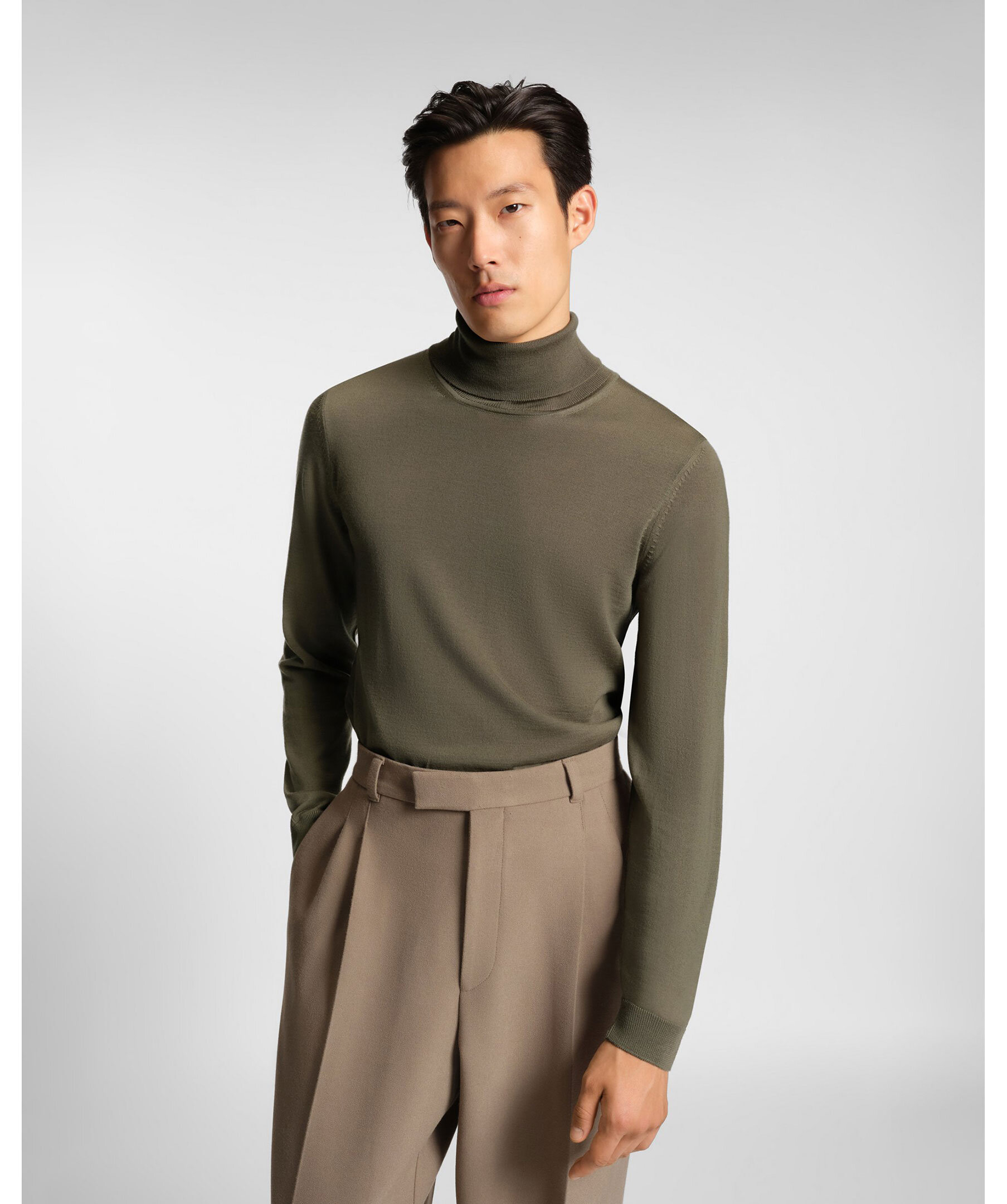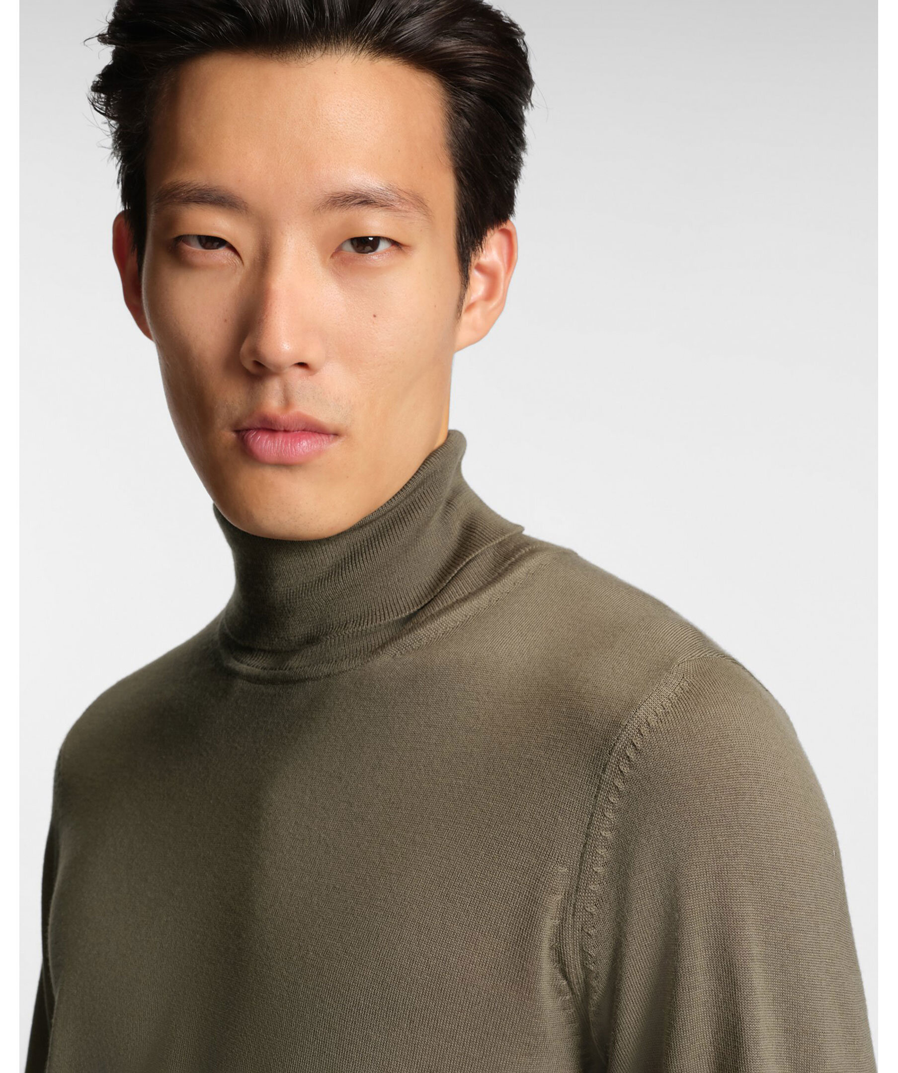 Brun finstickad polotröja i mjuk ull från BOSS Black. Tröjan har extra långa ärmar.