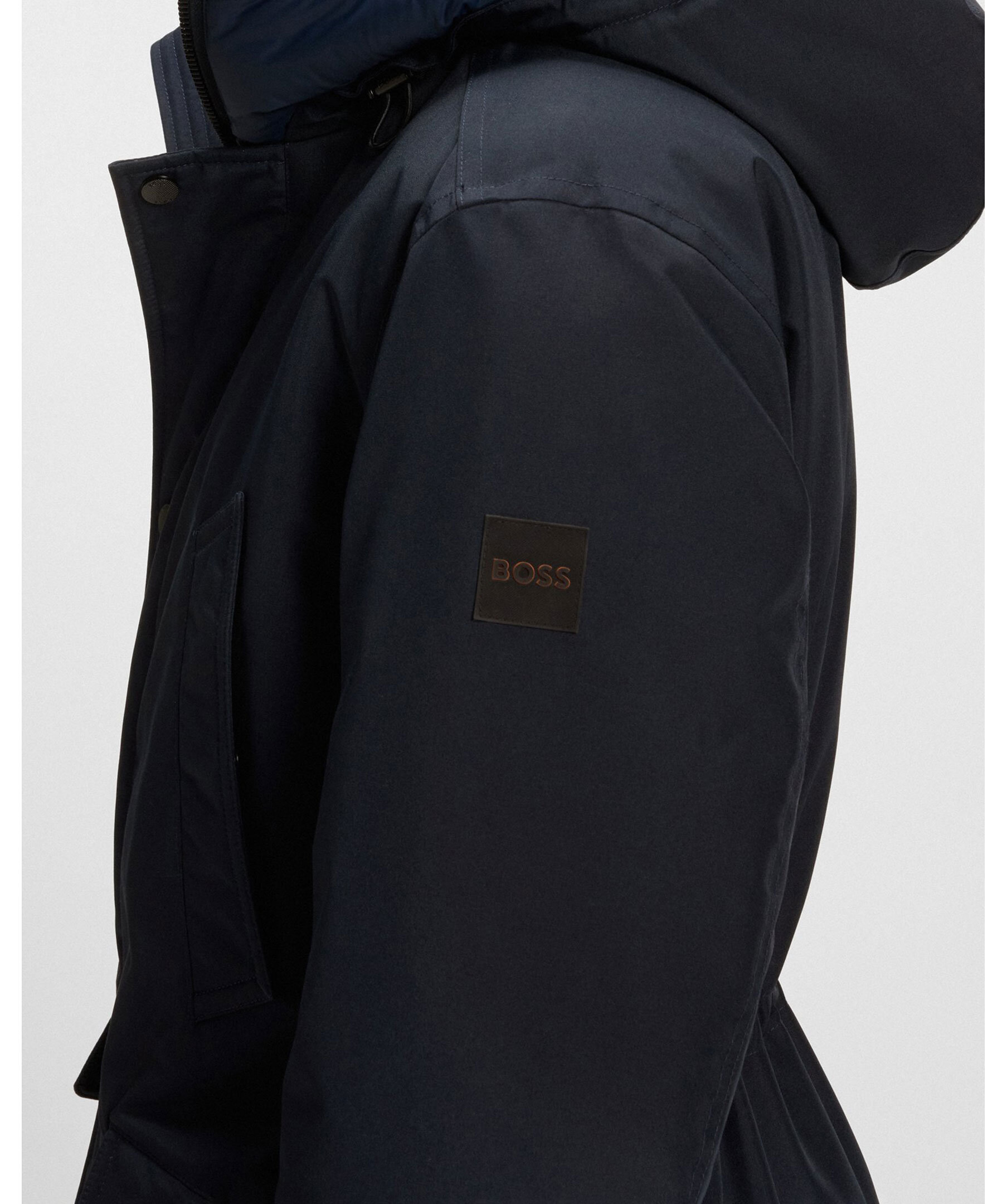 Vattenavstötande jacka från BOSS Orange. Gjord i en avslappnad passform och har ett mjukt, värmande foder i polyester - perfekt för kalla dagar. Jackan har kontrasterande material vid kragen som ger en stilfull detalj.