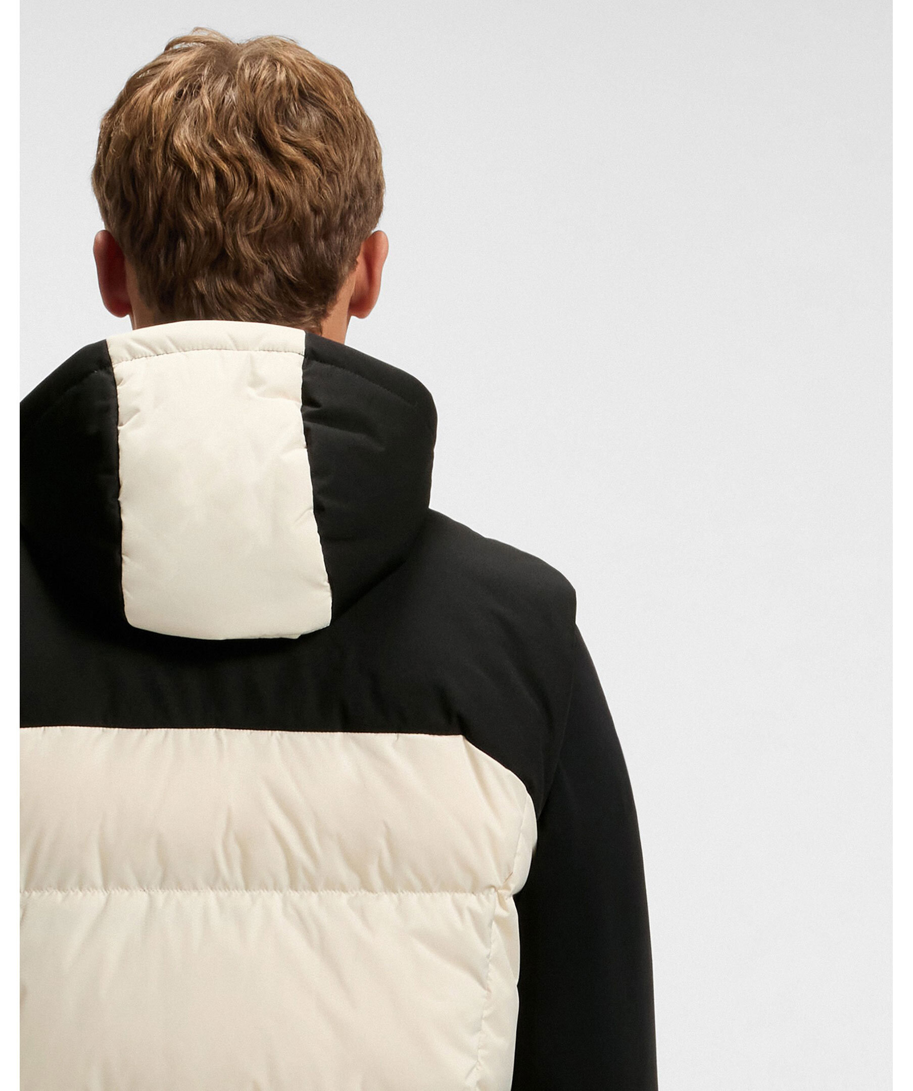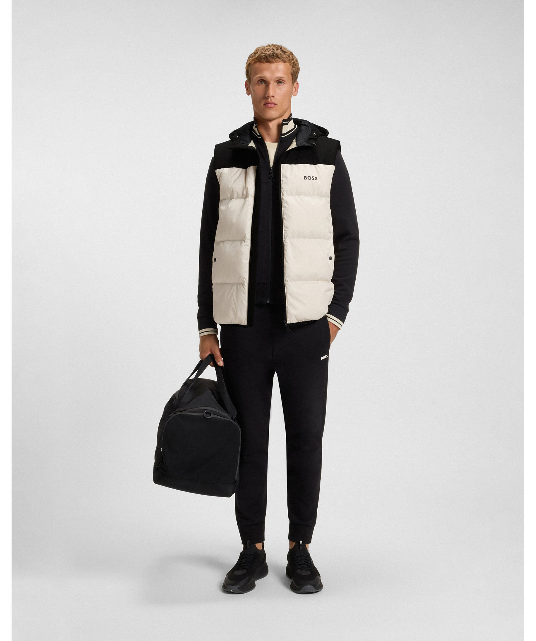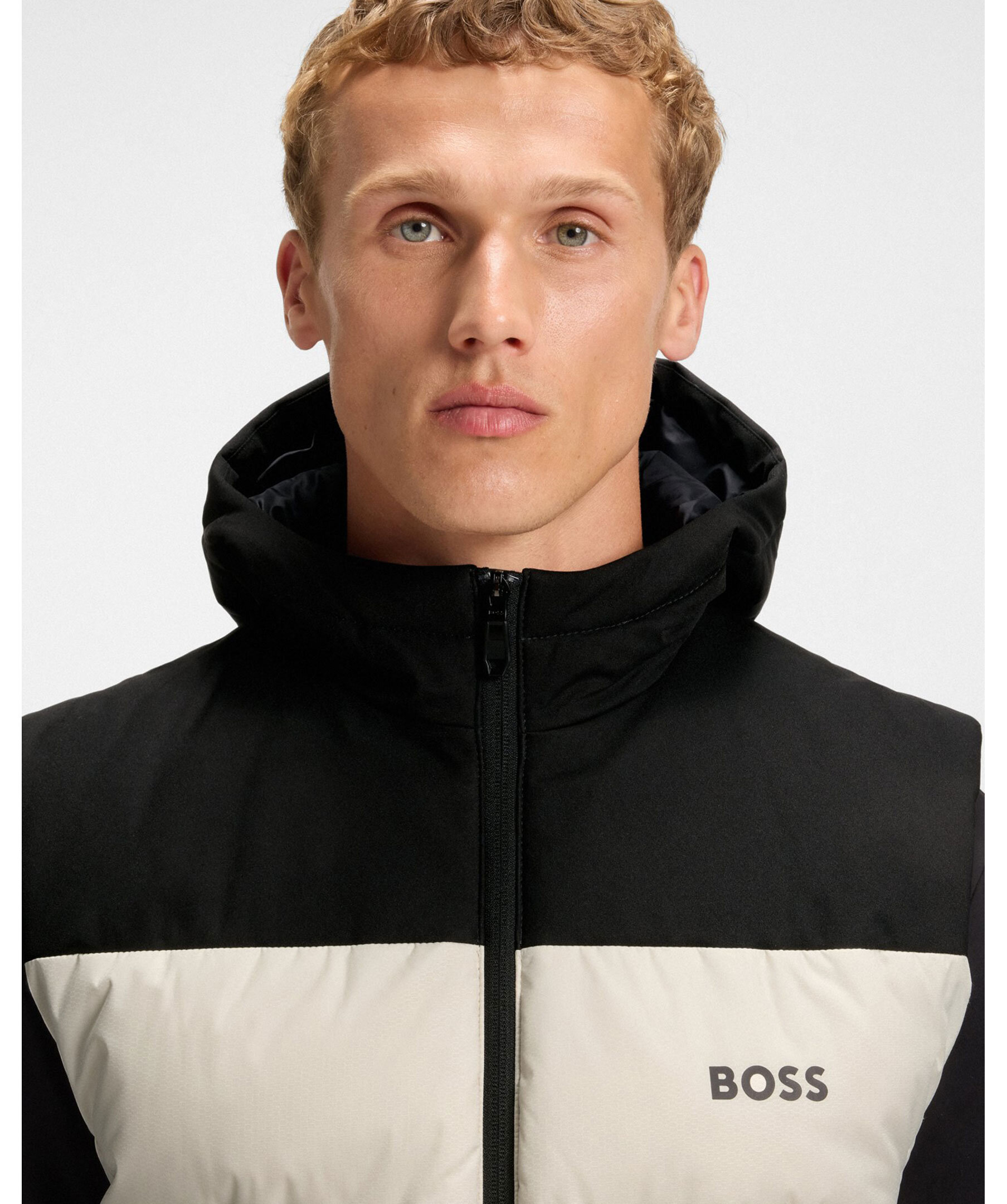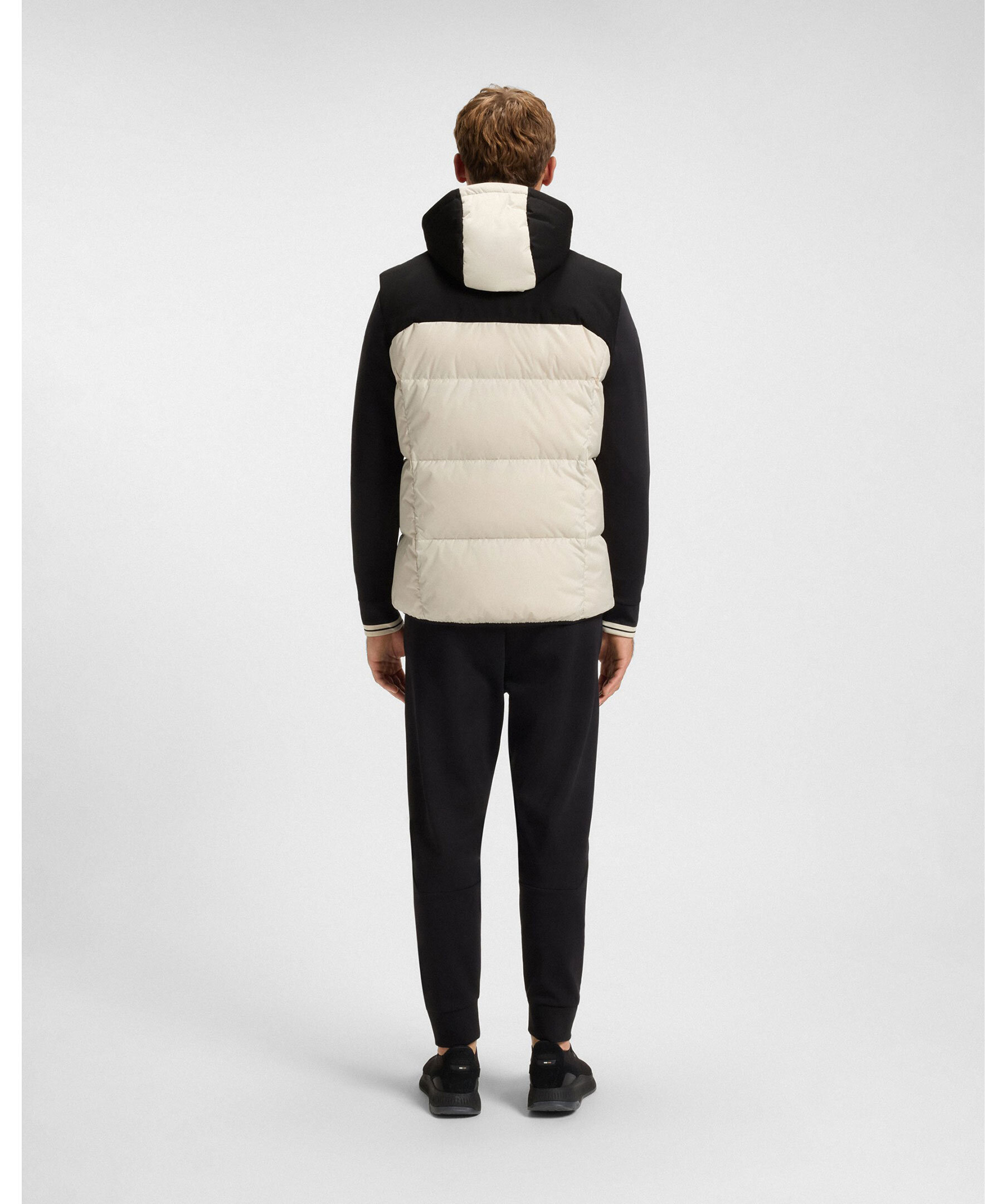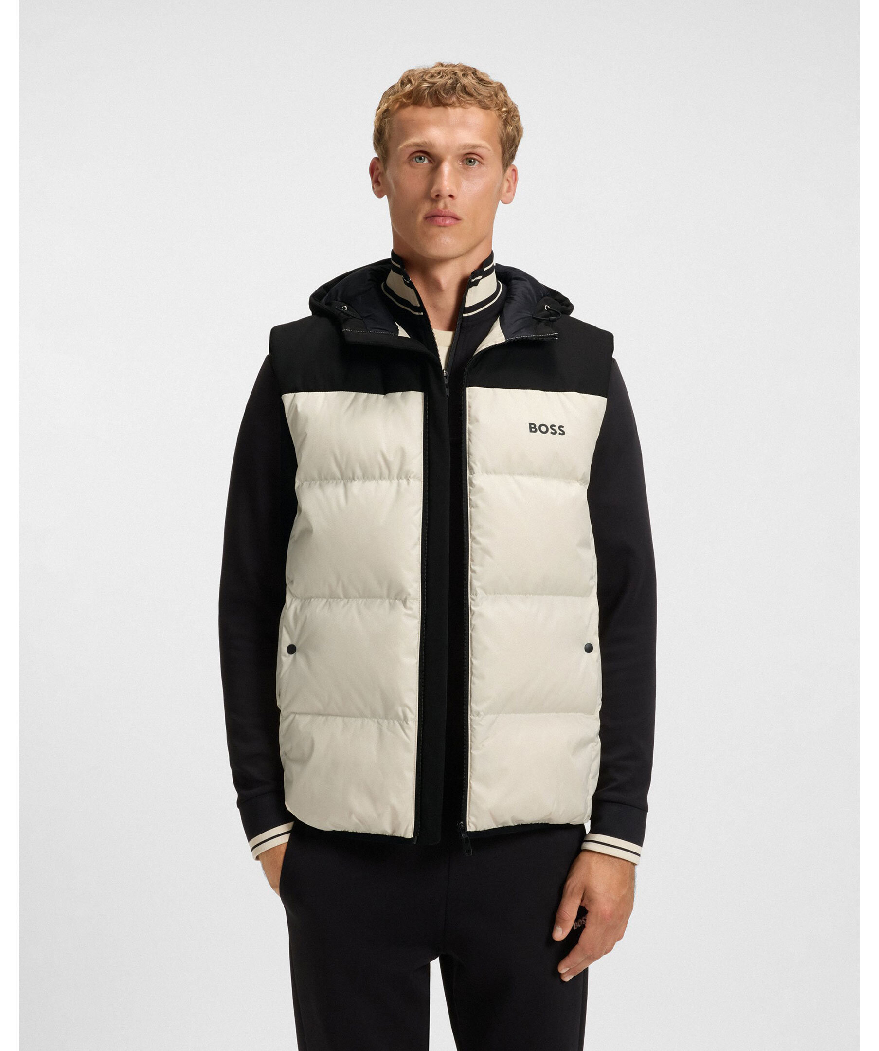 En vattenavstötande väst från BOSS. Ett mysigt lager för kalla dagar med justerbar huva och elastisk fåll. Stoppning av certifierade ankdun och -fjädrar.
