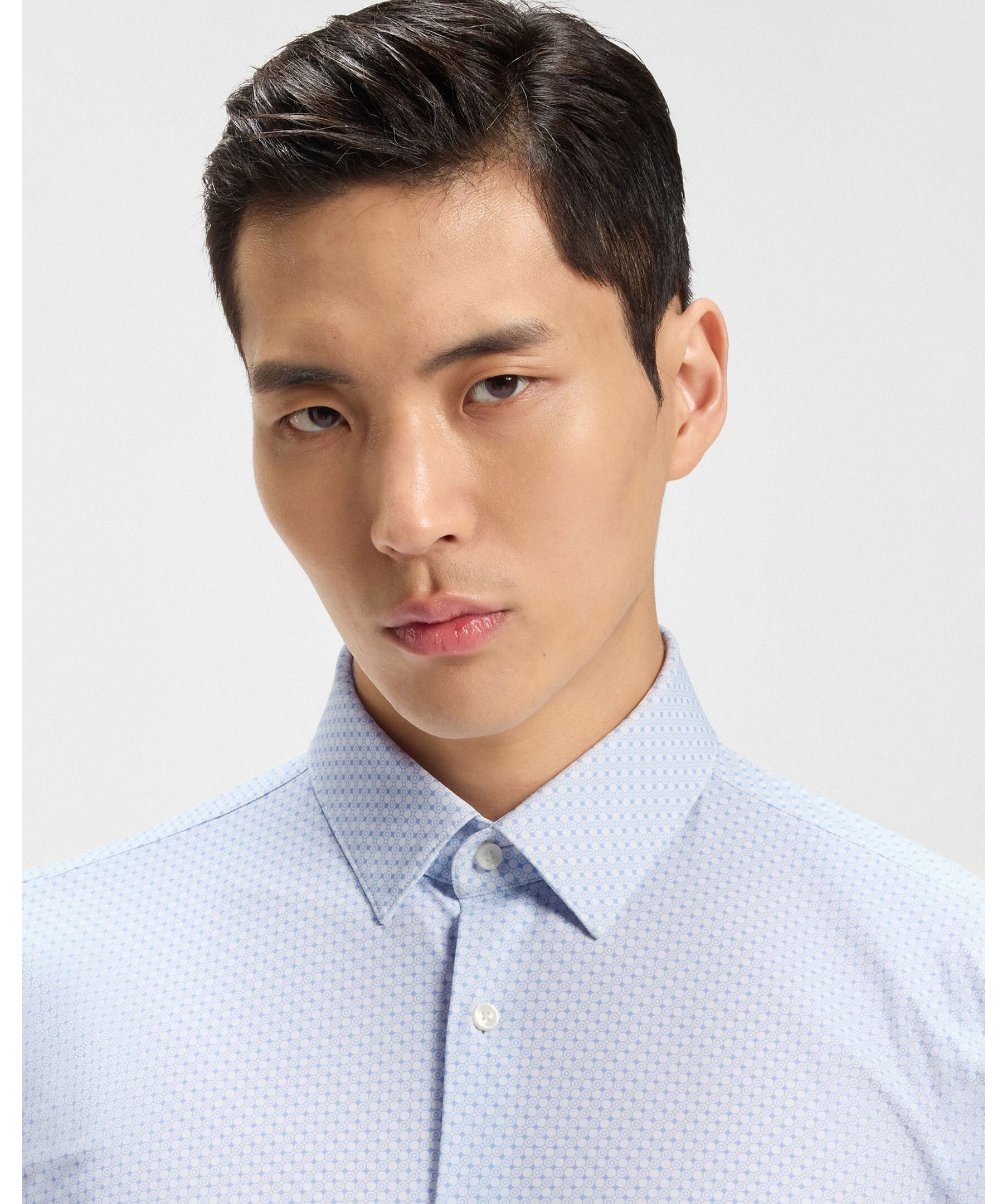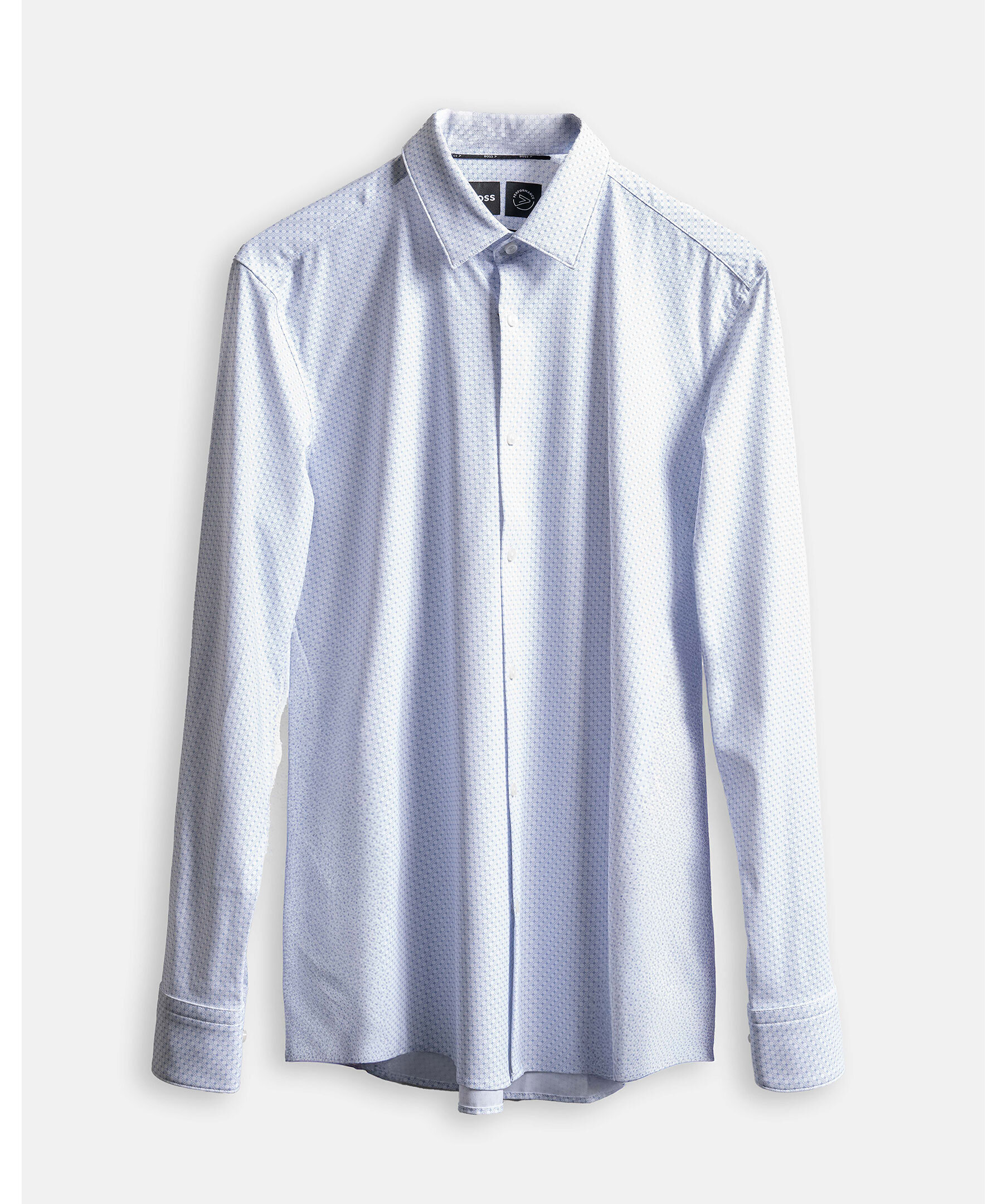 Business-skjorta från BOSS BLACK i superflexibel jersey för komfort och rörelsefrihet. Stilren clean fit. Modernt tryck.