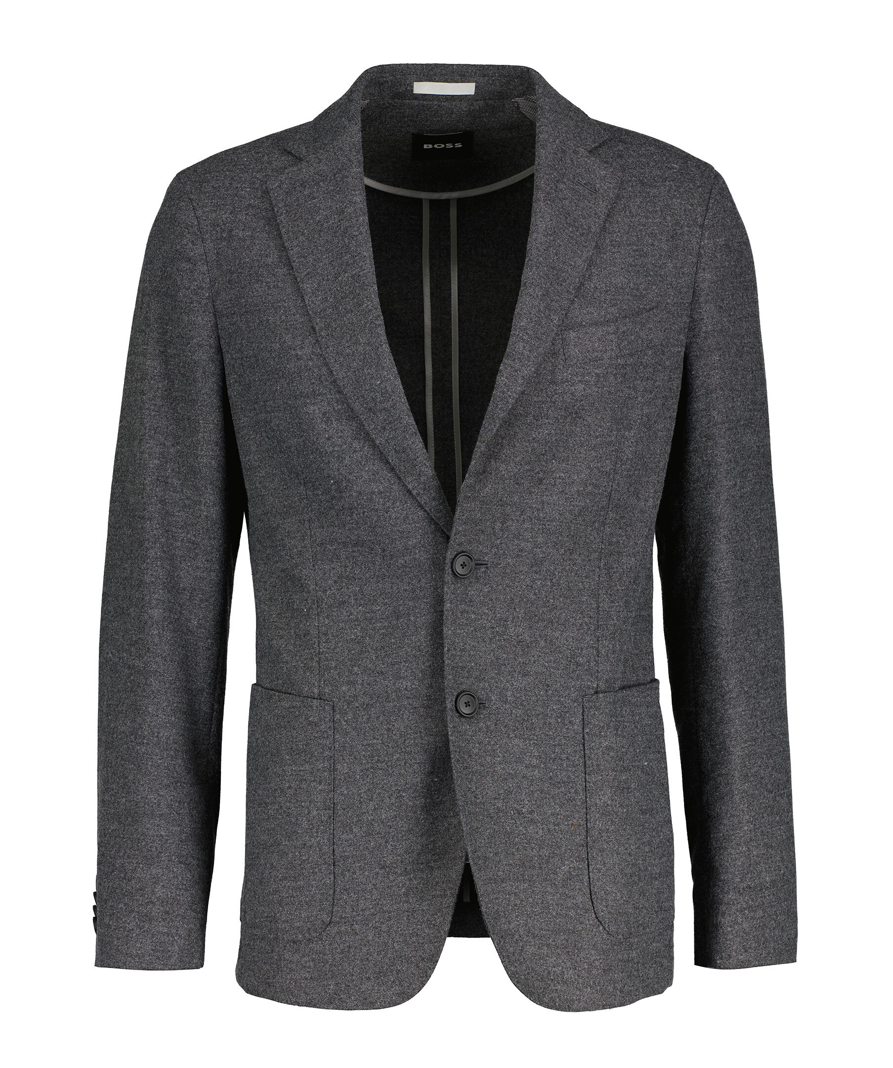 Mörkgrå kavaj från BOSS Black. Stängs med två knappar framtill och har två påsydda fickor samt en passpoalfickor på bröstet. Tillverkad i en ullblandning.