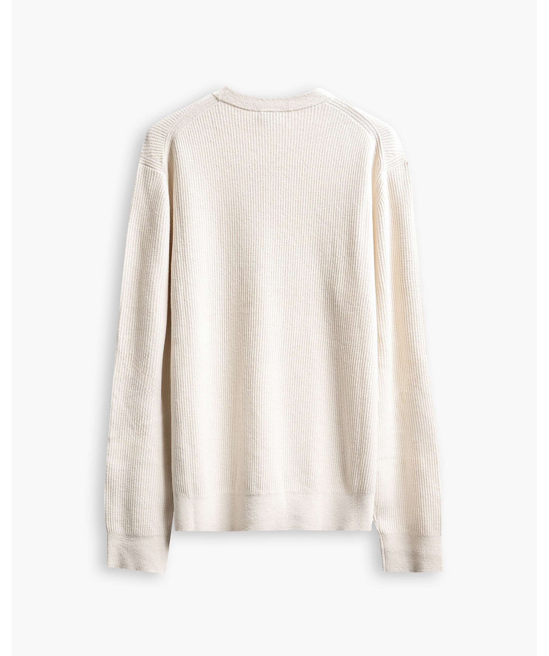 Vit tröja från Boss i en modern manchester-ribbning som uppdaterar din lager-på-lager-look för säsongen. Tröjan har en ledig regular fit med rund hals och ribbade manschetter. Tillverkad i en blandning av viskos, polyamid (35% återvunnet) och elastan för en mjuk och bekväm känsla. Perfekt för både vardag och avslappnade tillfällen.