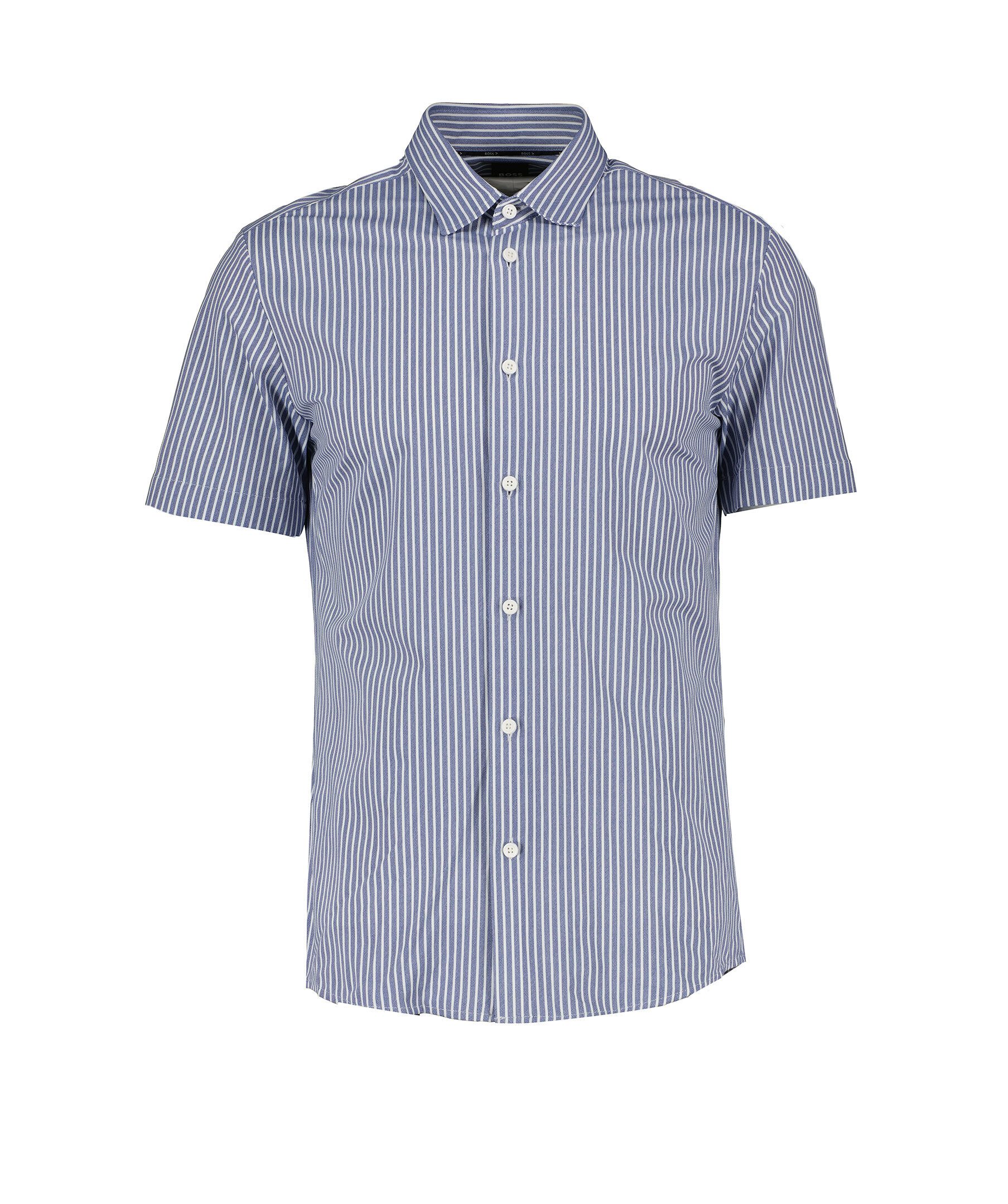 Blårandig, kortärmad skjorta från BOSS Black. Skjortan är superstretchig och stängs med knappar framtill och har justerbara mansachetter. Tillverkad i polyamidblandning.