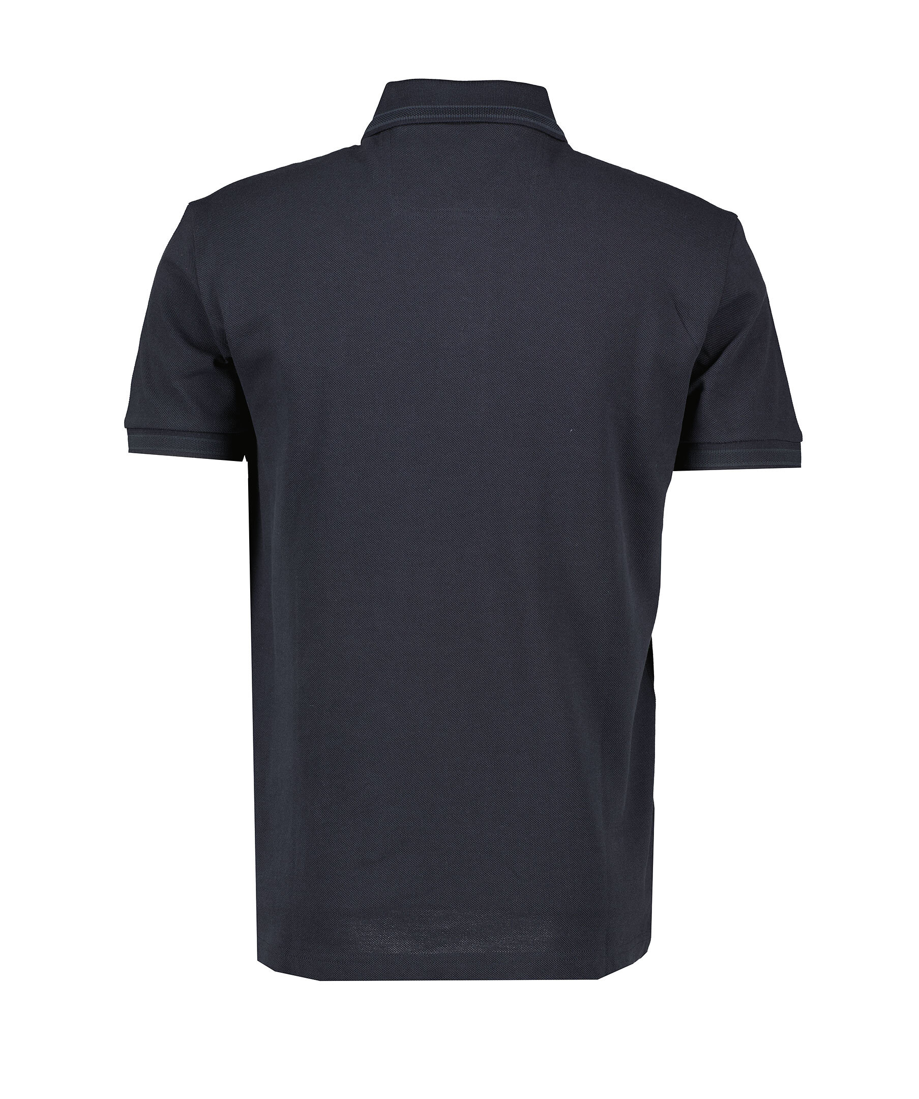 Mörkblå, kortärmad pikétröja från BOSS Green. Pikén har tre knappar framtill, sportiga, subtila ränder vid kragen och ärmslut. Tillverkad i bomull.