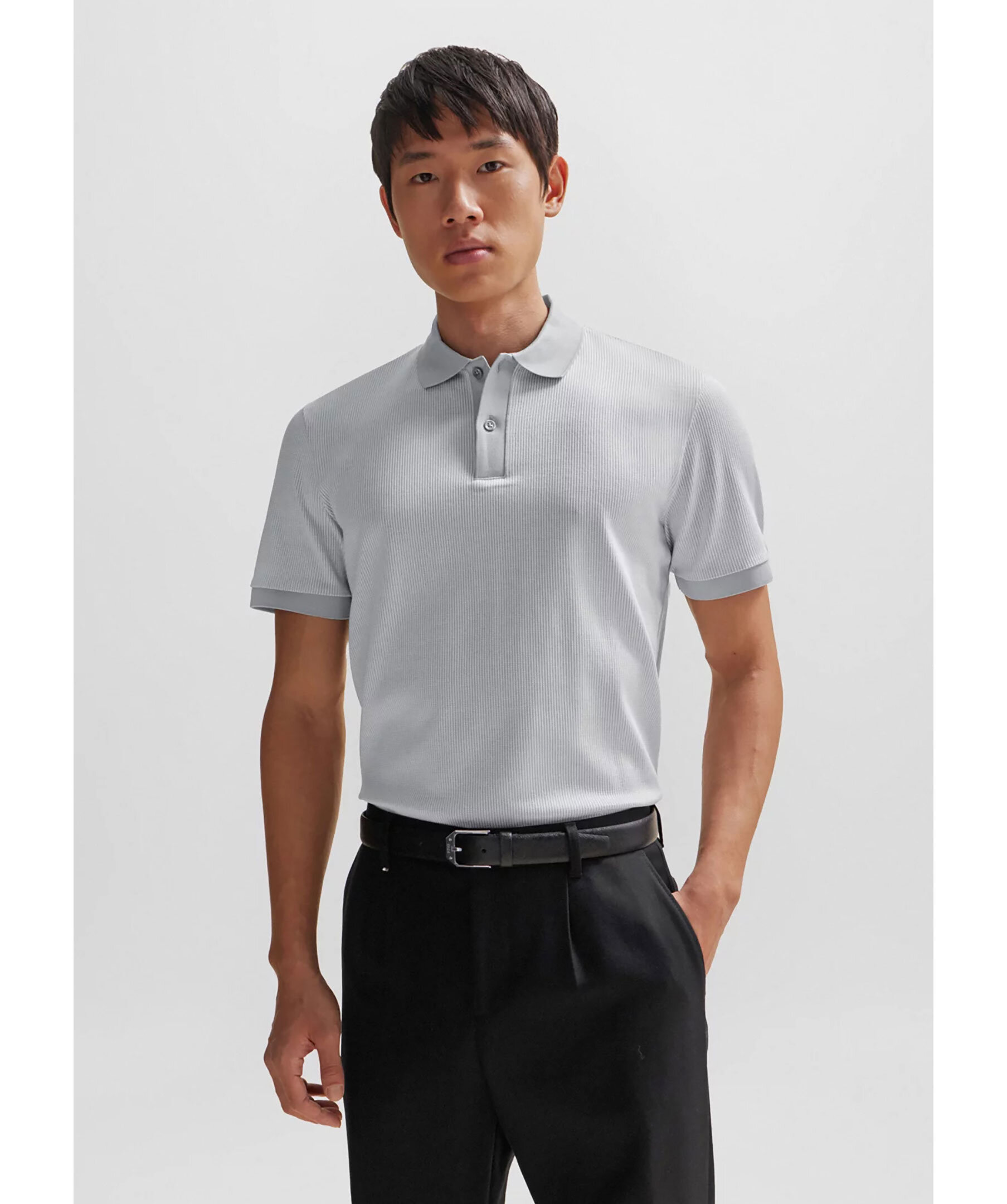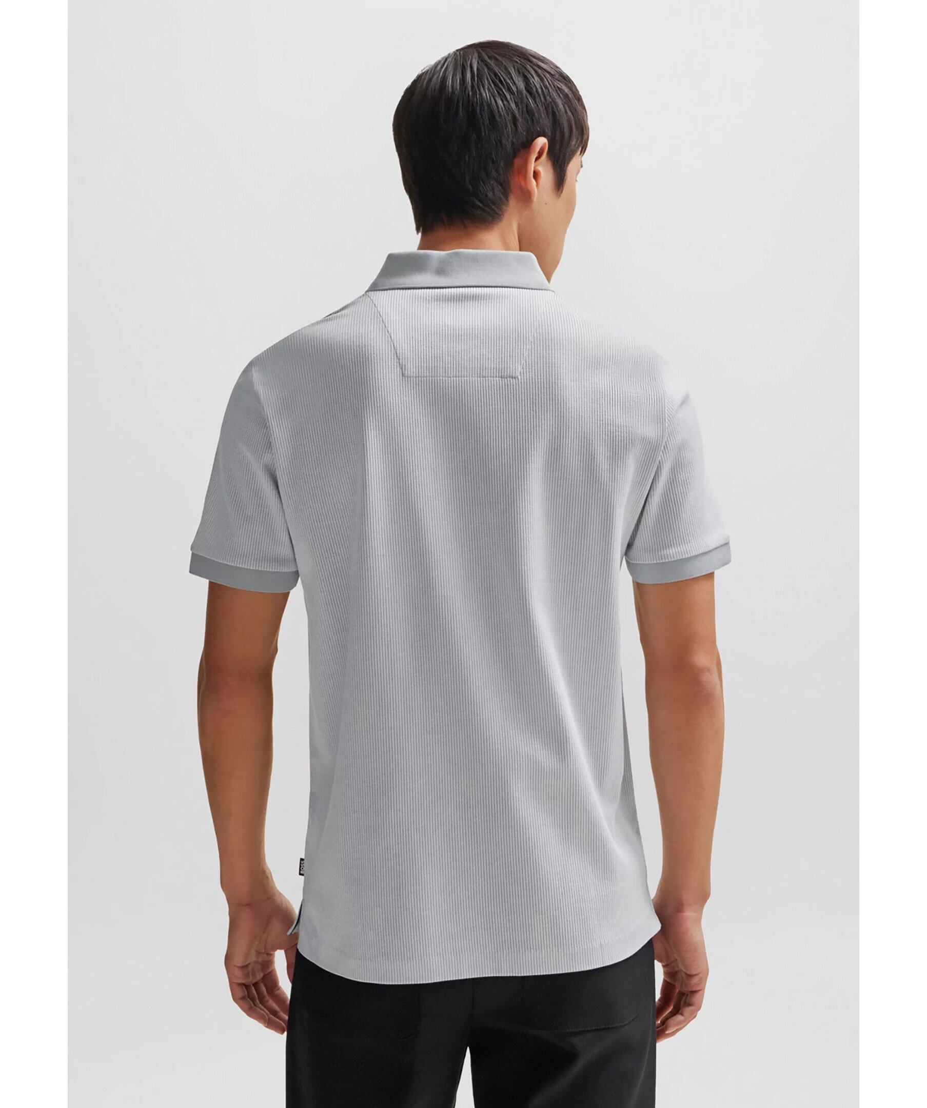 Grå pikétröja från BOSS Black. Denna pikétröja har en merceriserad finish för ökad mjukhet och är tillverkad i 100 % bomull med en rik struktur. Plattstickade detaljer ger subtil kontrast till denna topp. Knappslå med tre knappar. Normal passform.