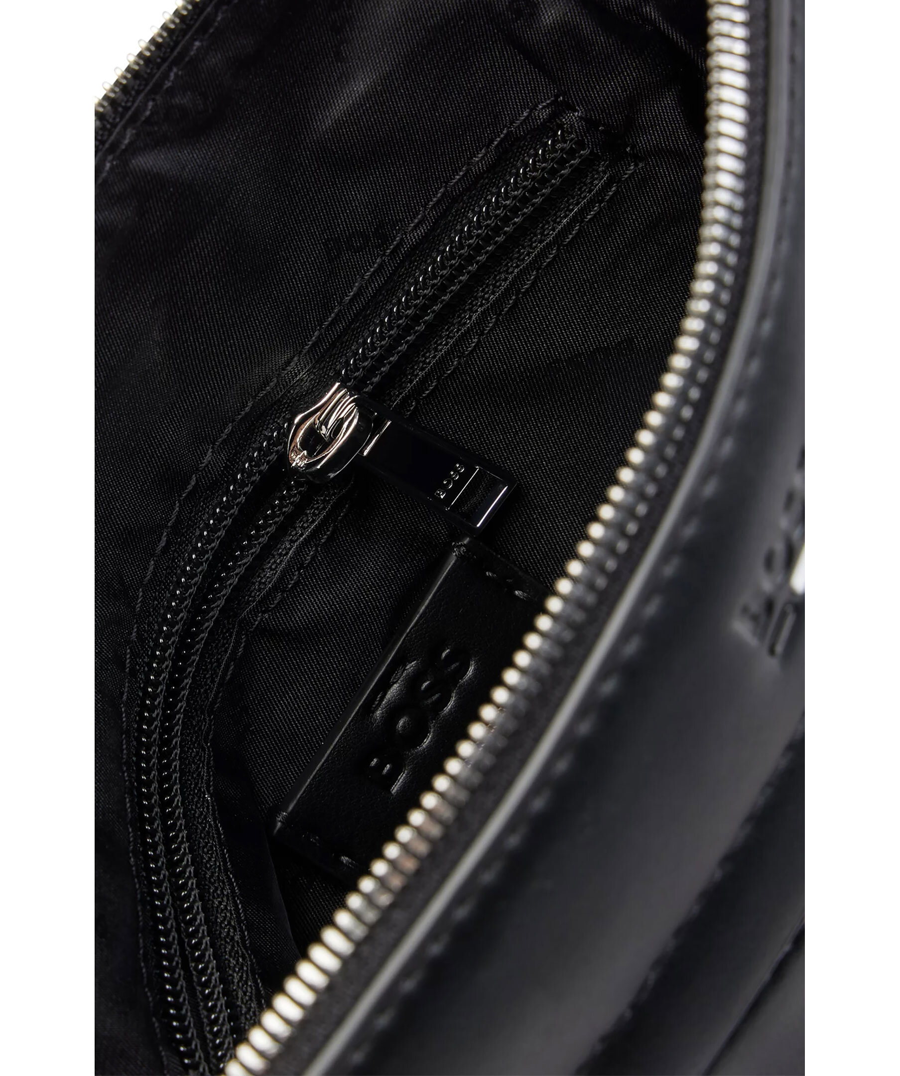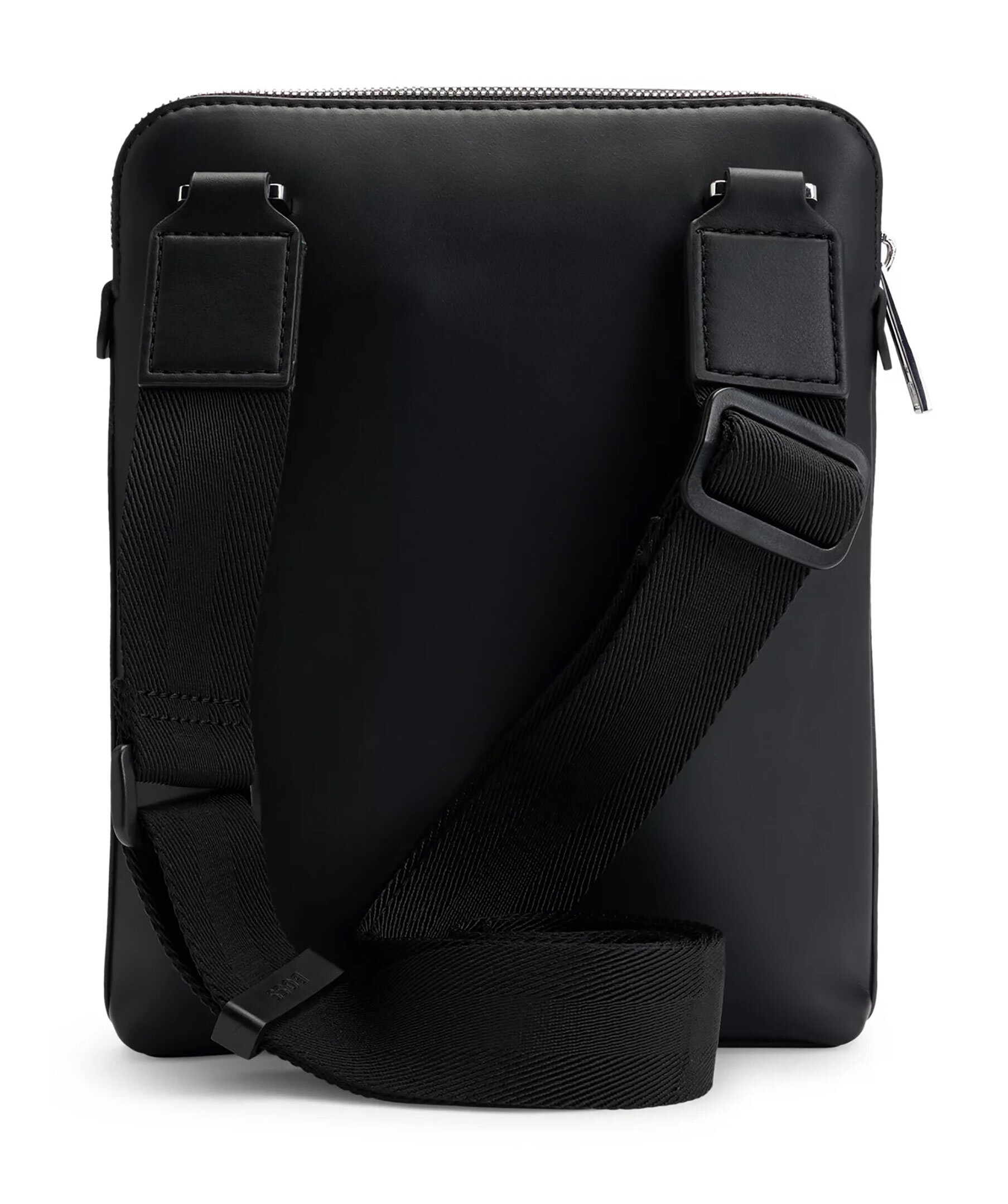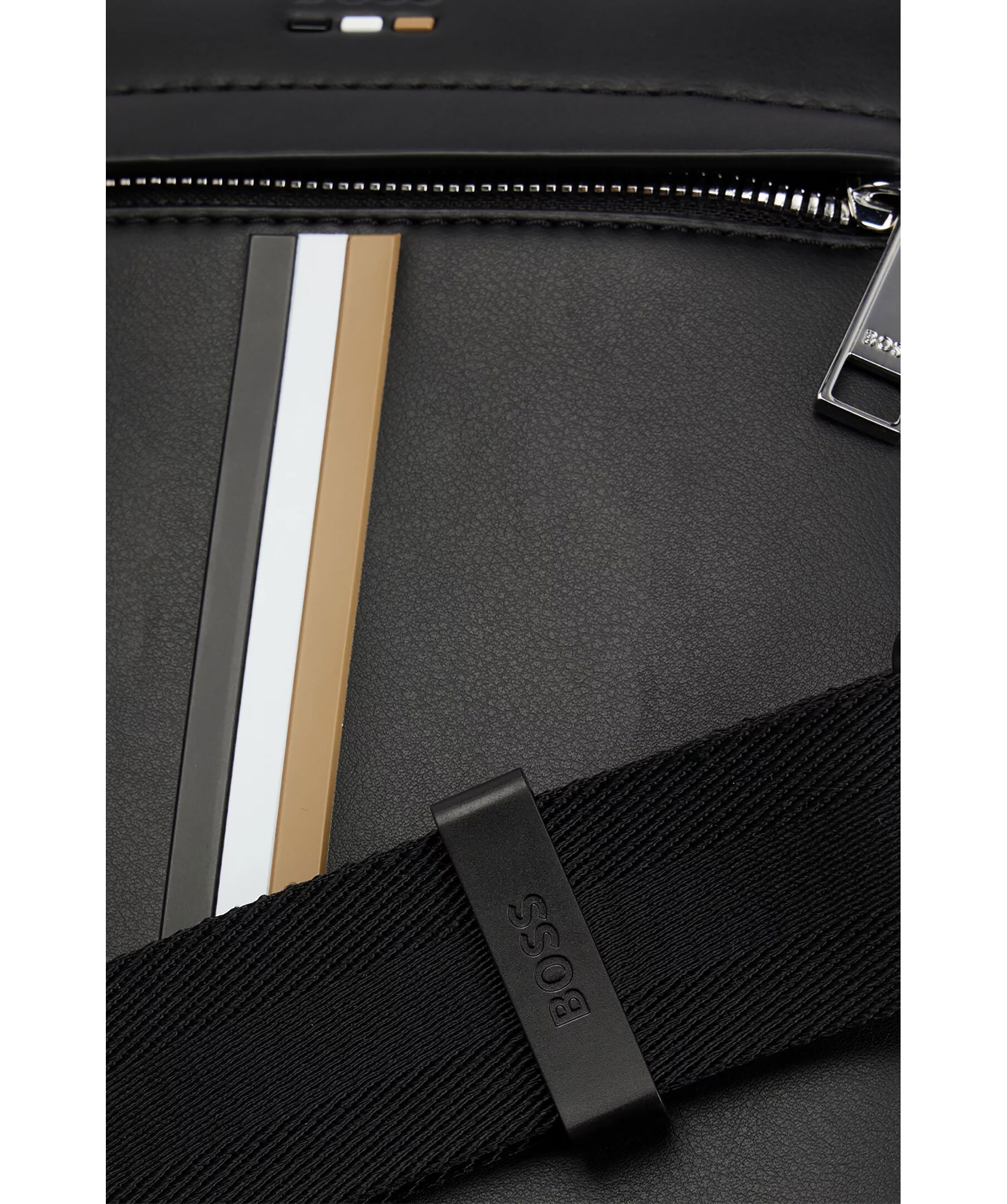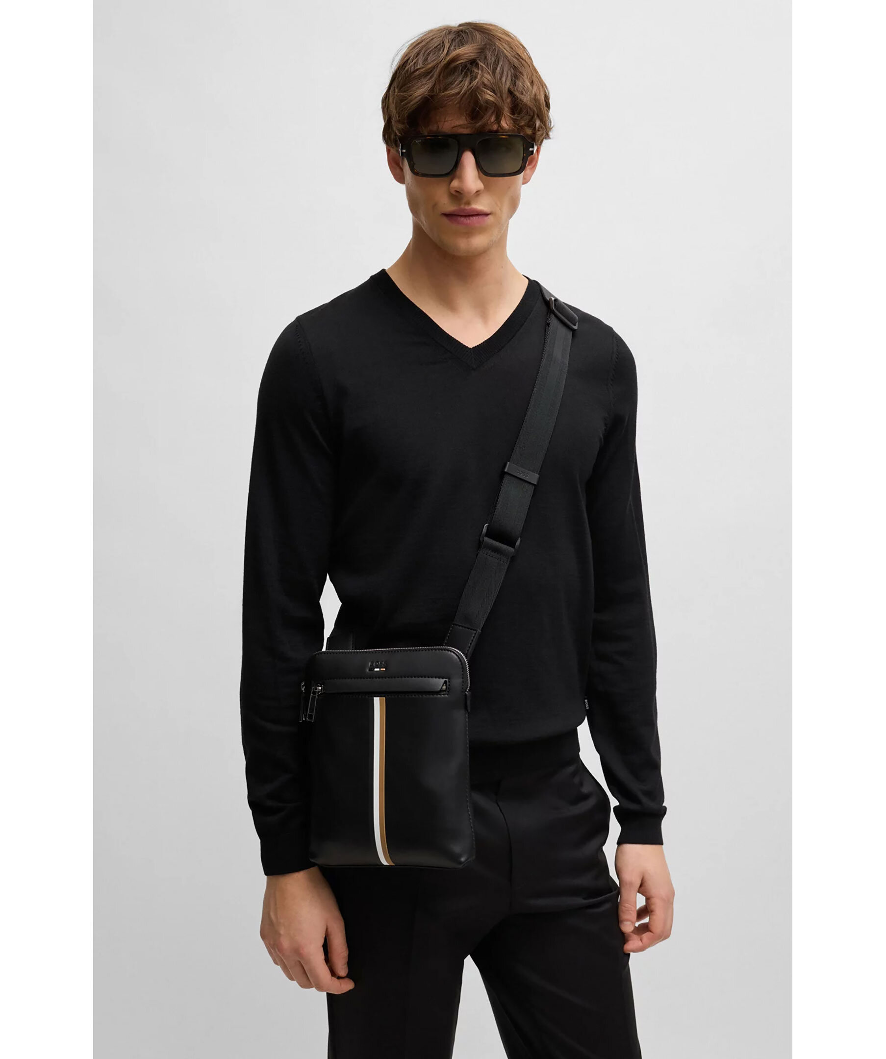 Svart kuvertväska från BOSS. Tillverkad i syntetmaterial med klassisk detaljer, inklusive deras ränder i tre färger. Väskan stängs med dragkedja och har en utvändig ficka med dragkedja samt en innerficka med dragkedja. Mått: B: 20cm / H: 24cm / D: 1,5cm.