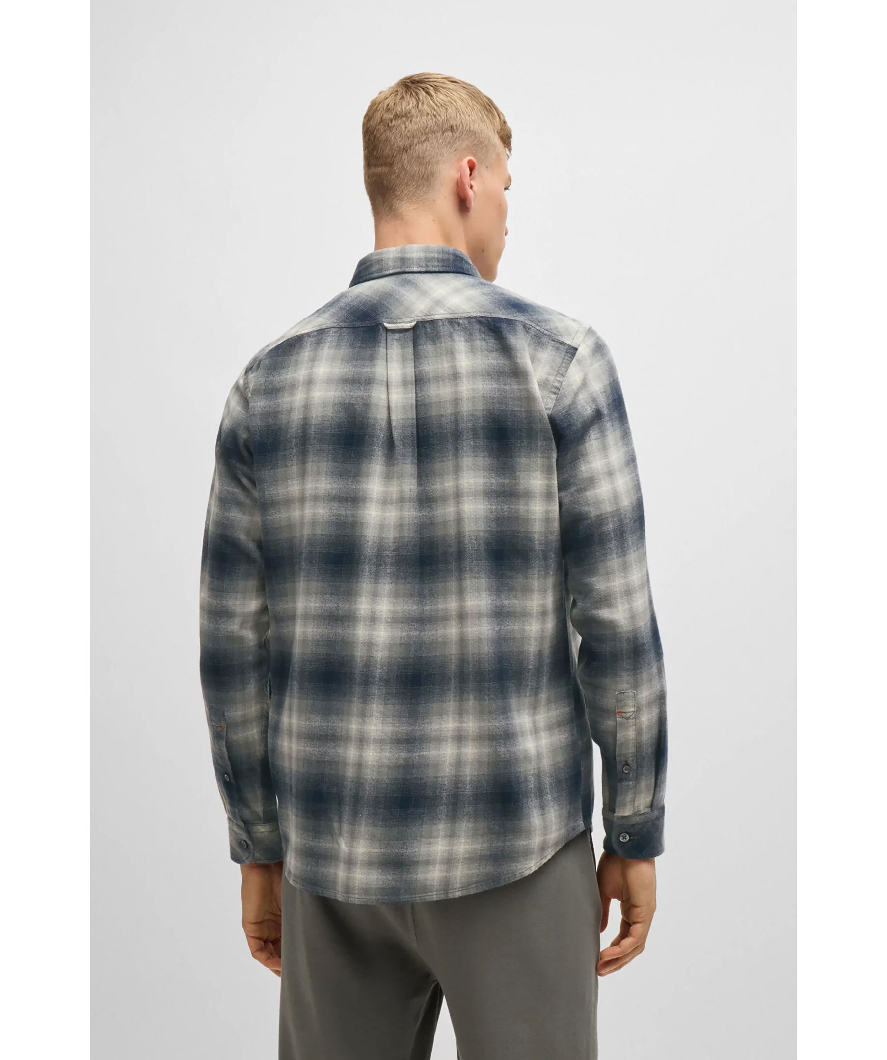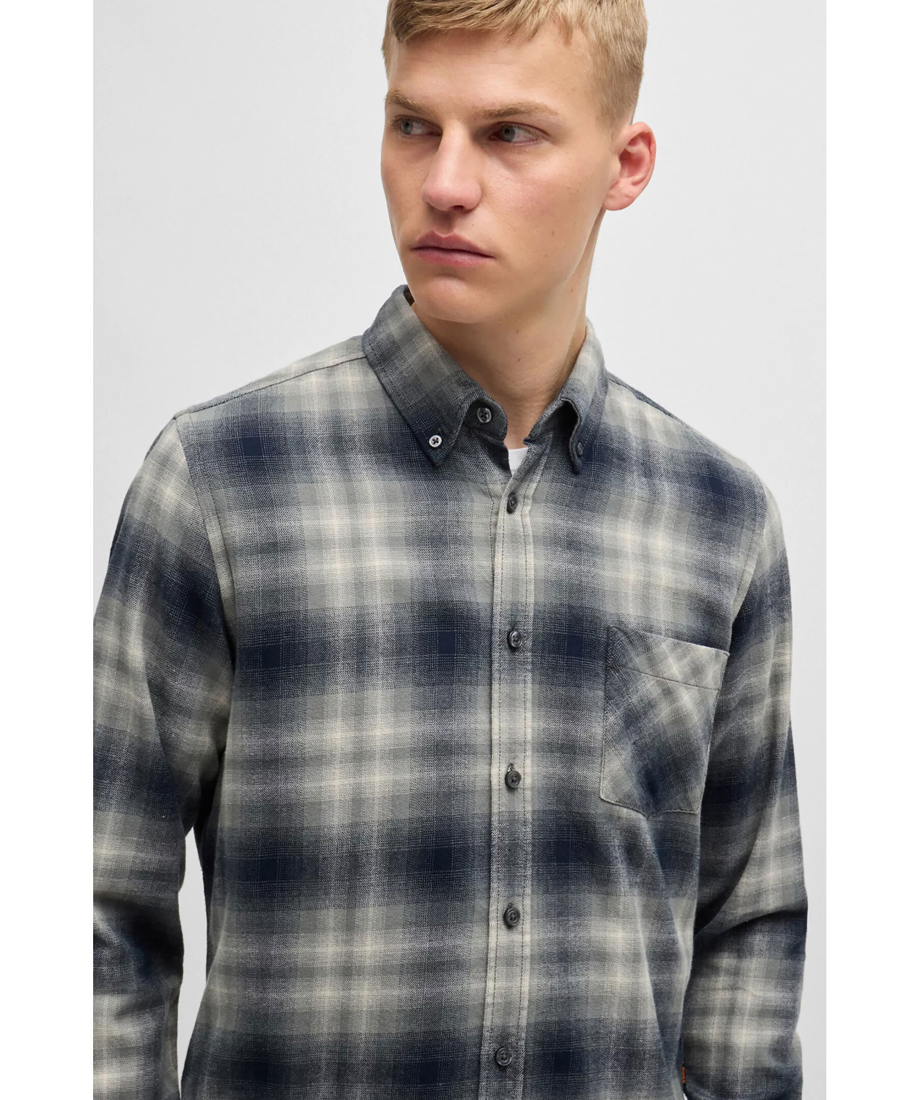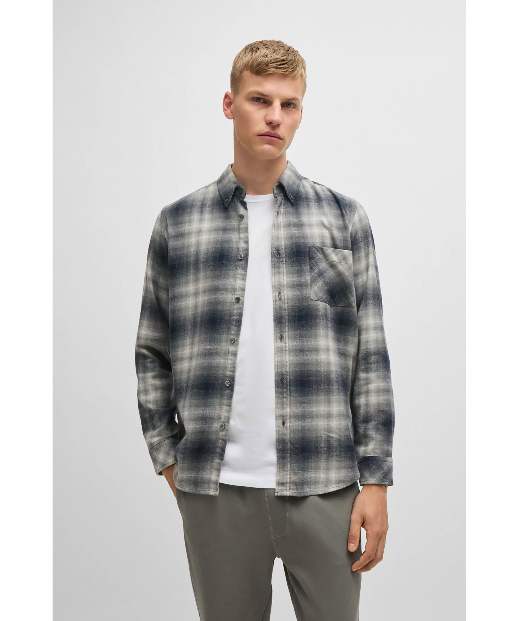 Grå och blårutig flanellskjorta från BOSS Orange. Skjortan har button-down krage, rundade muddar samt en bröstficka. Tillverkad i bomull.