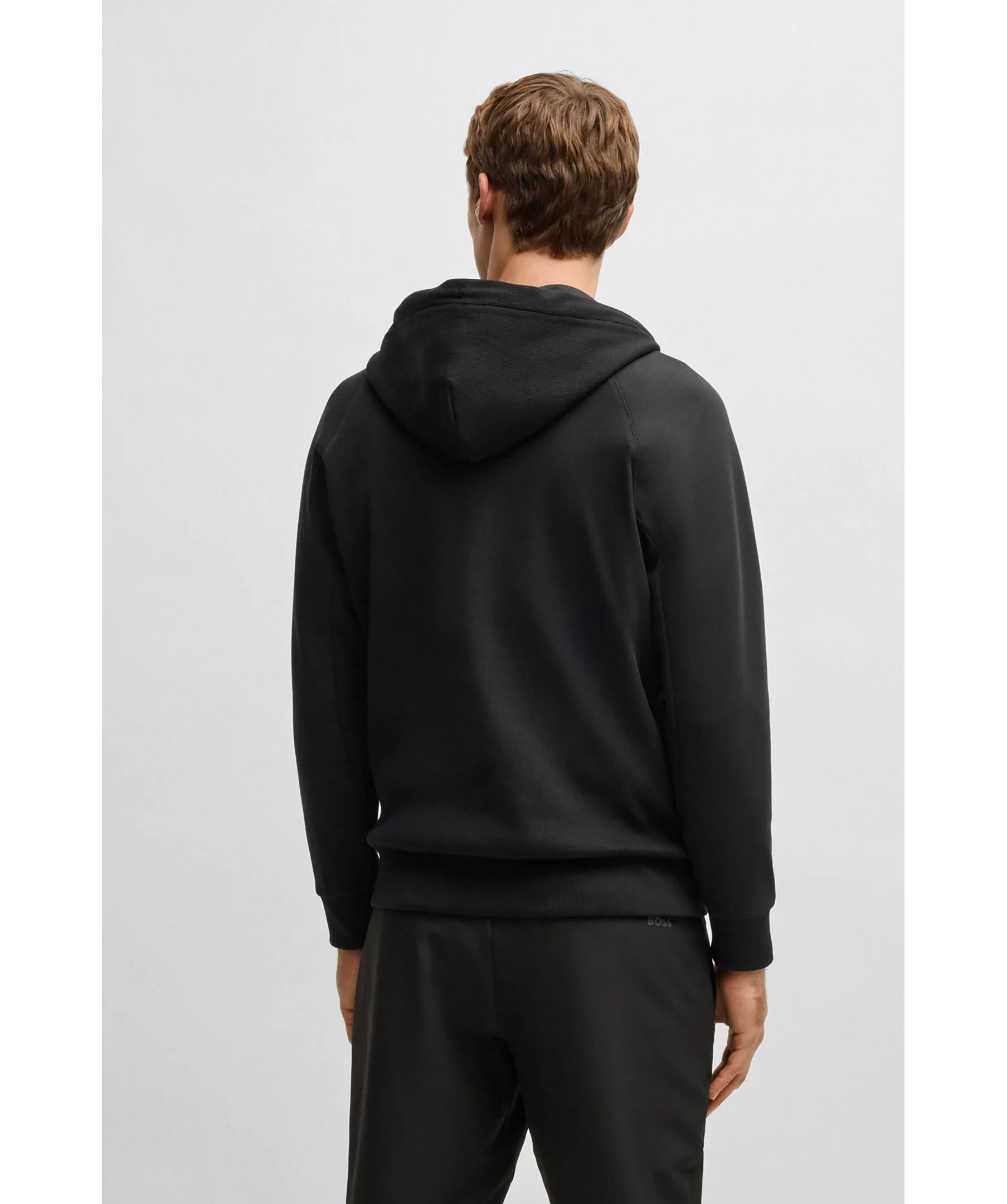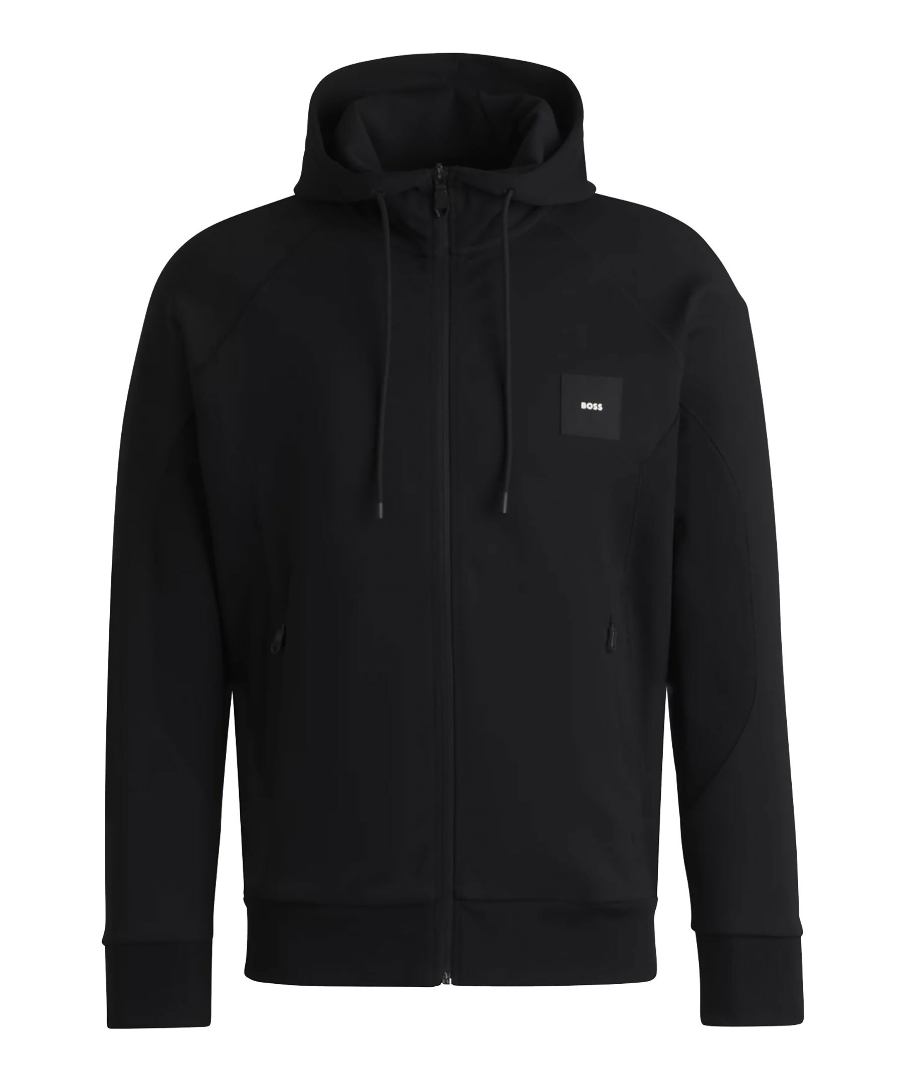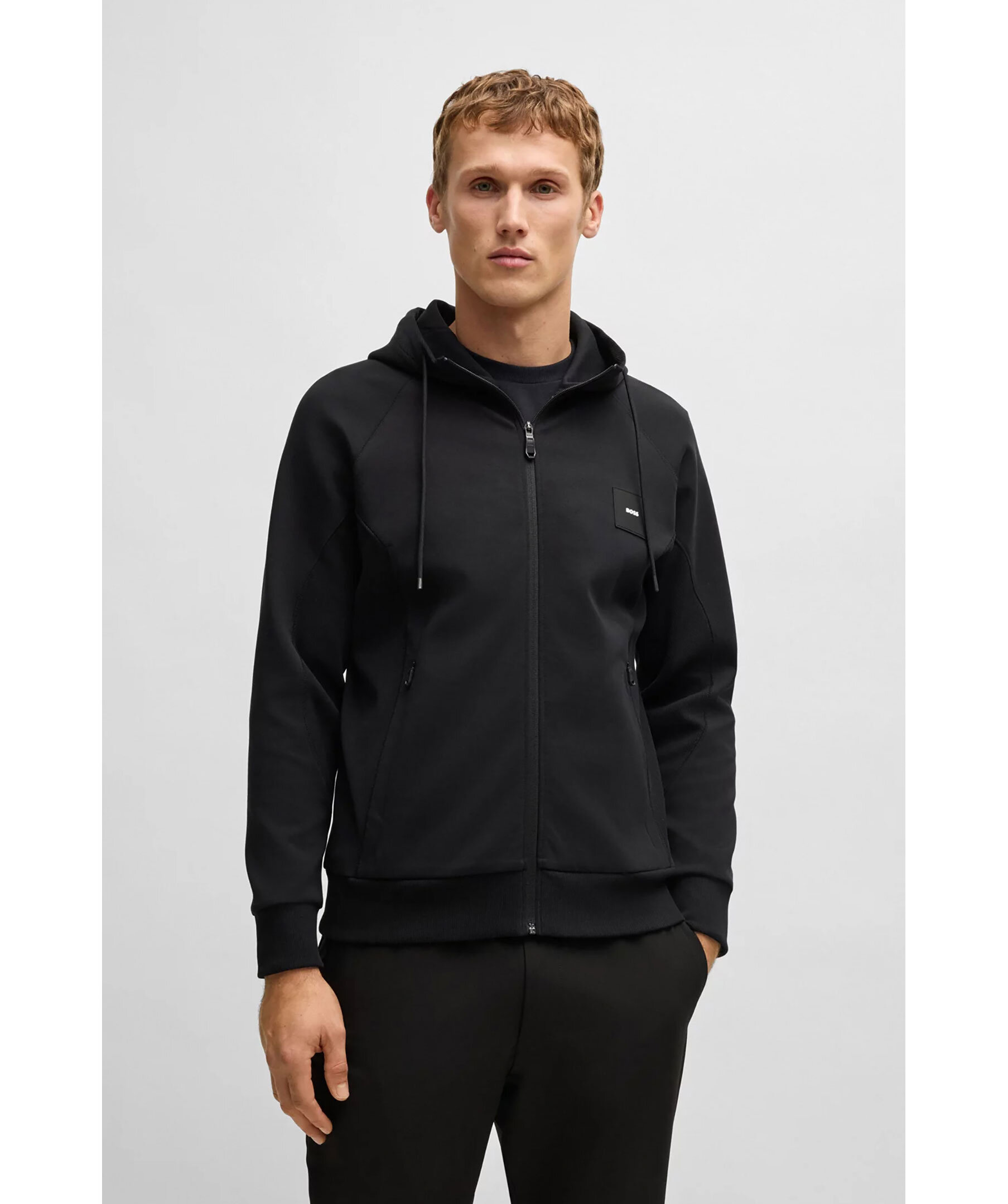 Svart zip-up hoodie från BOSS Green. Tröjan stängs med dragkedja och har huva med dragsko, två sidfickor med dragkedja och gummerad logotyp på bröstet. Tillverkad i en bomullsblandning.
