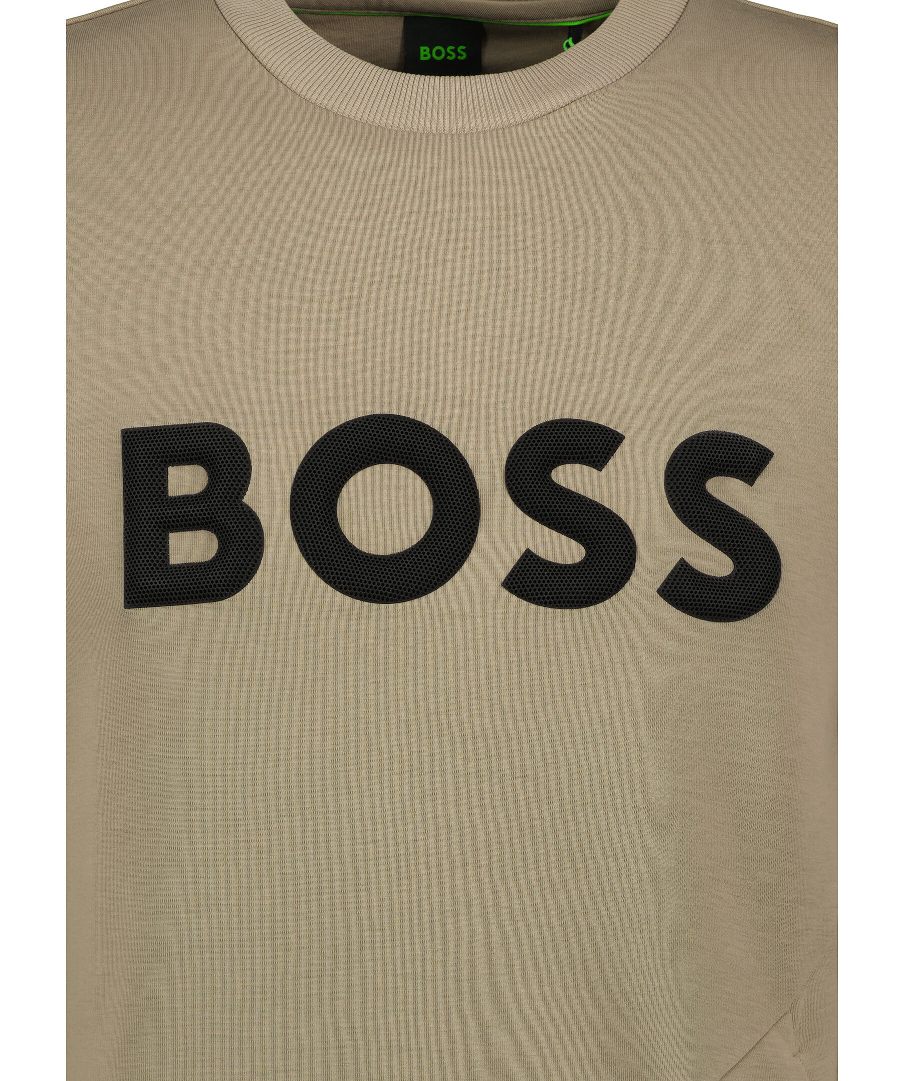 Greige sweatshirt från BOSS Green. Tröjan har en 3D-formad logga samt en sidoficka. Ribbstickad halsringning samt muddar vid ärm- och plaggslut. Tillverkad i en bomullsblandning. Normal passform.