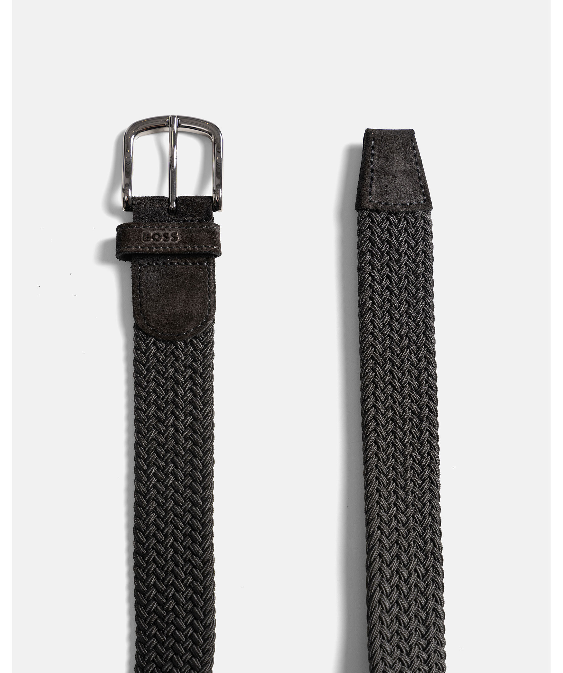 Svart skärp från Boss Black. Flätat skärp med läderdetaljer med en bredd på 3,5 cm.