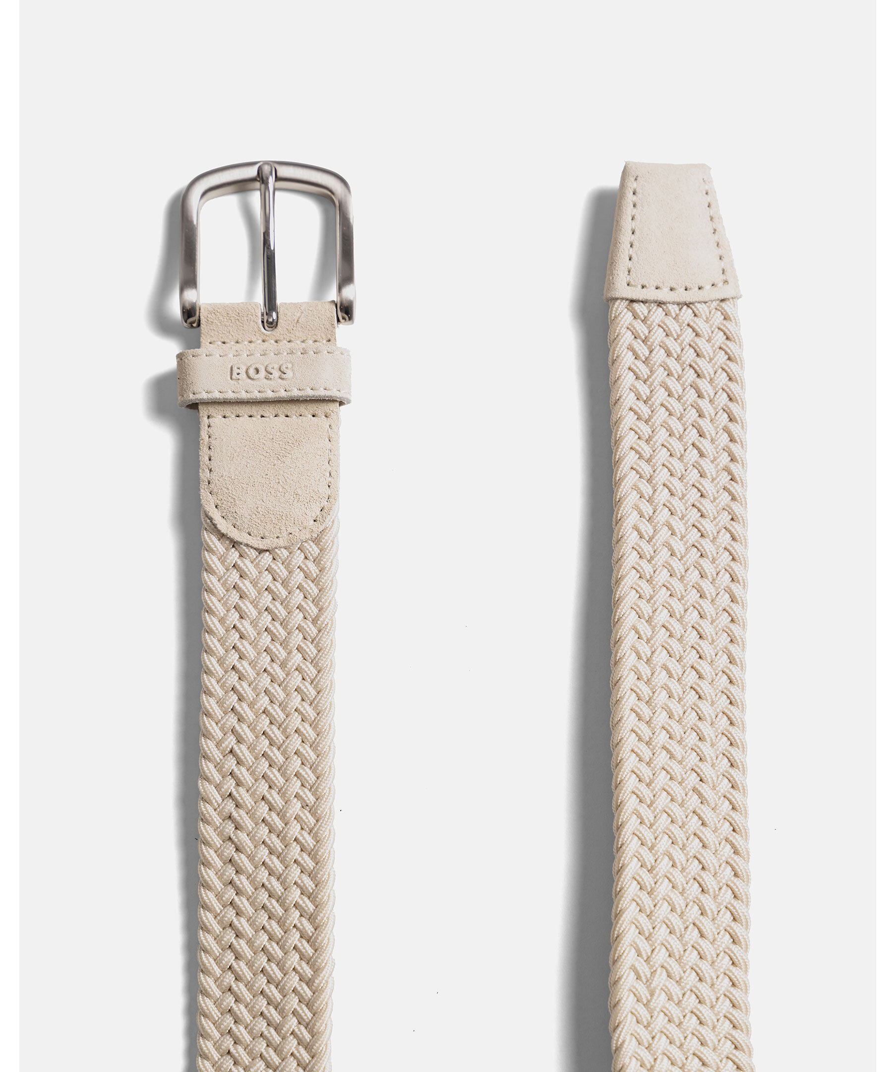 Beige skärp från Boss Black. Flätat skärp med läderdetaljer med en bredd på 3,5 cm.