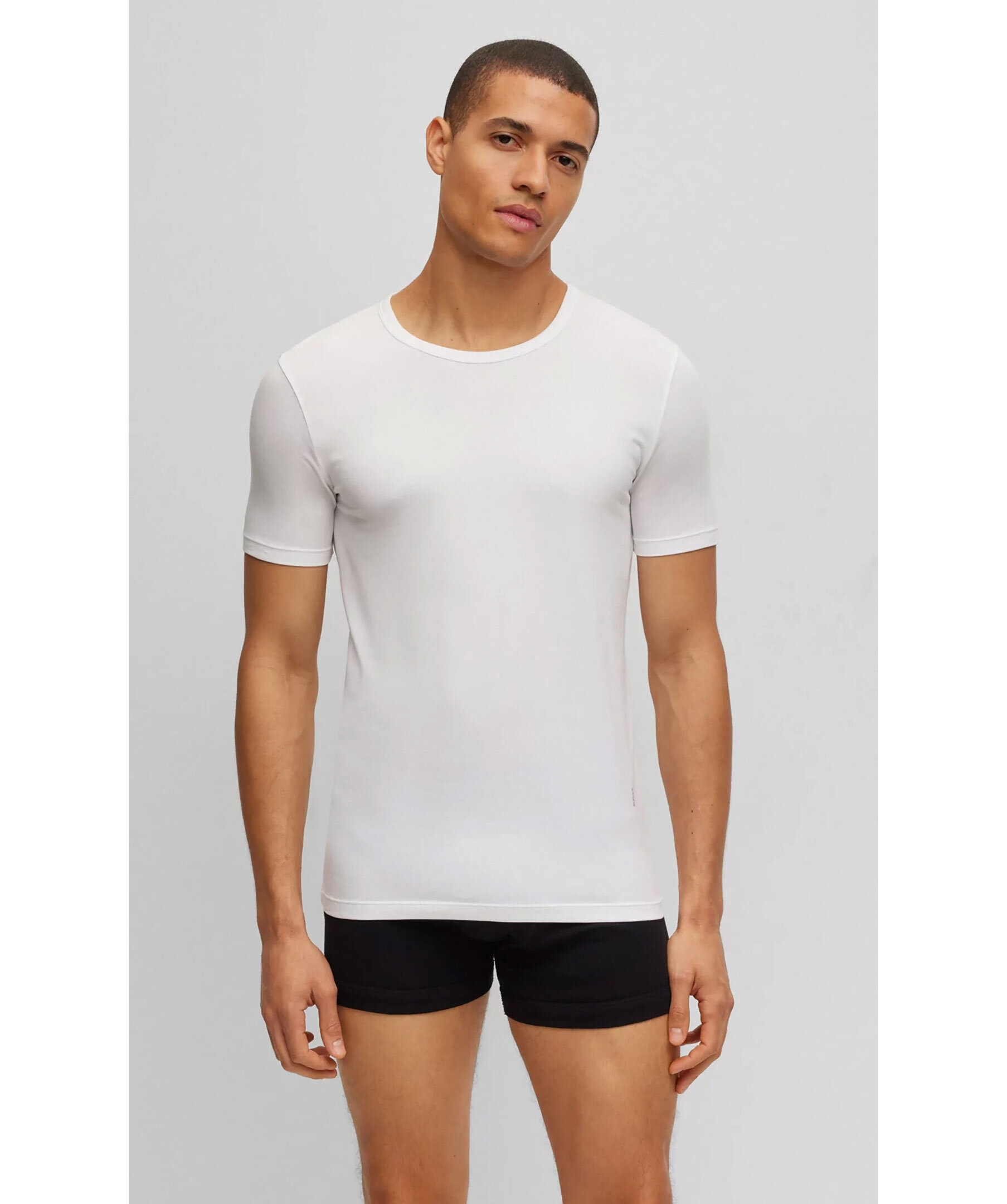 Vita T-shirtar i 2-pack från BOSS Black. Tillverkad i stretchig bomullsblandning. Rundad halsringning. Subtil tryck logotyp på vänster sida. T-shirten har Slim-fit passform för att fungera som undertröja.