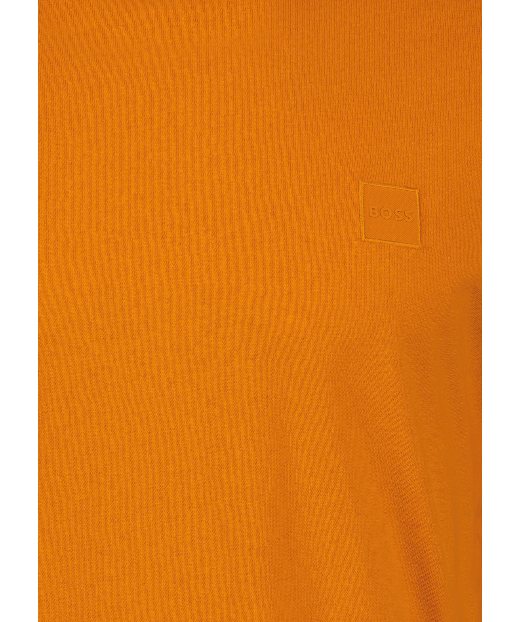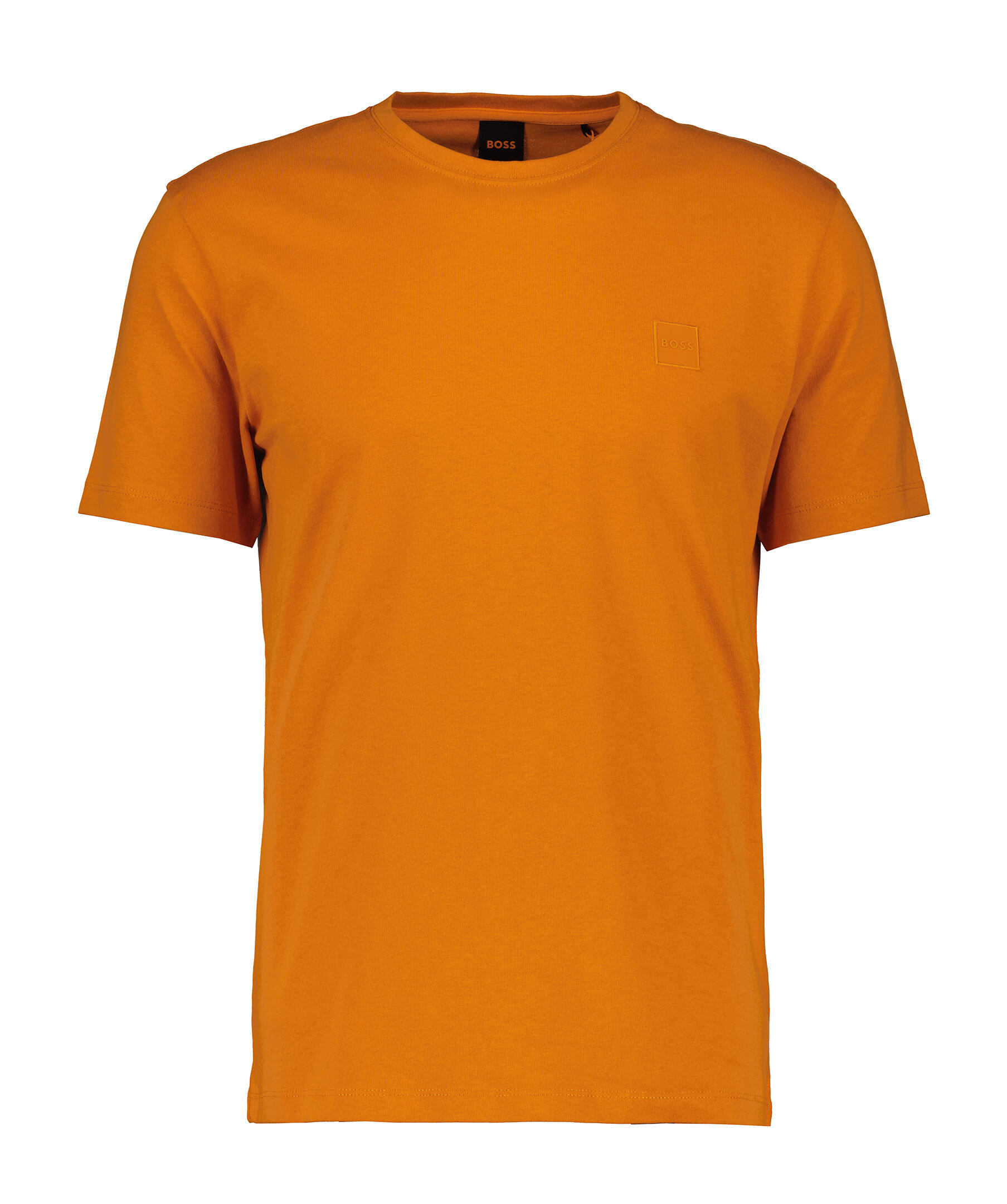 Orange t-shirt från BOSS Orange. T-shirten har rundad halsringning och en vävd logotyplapp på bröstet. Tillverkad i bomull.