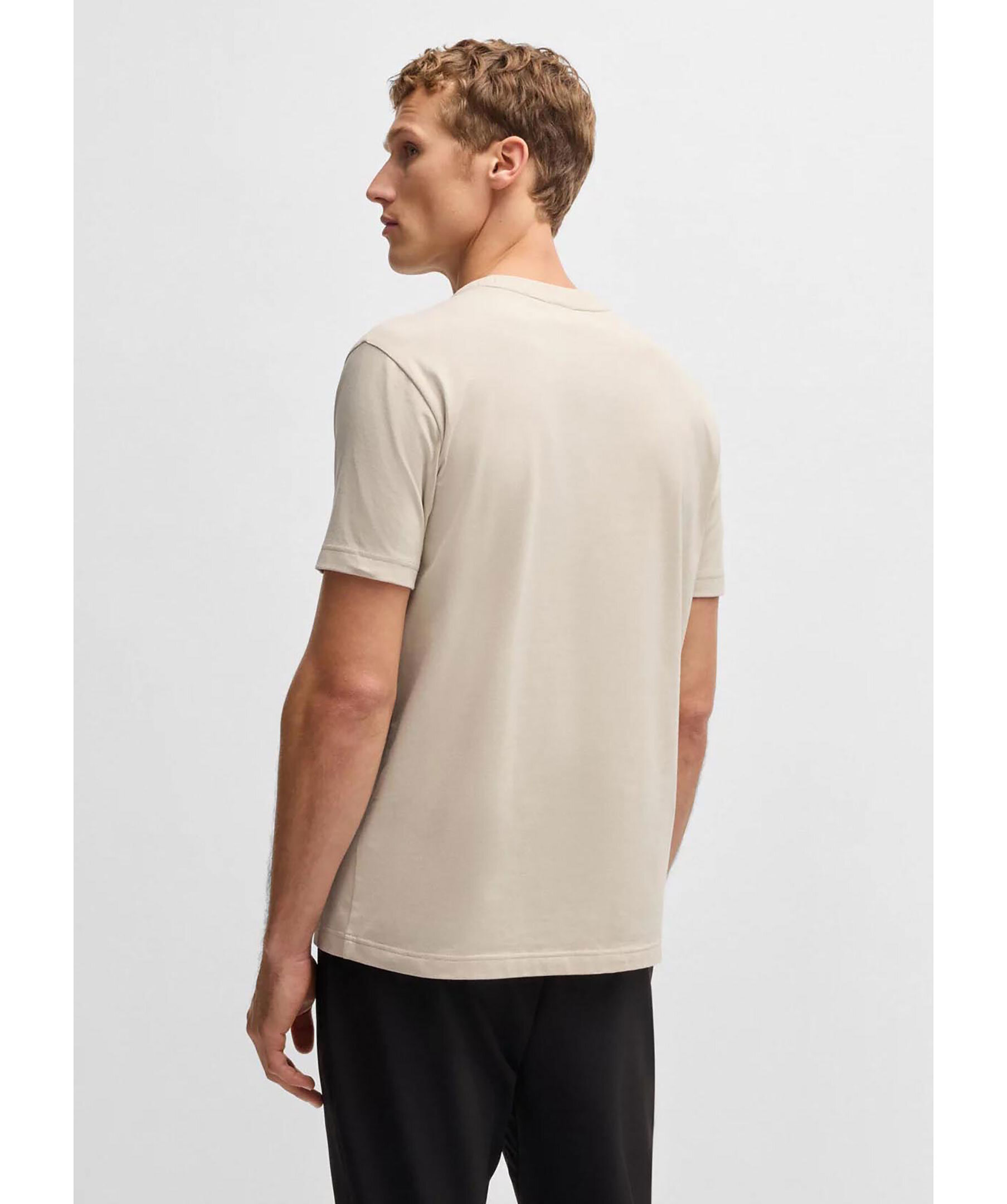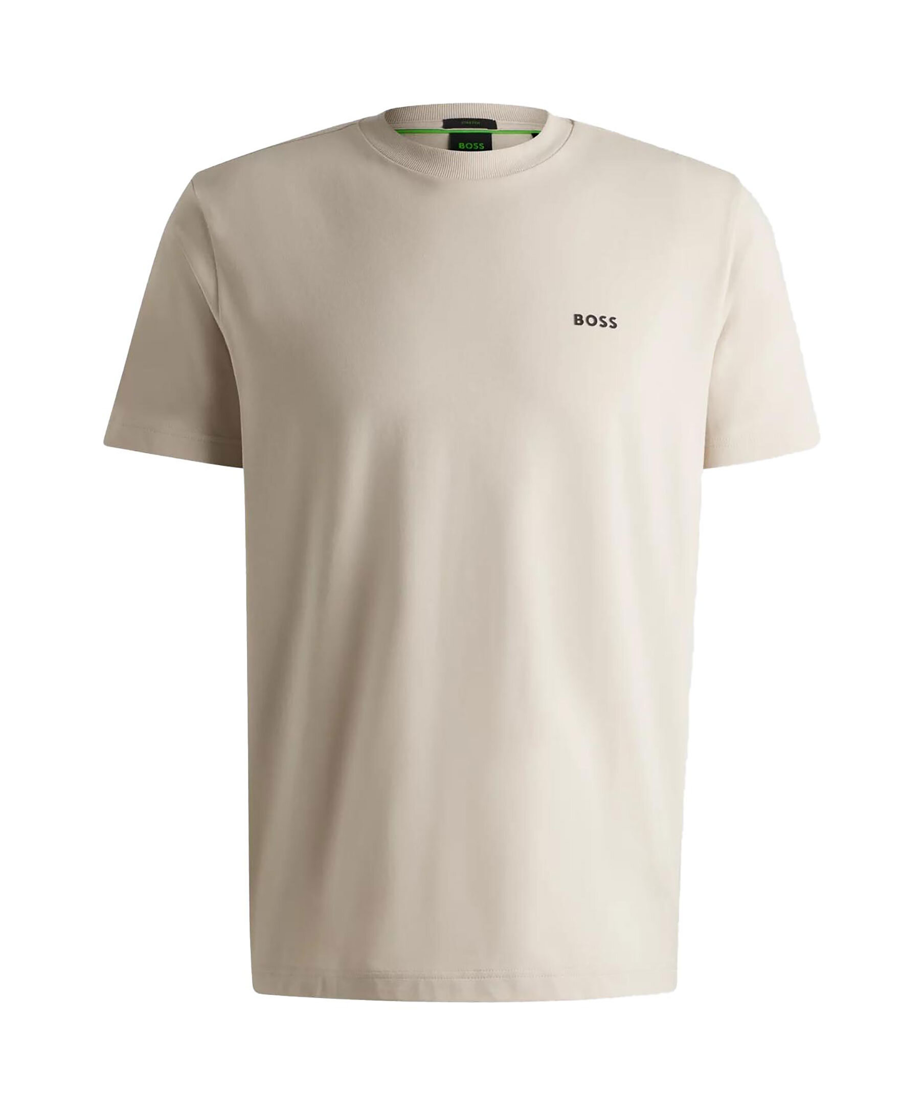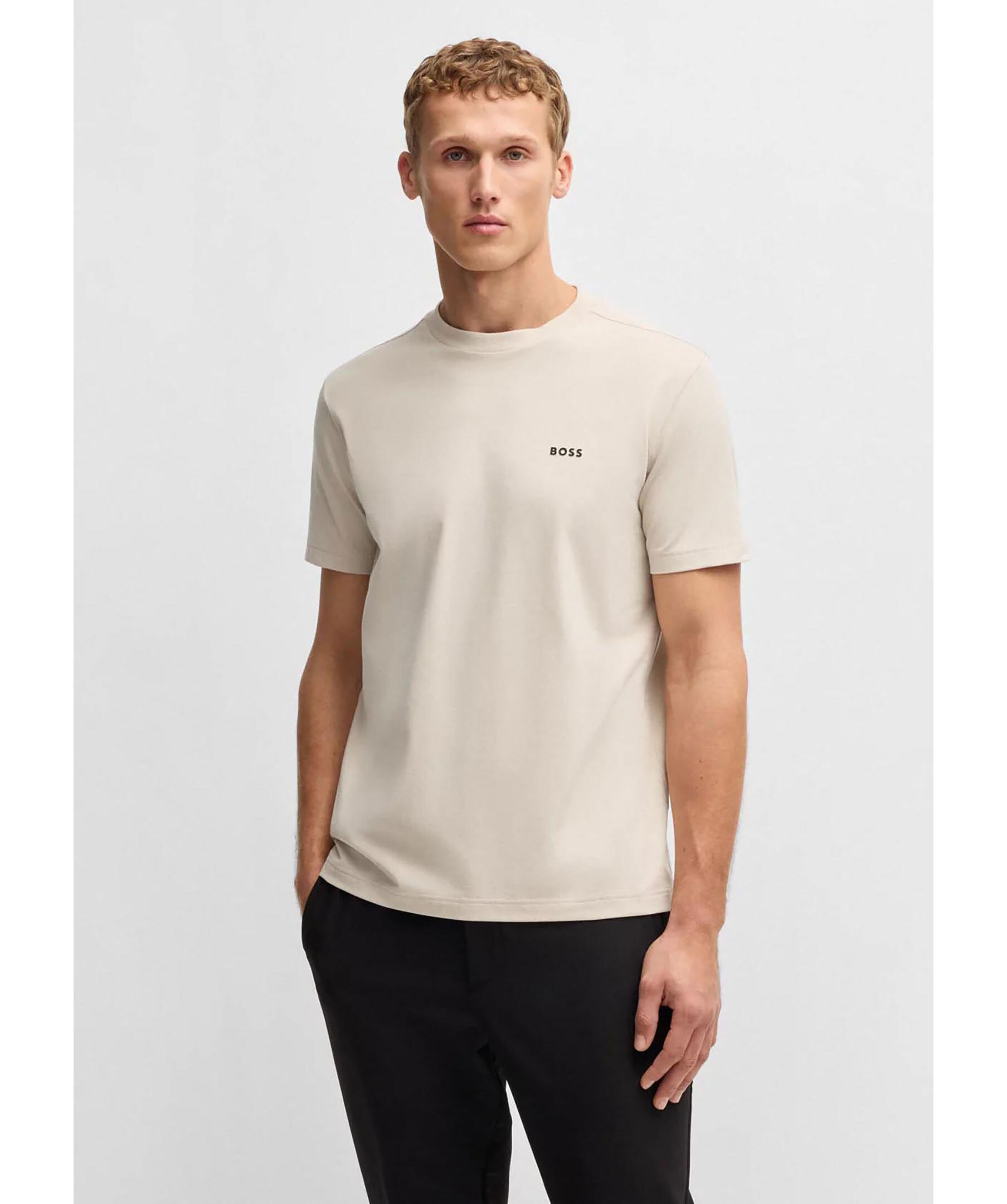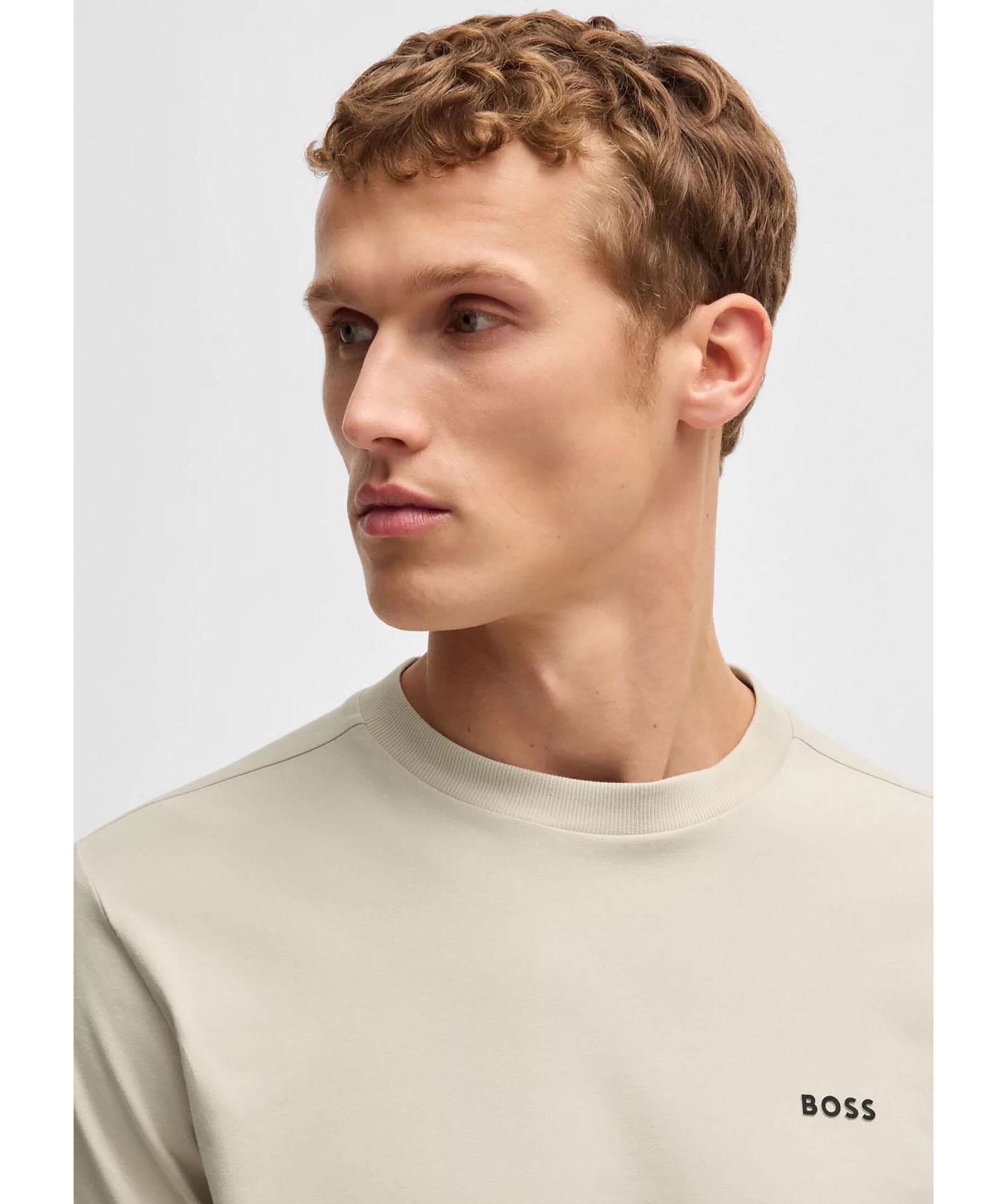 Beige T-shirt från BOSS Green. Rundad halsringning med ribbstickad mudd. Tryckt logotyp på vänster bröst. Tillverkad i Bomulls blandning.