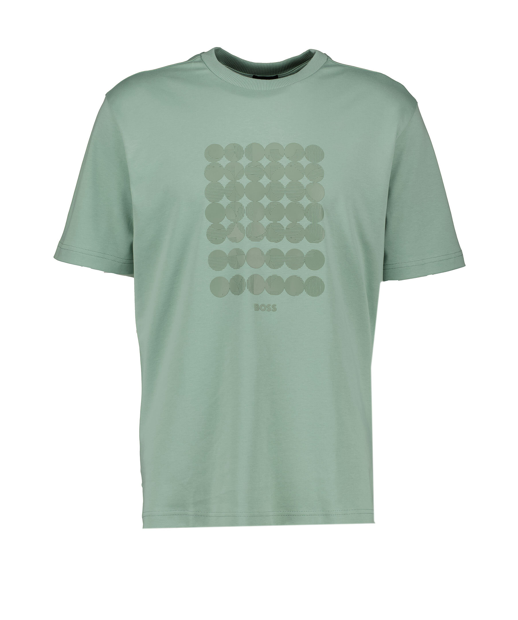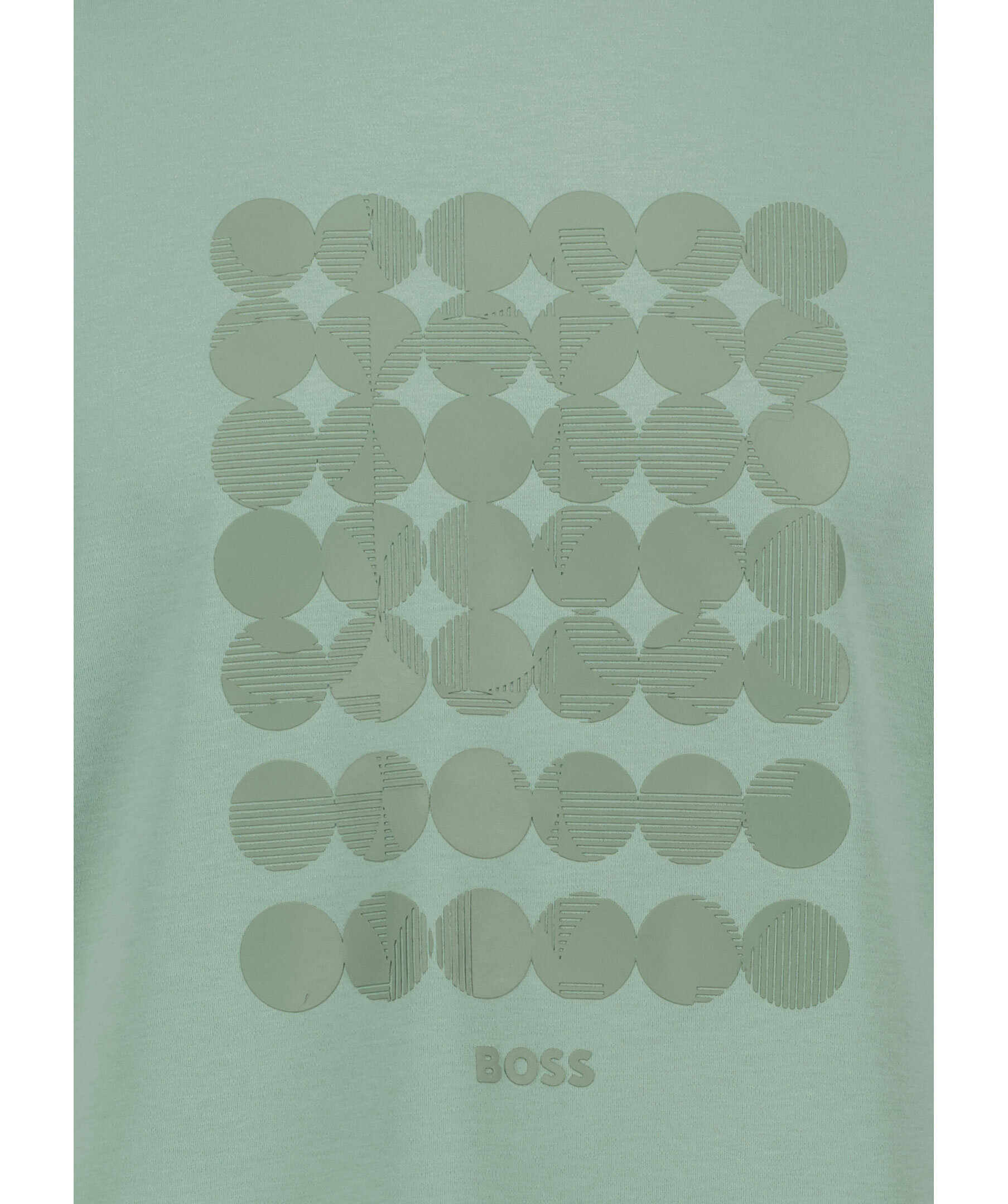 Grön T-shirt från Boss Green. T-shirten har gummitryck på bröstet, rundad halsringning och är tillverkad av bomull.
