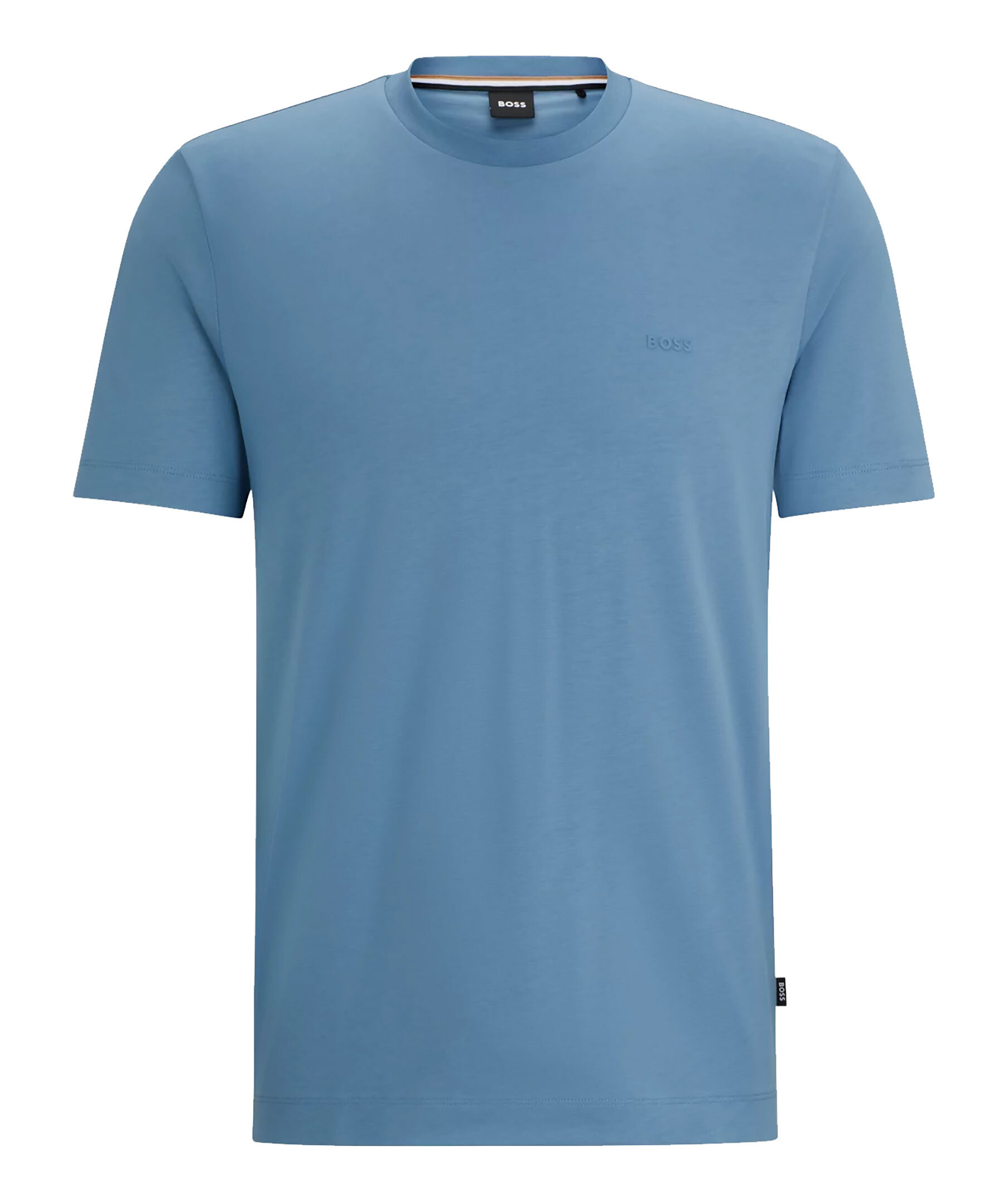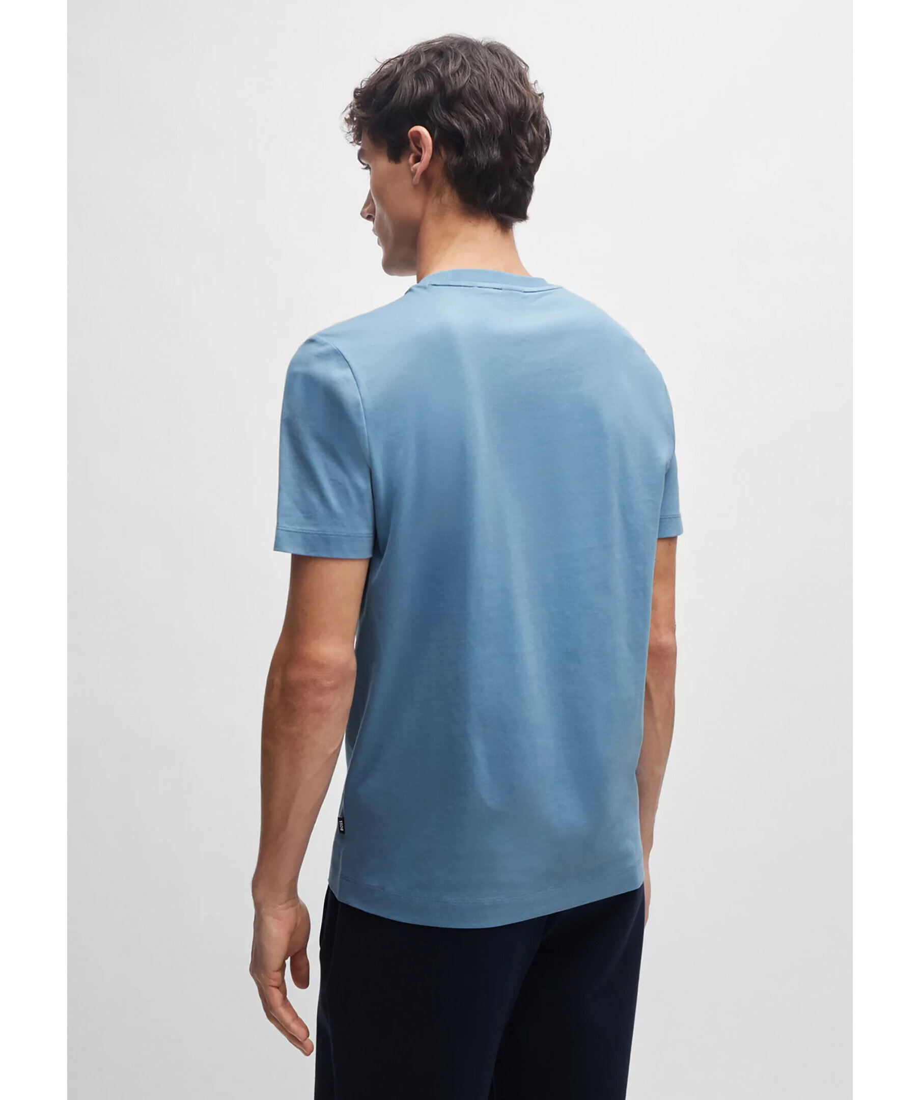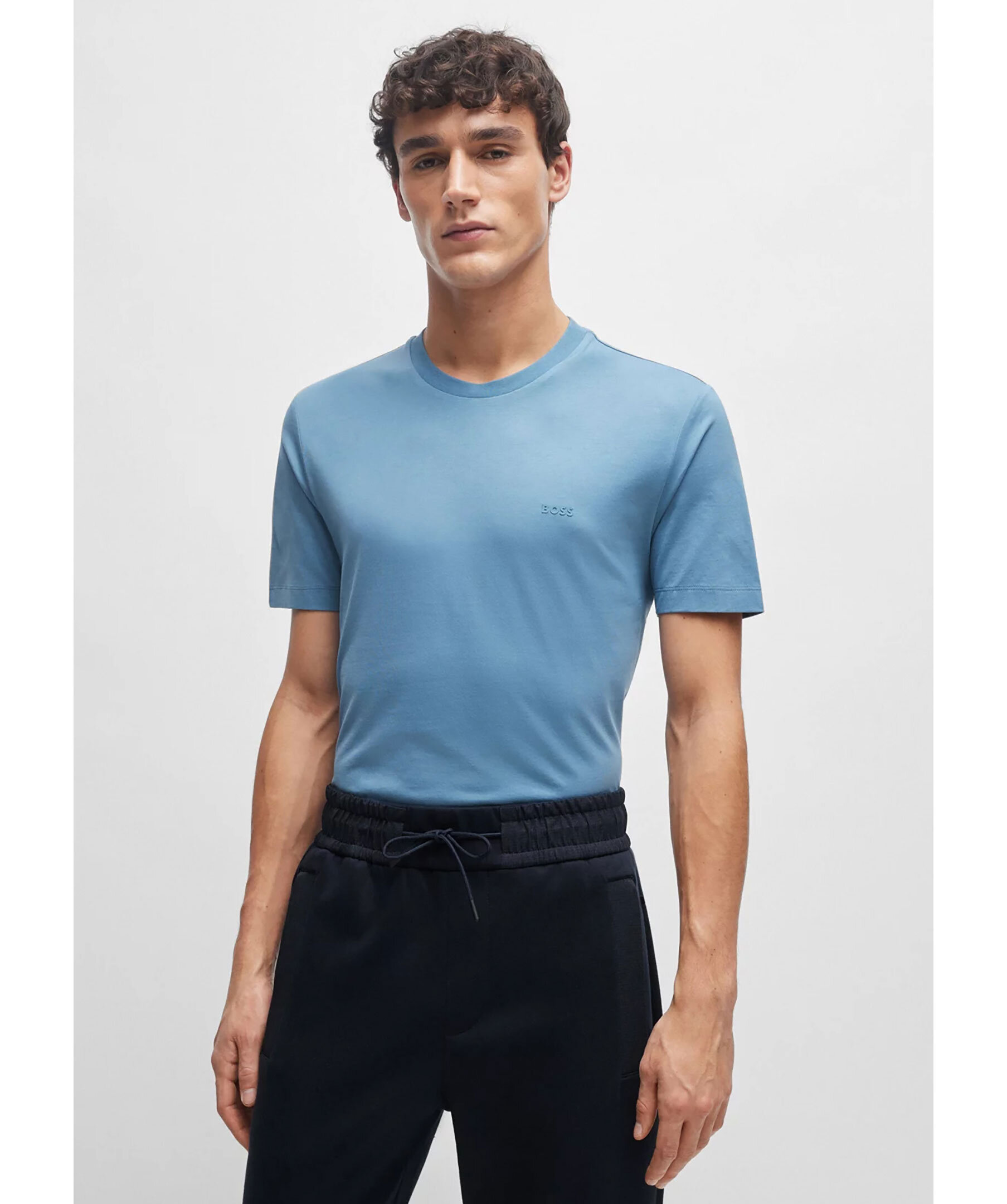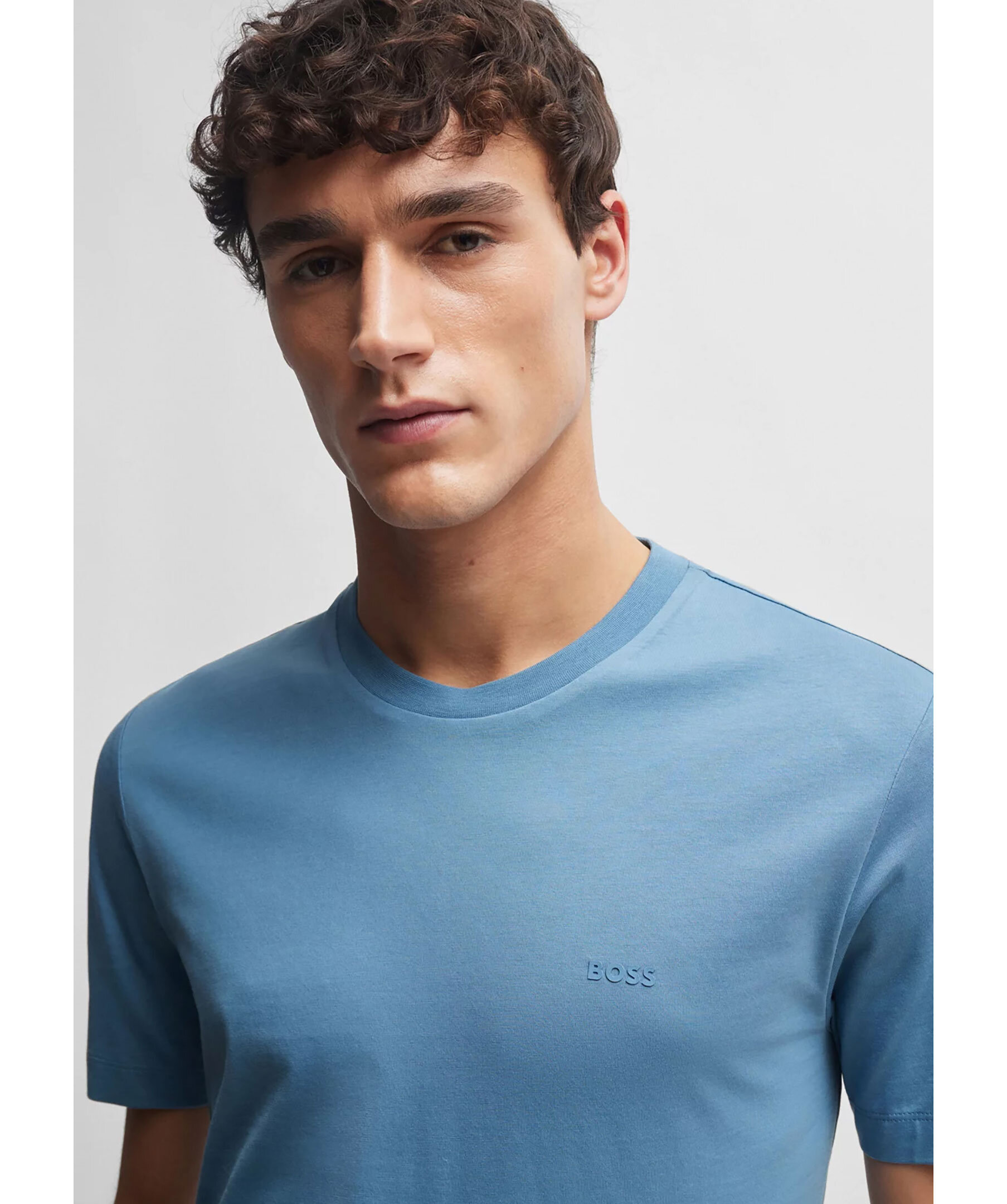Blå t-shirt från BOSS Black. Tillverkad i bomull. Rund hals och gummerad logotyp på vänster bröst. Normal passform.